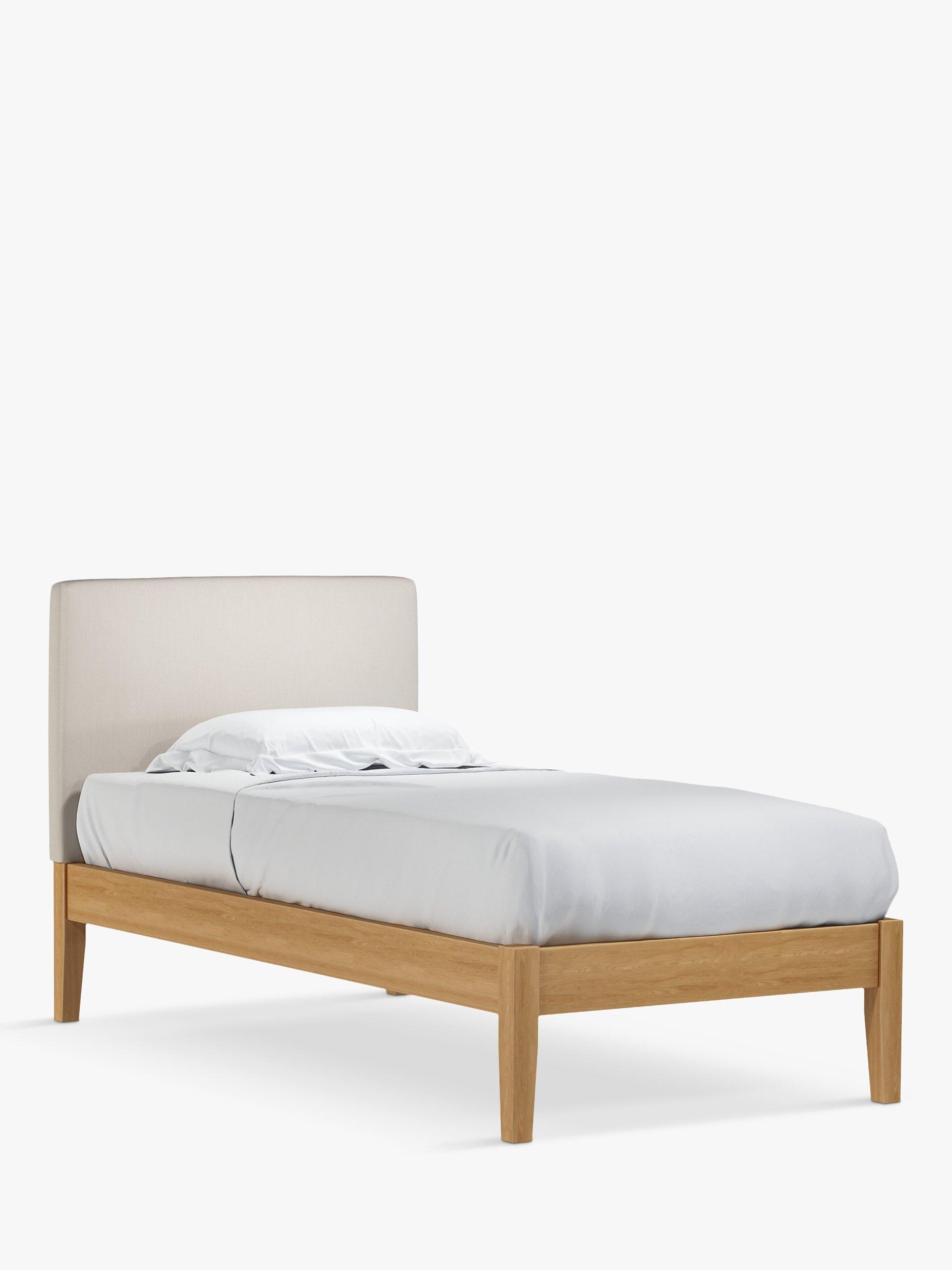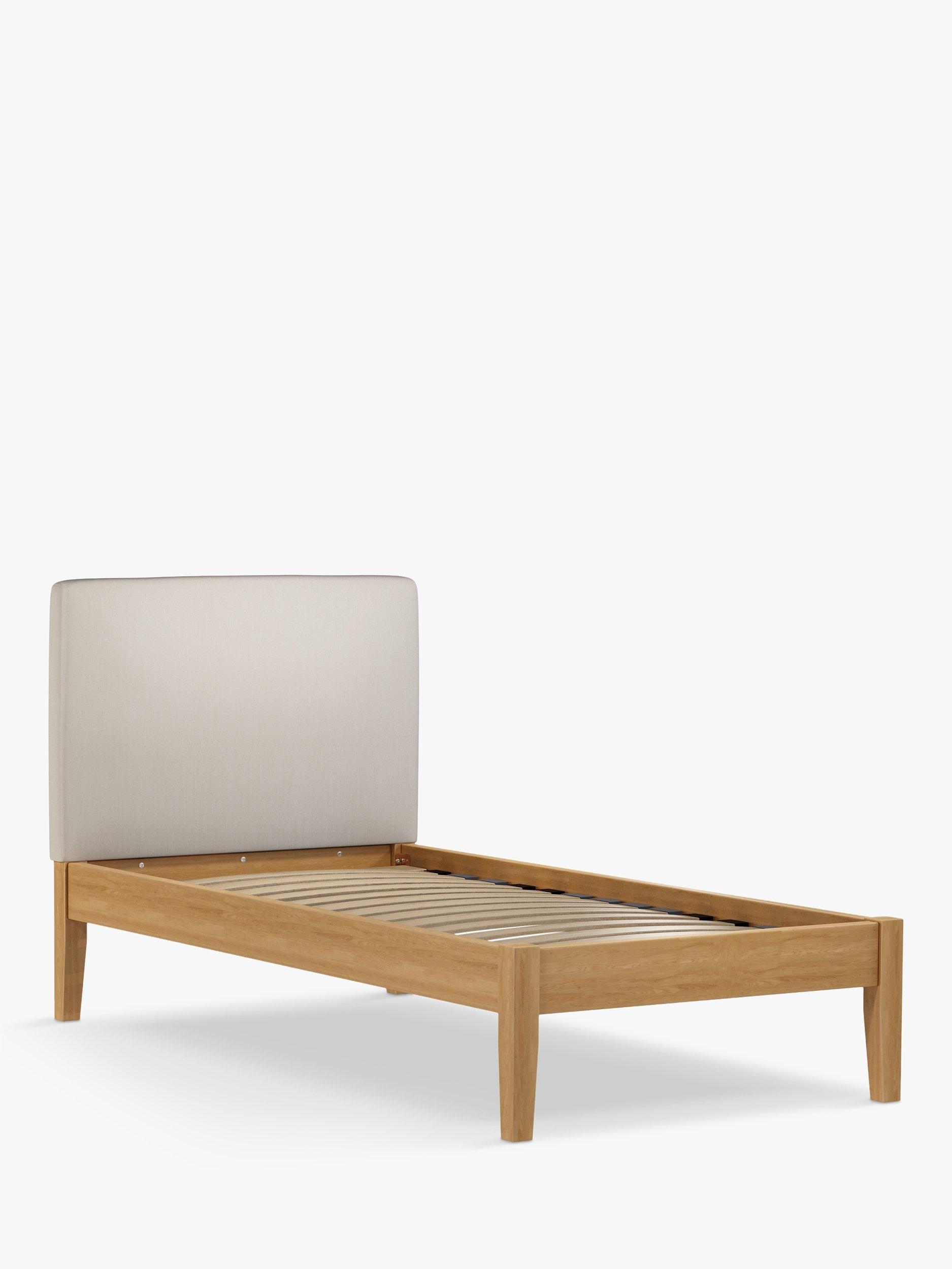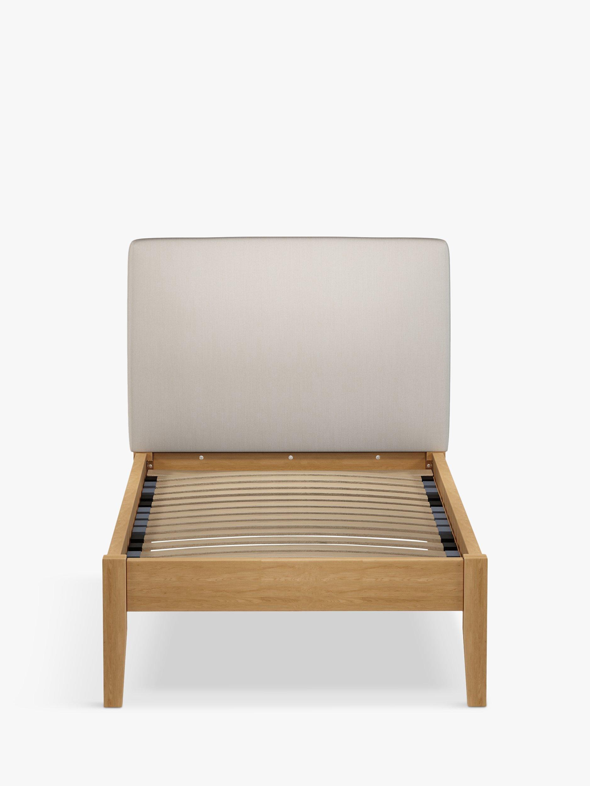 Meet Emily Kitami, our bed frame which is designed with an upholstered headboard and a sturdy solid oak base. It's a classic, clean-lined style but the well-padded headboard gives it a modern edge, and it can be upholstered in a fabric of your choice. Sprung slats in the base provide a supportive and responsive foundation for your mattress.