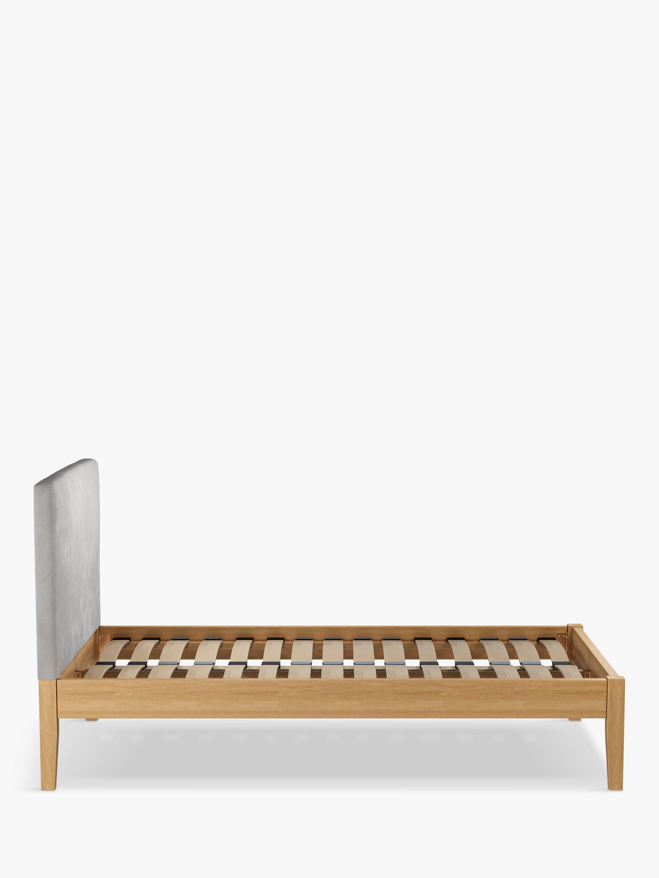 Meet Emily Kitami, our bed frame which is designed with an upholstered headboard and a sturdy solid oak base. It's a classic, clean-lined style but the well-padded headboard gives it a modern edge, and it can be upholstered in a fabric of your choice. Sprung slats in the base provide a supportive and responsive foundation for your mattress.
