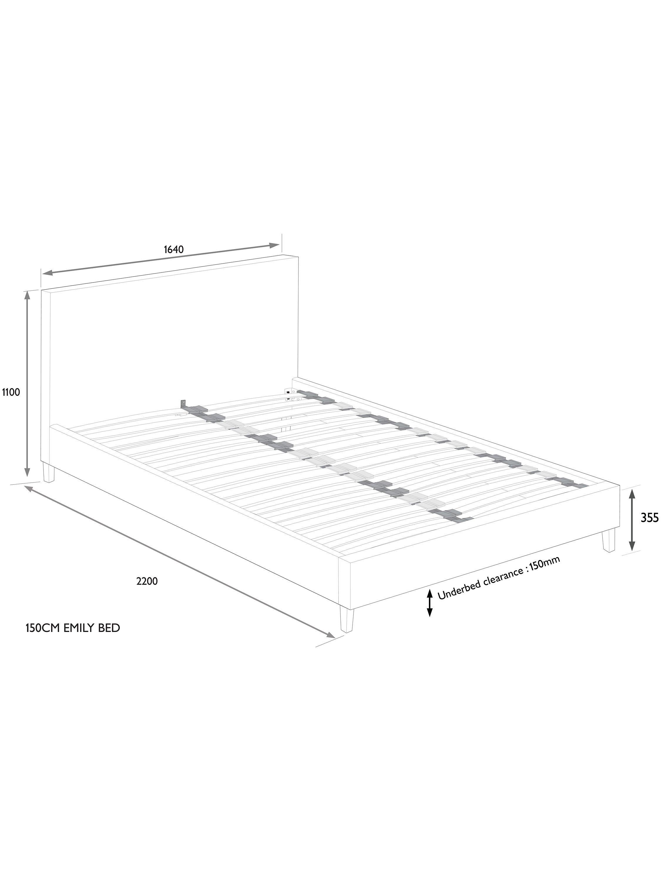 The Emily bed frame is a simple and versatile option for modern settings. With a clean-lined shape and large headboard, it's supported by minimalist wooden legs and has supportive, sprung slats in the base.