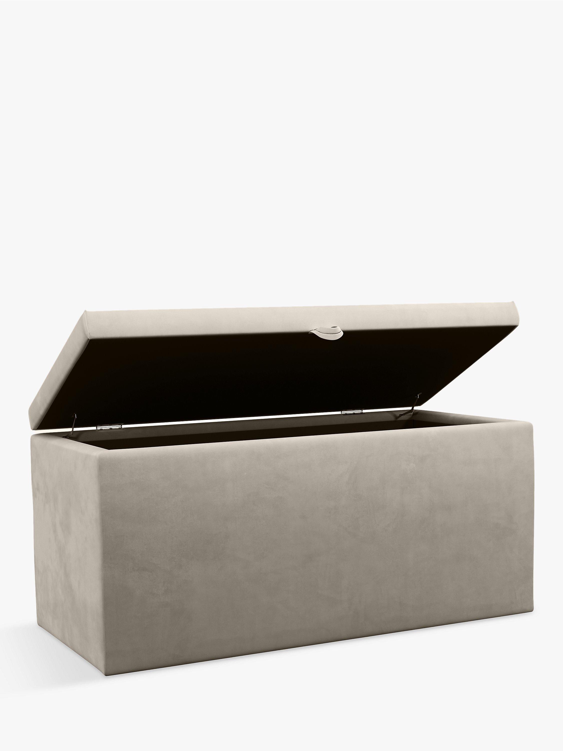 With its deep and clean-lined design, our Emily ottoman storage box provides handy additional storage space. It's easy to open thanks to a hinged lid and loop-pull and it's ideal for stashing your extra blankets, linens and throws.