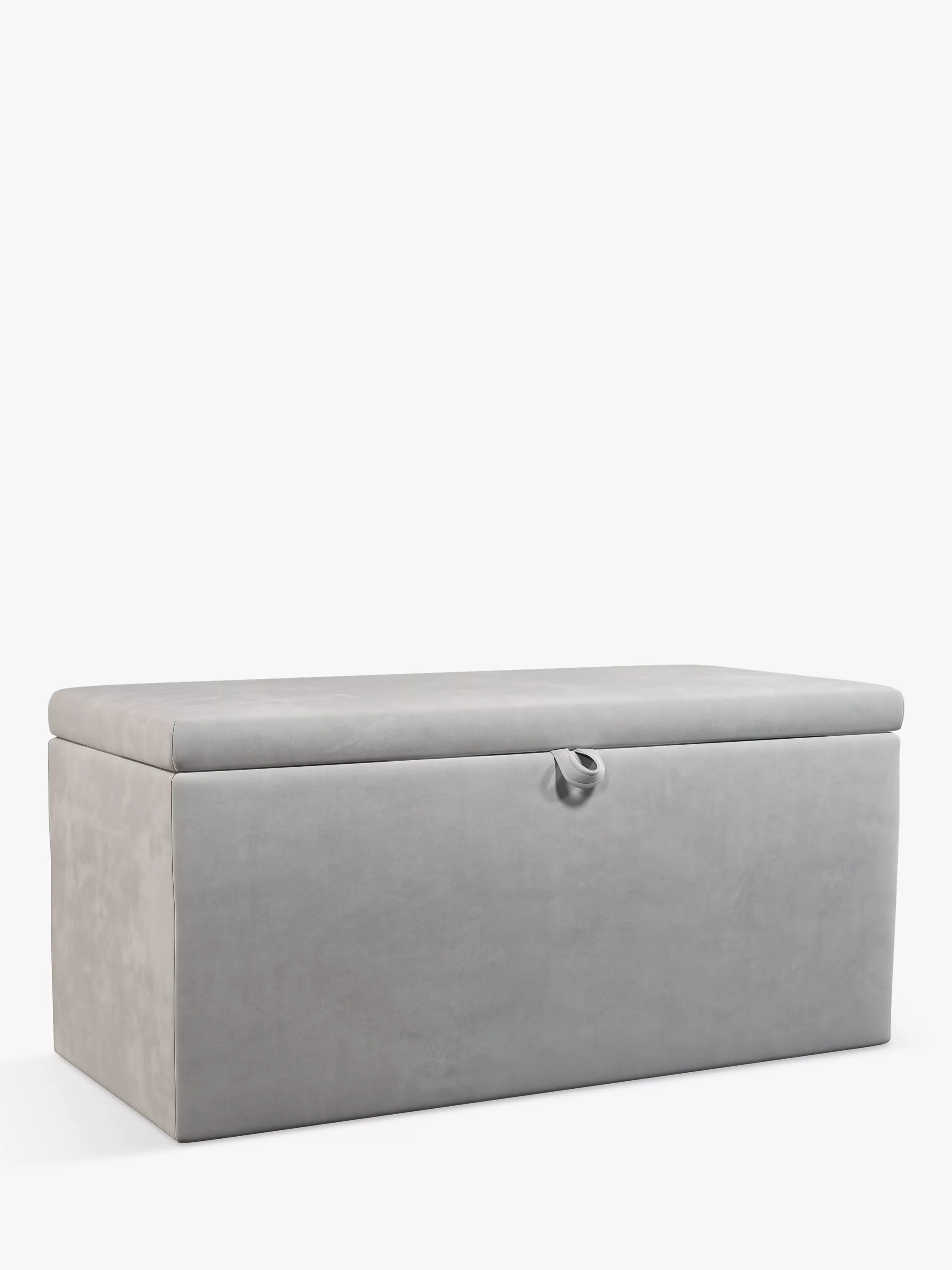 With its deep and clean-lined design, our Emily ottoman storage box provides handy additional storage space. It's easy to open thanks to a hinged lid and loop-pull and it's ideal for stashing your extra blankets, linens and throws.