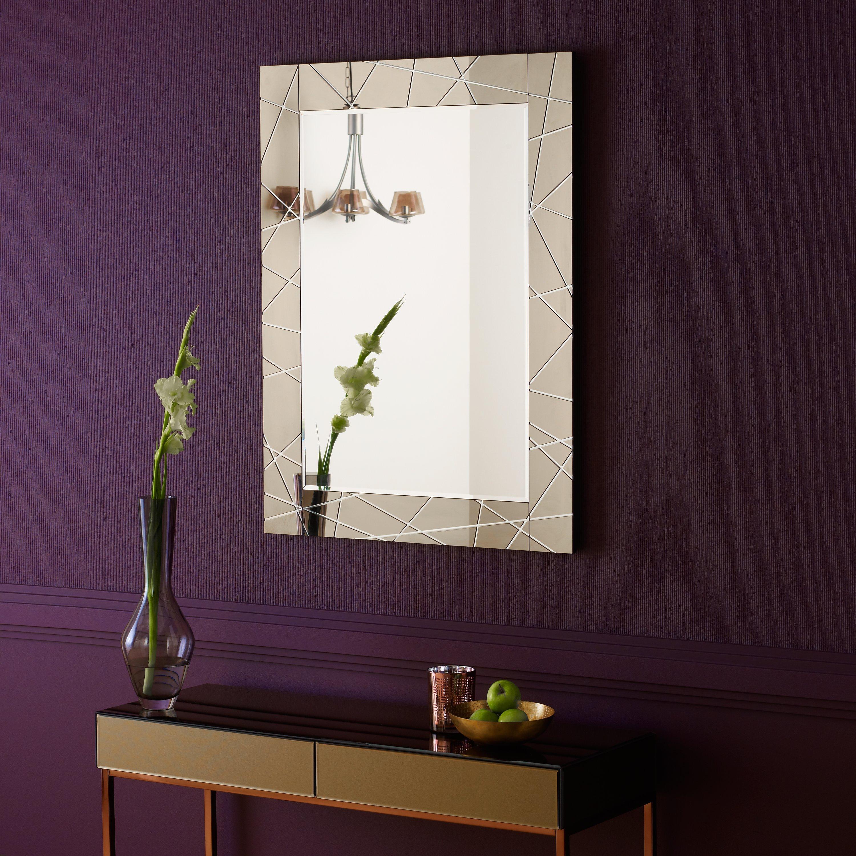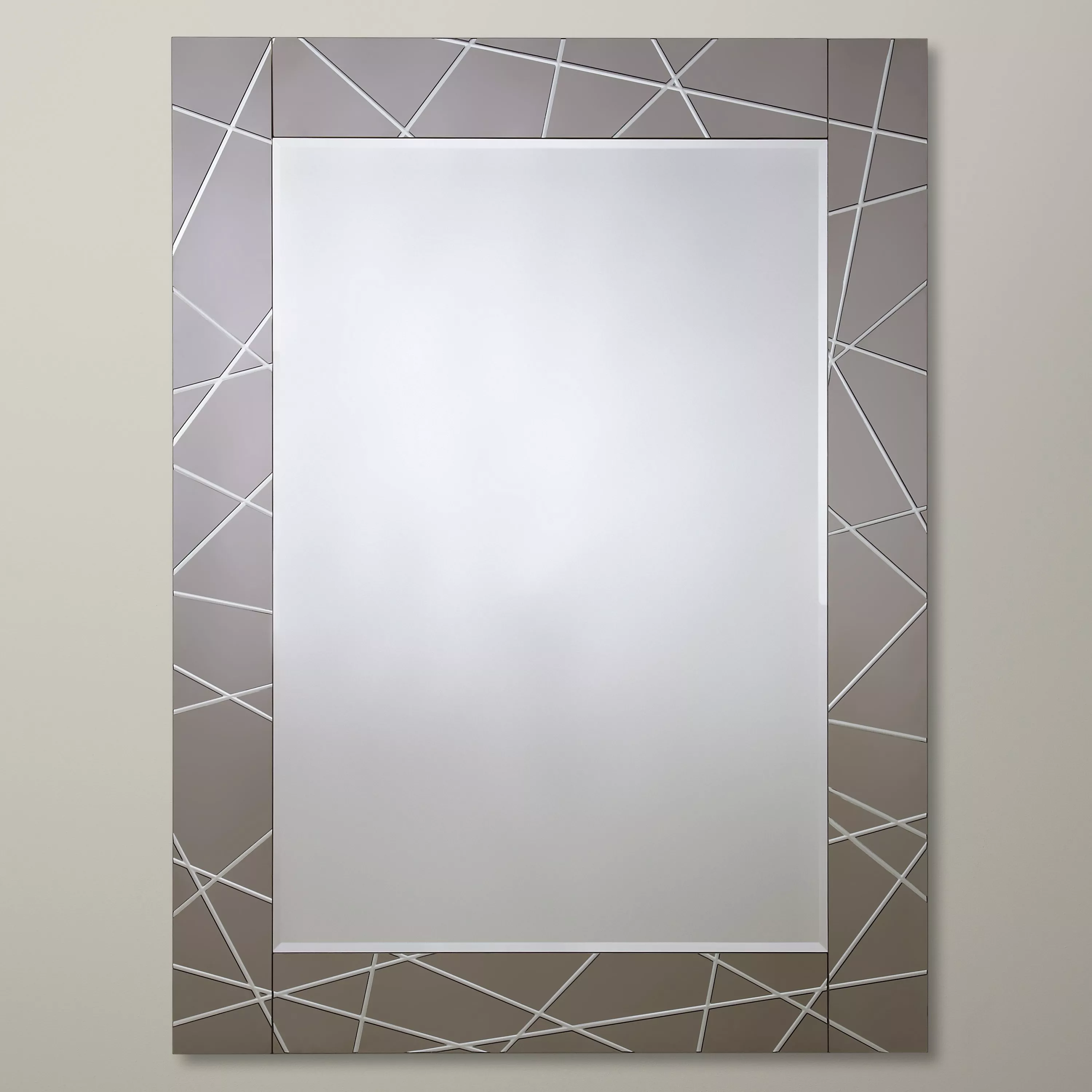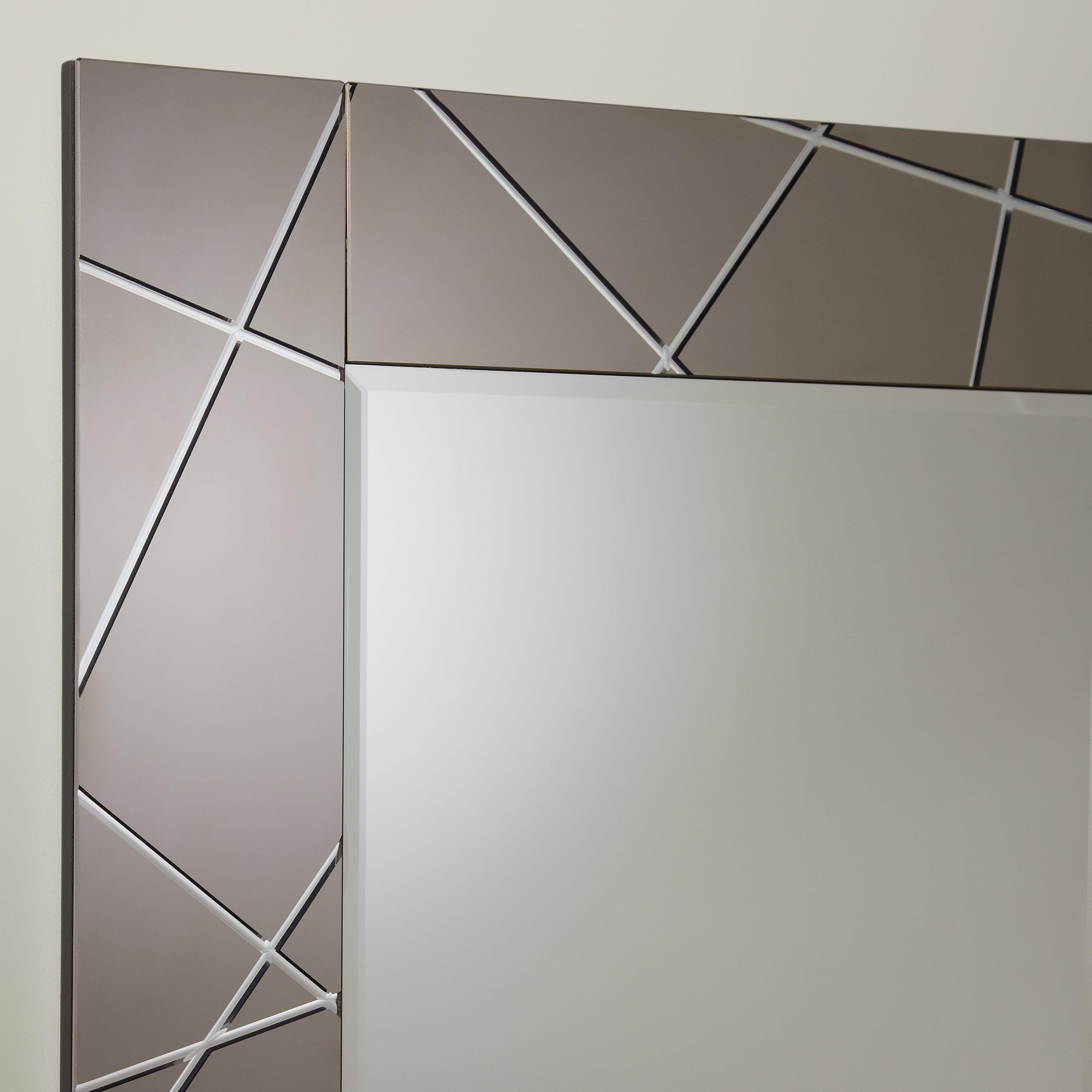 Etched with geometric lines, this contemporary wall mirror has a beautifully tinted frame.