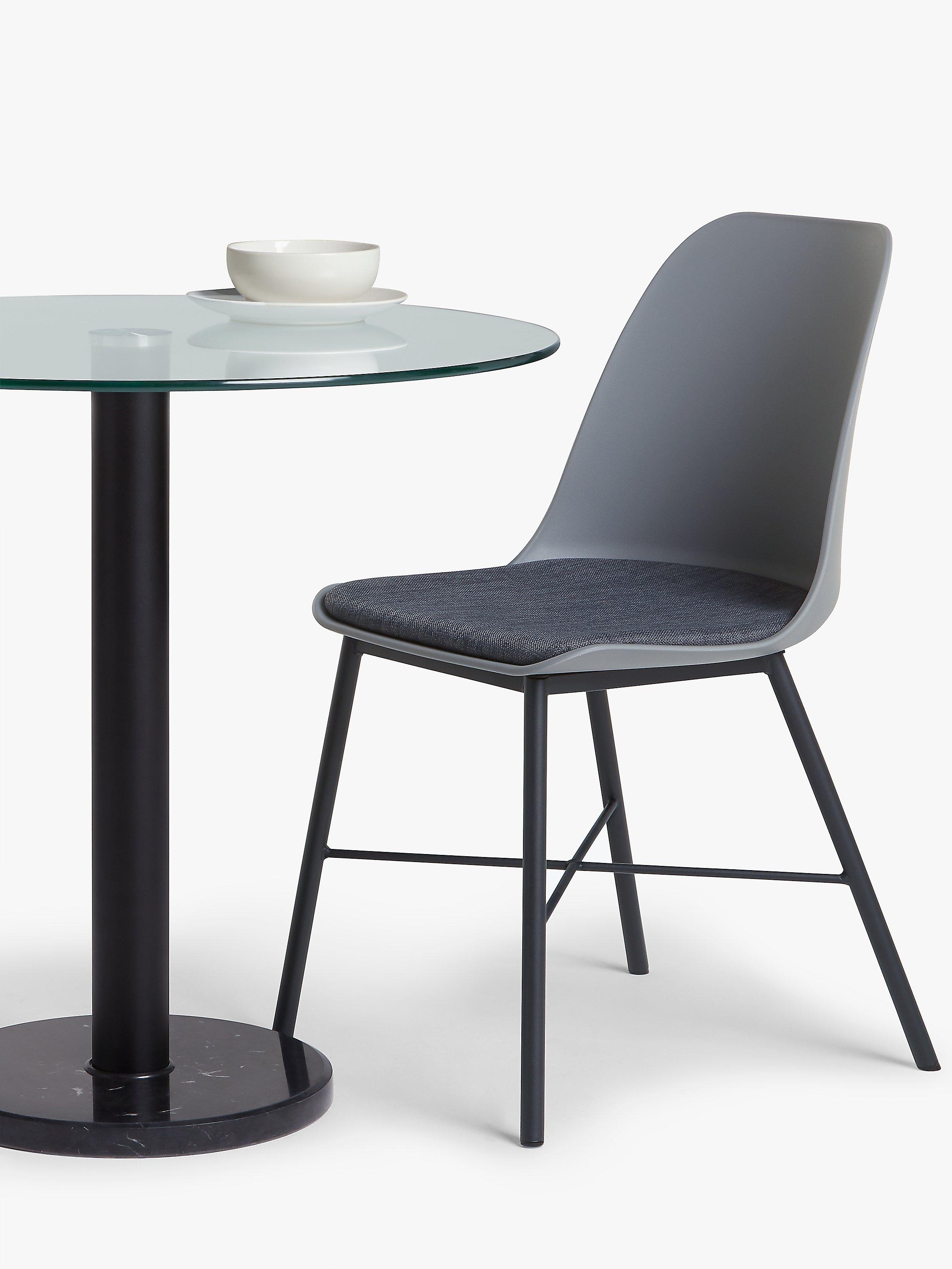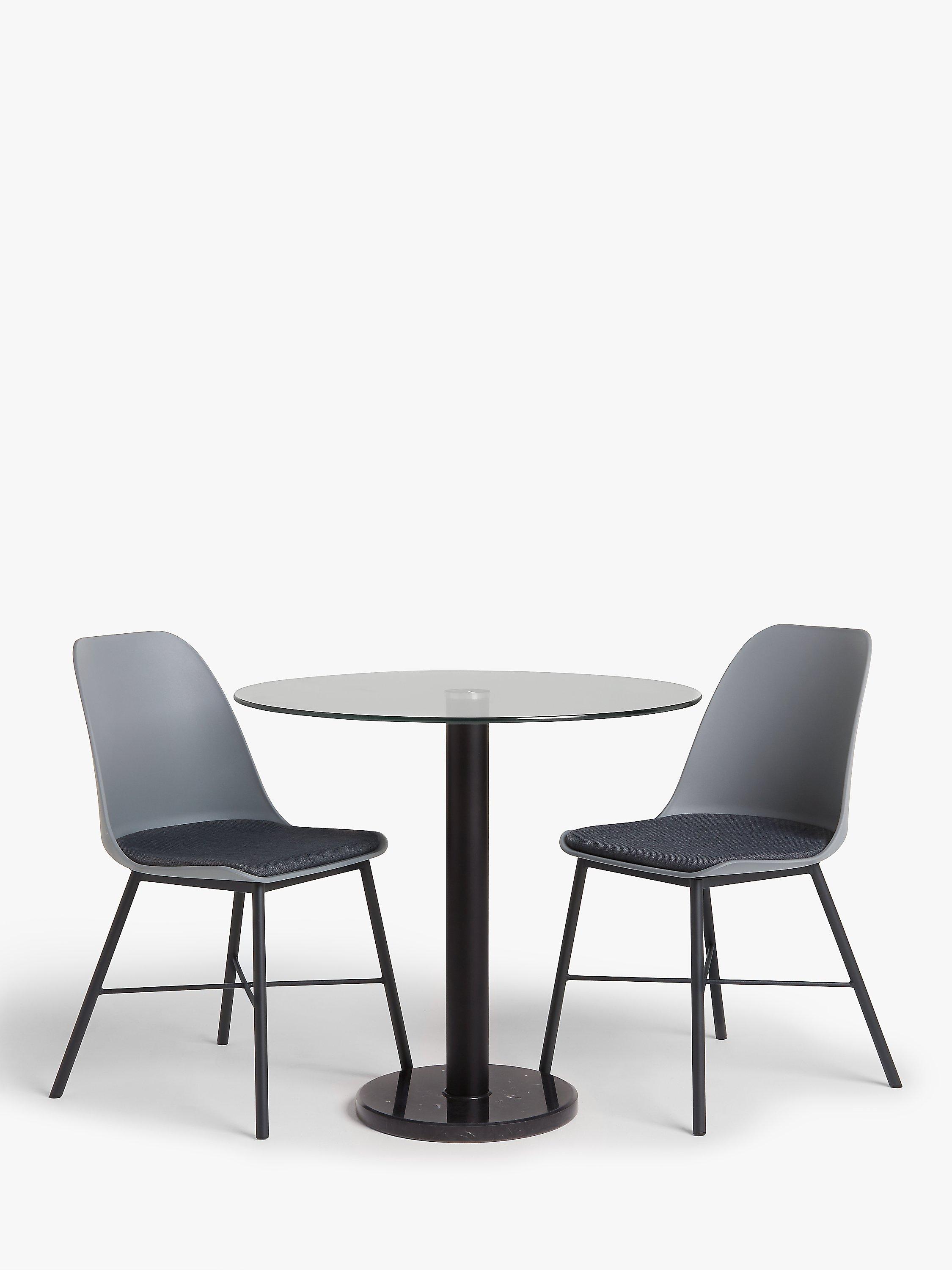 A marble table base topped with a tempered glass top will give your dining area a classic high-end bistro look. Pair with dark fabric or faux leather chairs, or choose practical polypropylene for a more contemporary vibe.