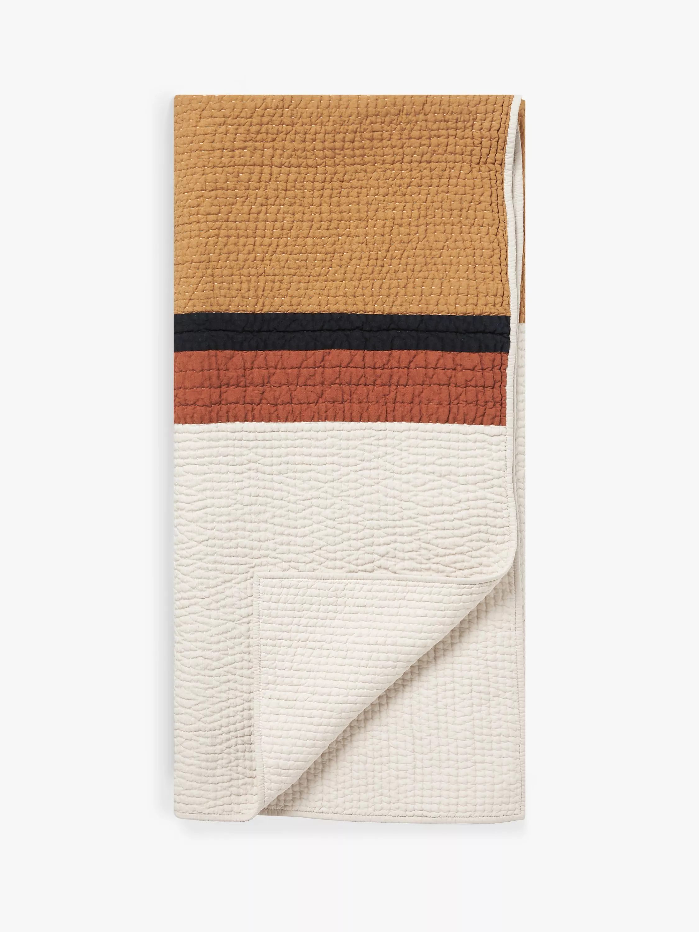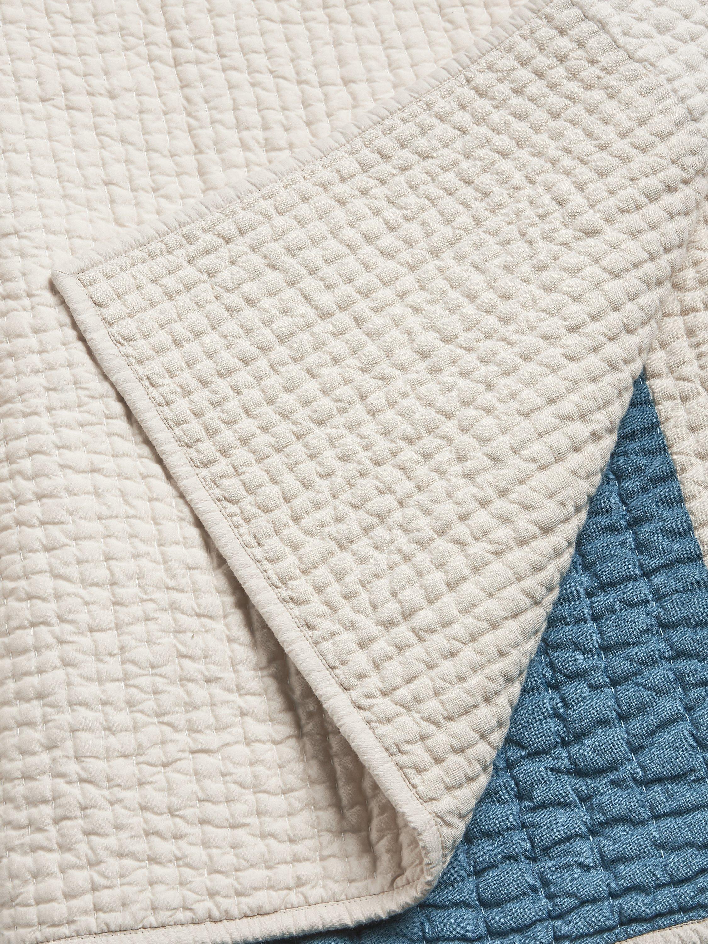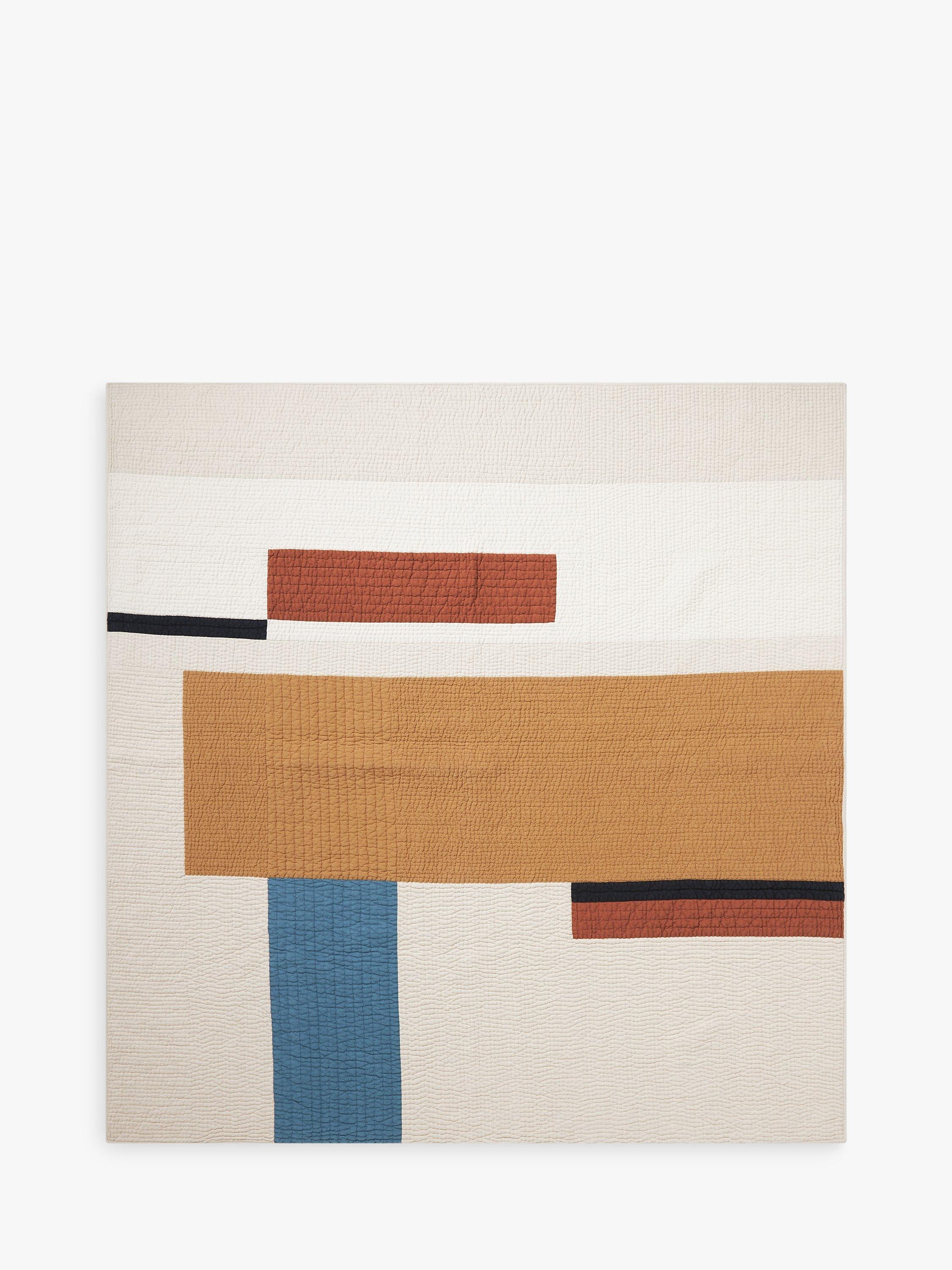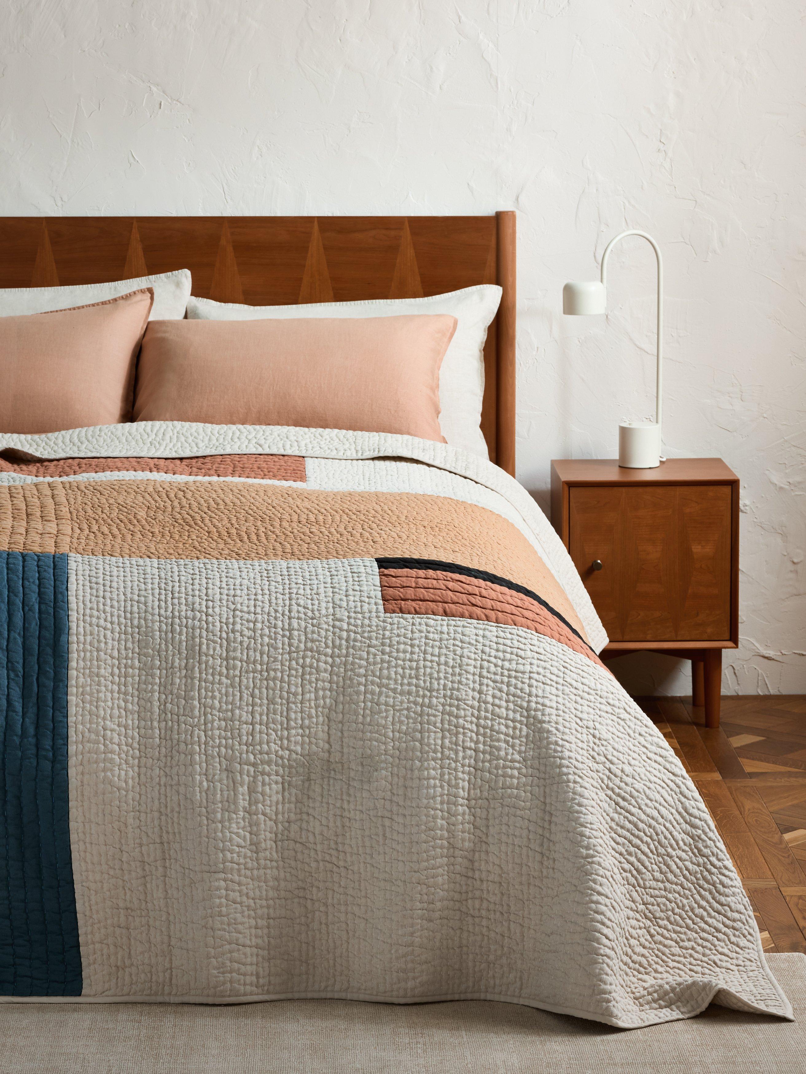 This colour block quilted bedspread is made from a mix of natural fibres including linen.