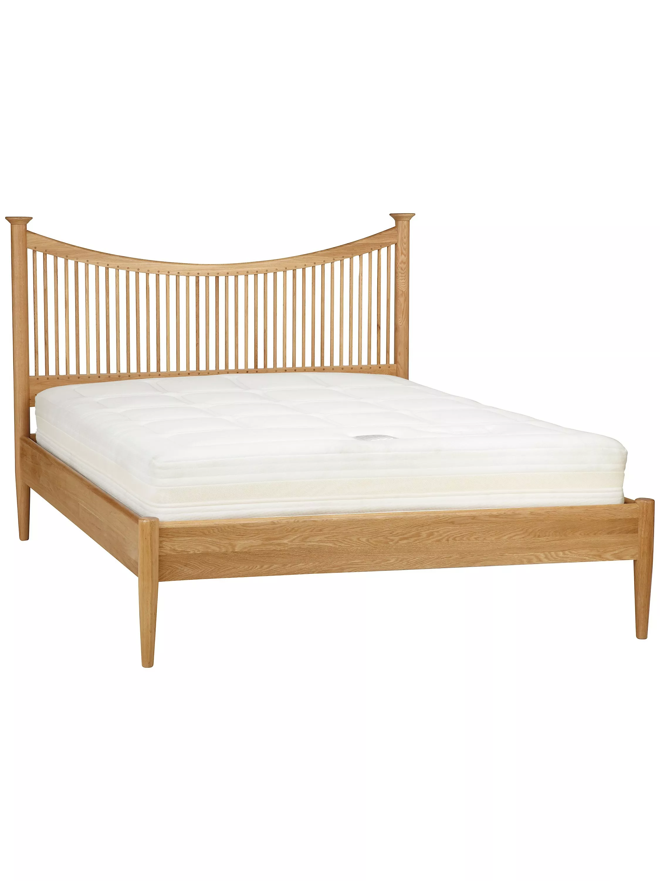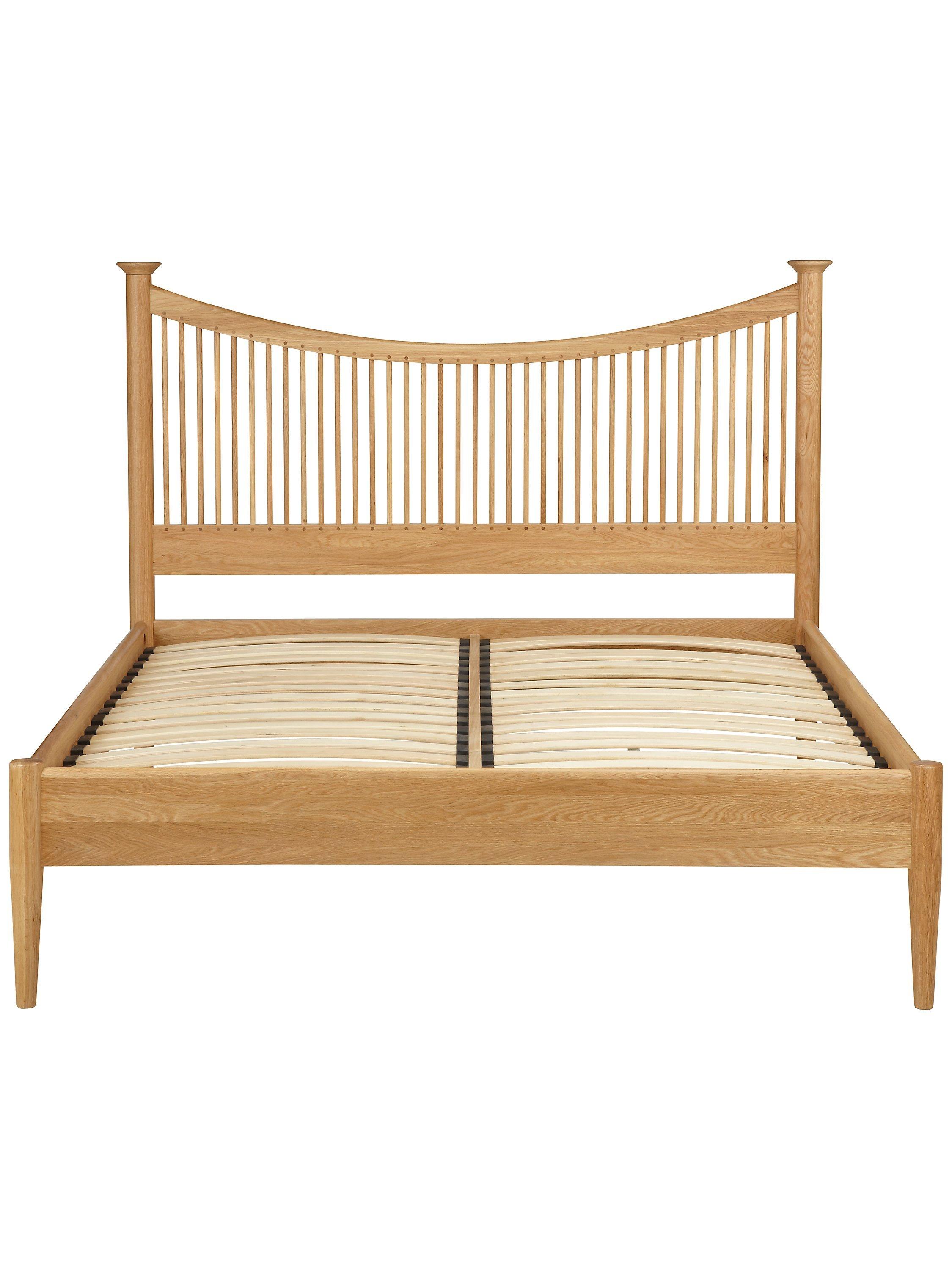 Made from a combination of solid European oak and hard-wearing veneers, our Essence bed frame has a timeless design. The slatted headboard is carved in a curved shape which contrasts against the clean-lined frame and gently tapered legs. It's easy to assemble and the natural pattern and tone of the wood grain is showcased throughout, making it an adaptable style in both classic and more contemporary interiors. There are also sprung slats in the base which provide a supportive foundation for your mattress.