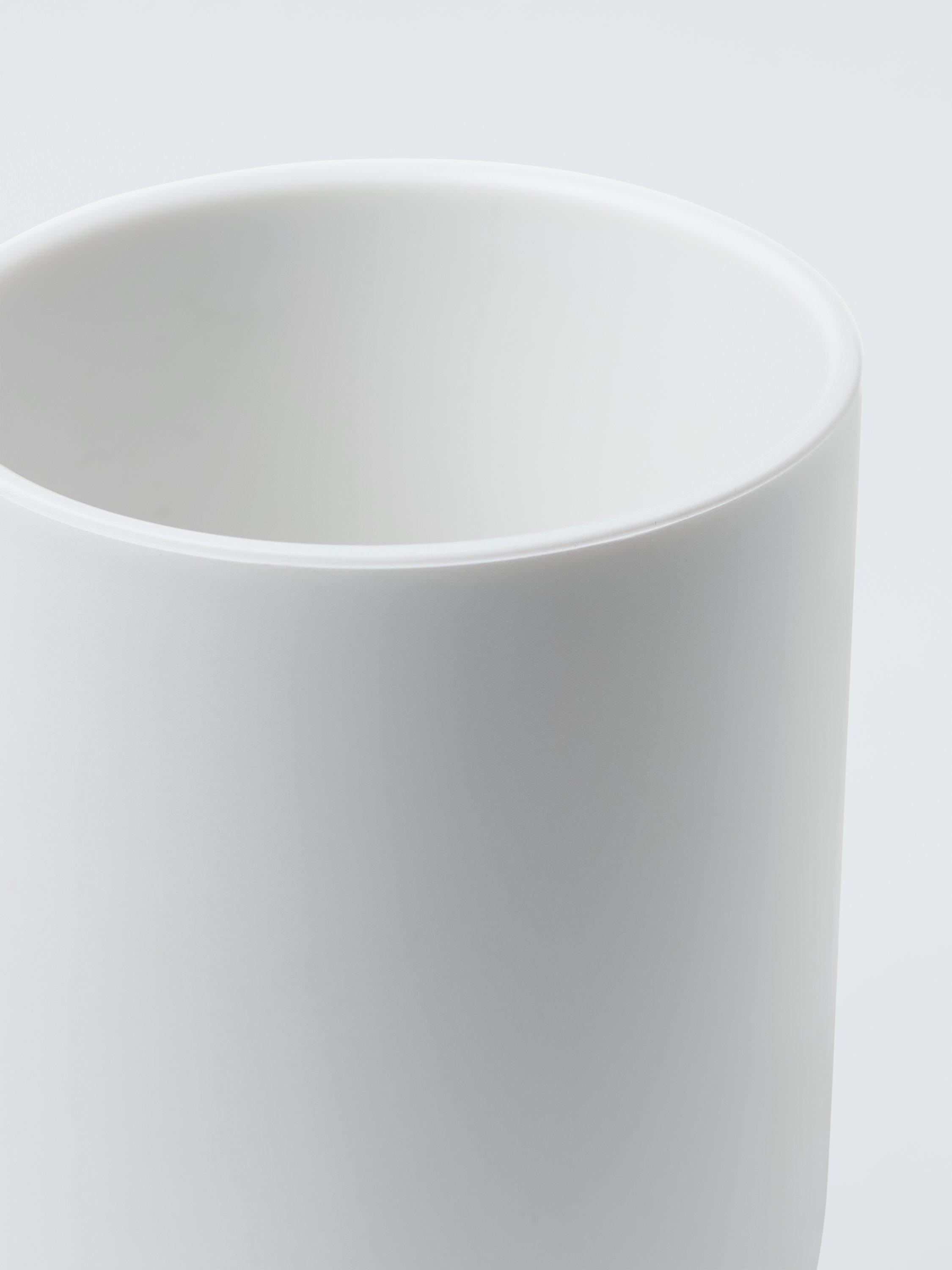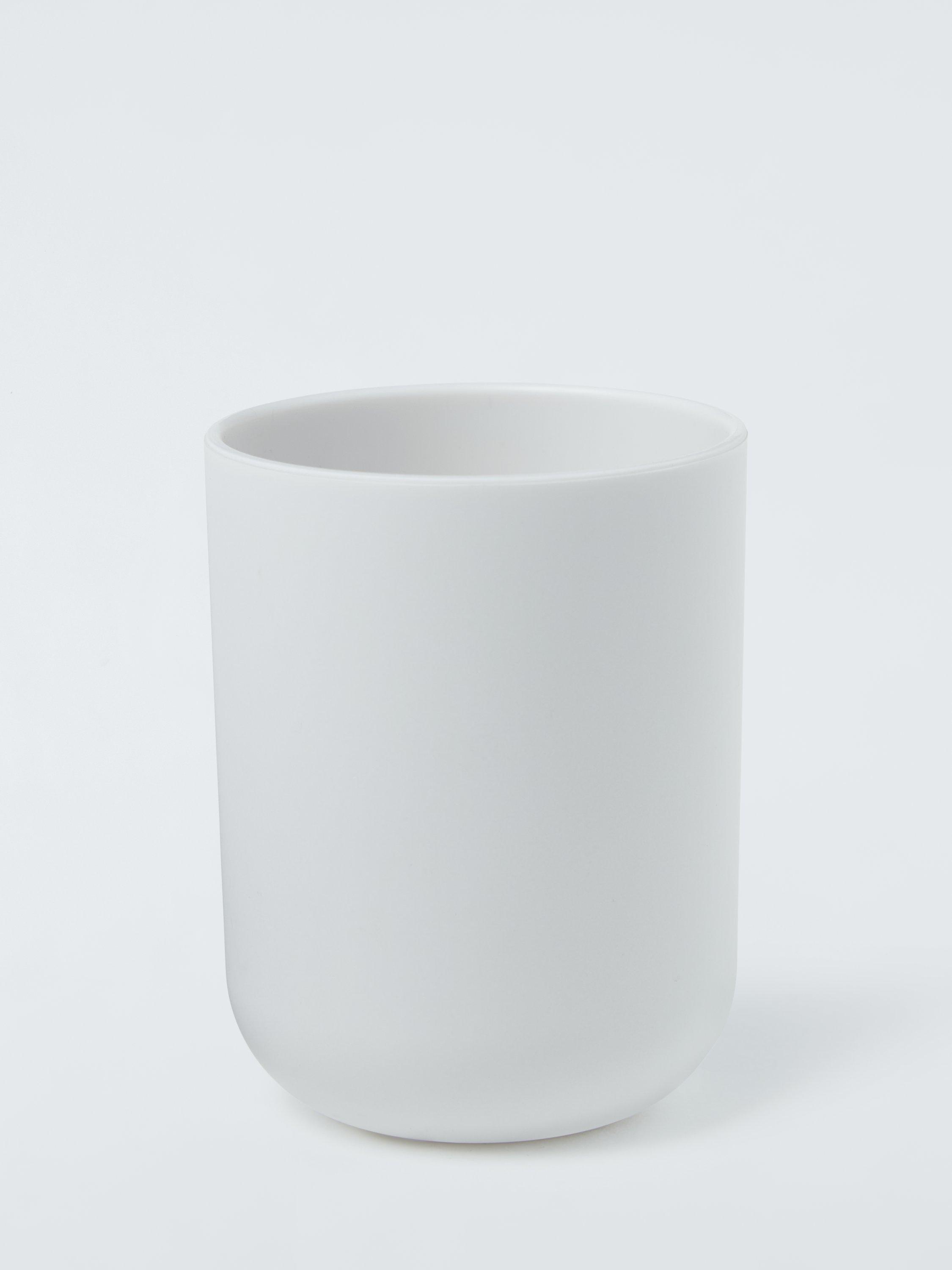 A great-value plastic bathroom tumbler with a rounded design.
