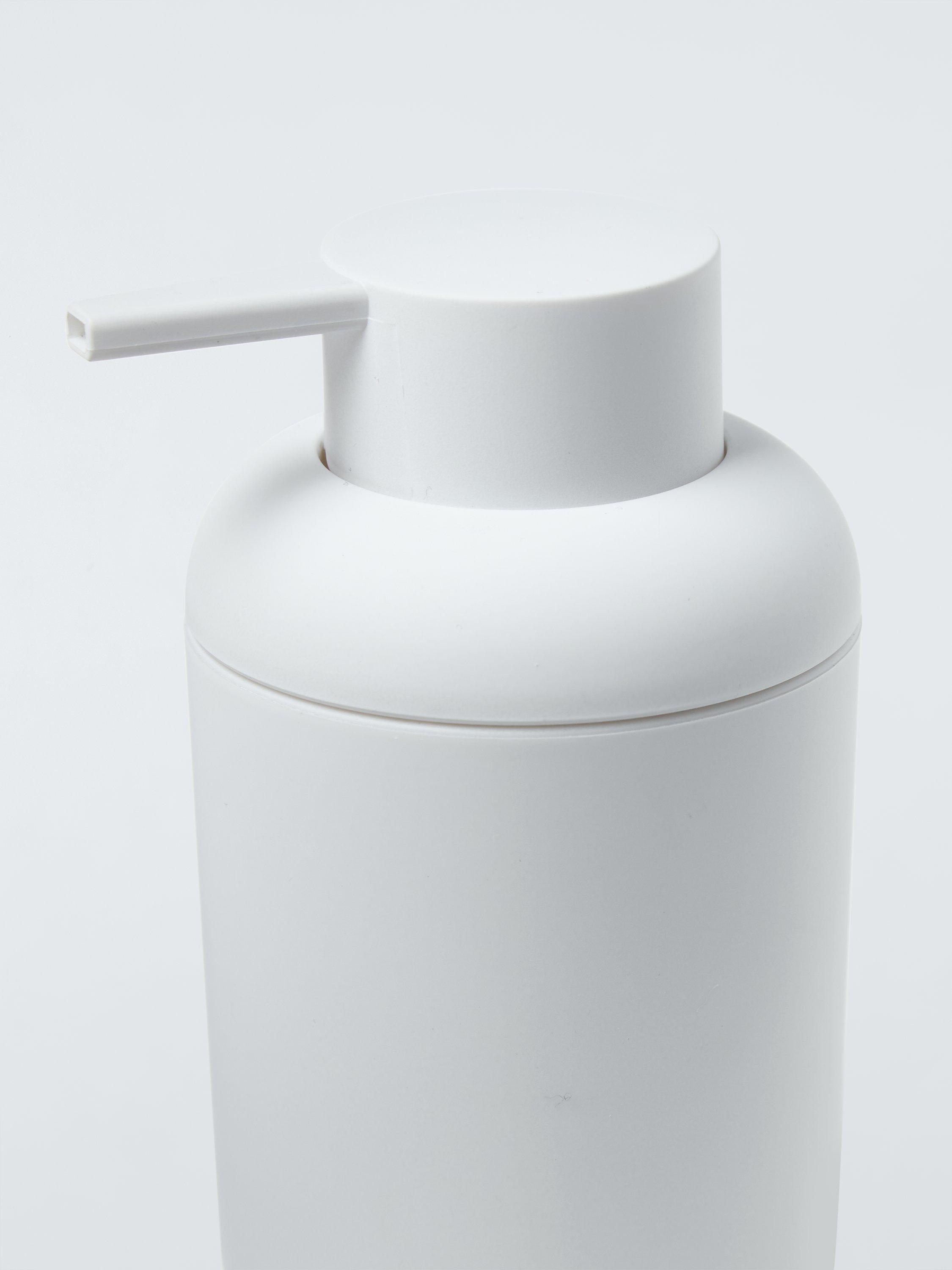 A great-value plastic soap dispenser with a rounded design, perfect for your bathroom or kitchen.