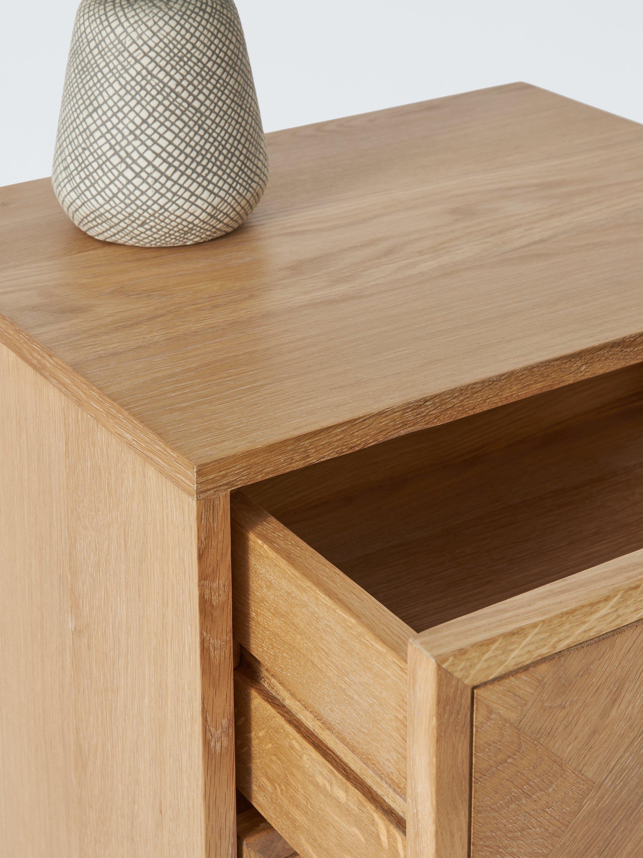 Our Estate range of furniture is characterised by its warm wood finish and parquet patterns. Functional pieces that suit country-inspired interiors, the look is calm and considered, with a lacquered coating that highlights the natural pattern and grain of the oak wood.