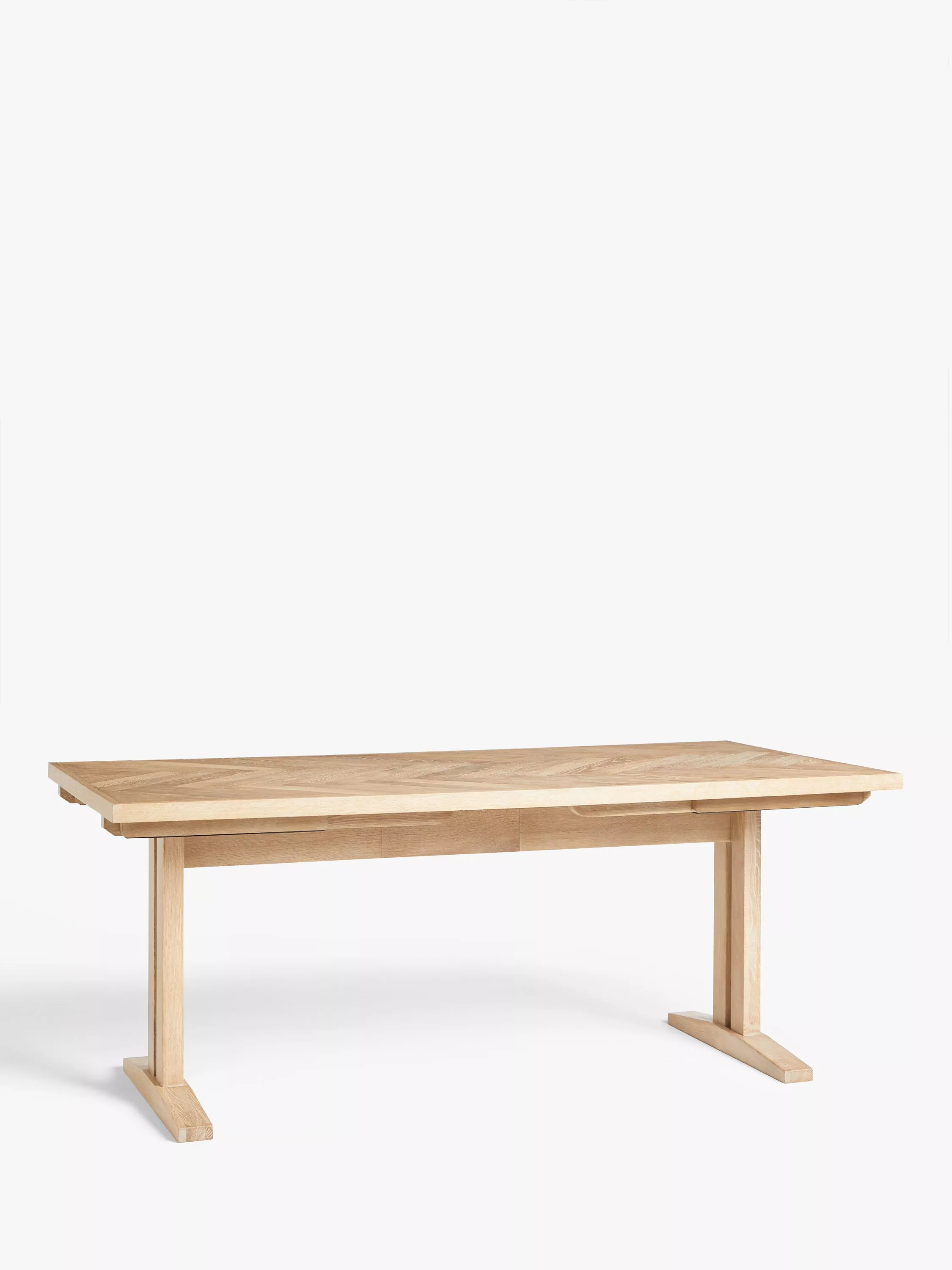 This dining table has an impressively sturdy and traditional frame, with its natural wood grains highlighted throughout its sleek surface top. Easy to extend via two extension leaves, this table offers space for up to 10 diners, making it ideal for entertaining.