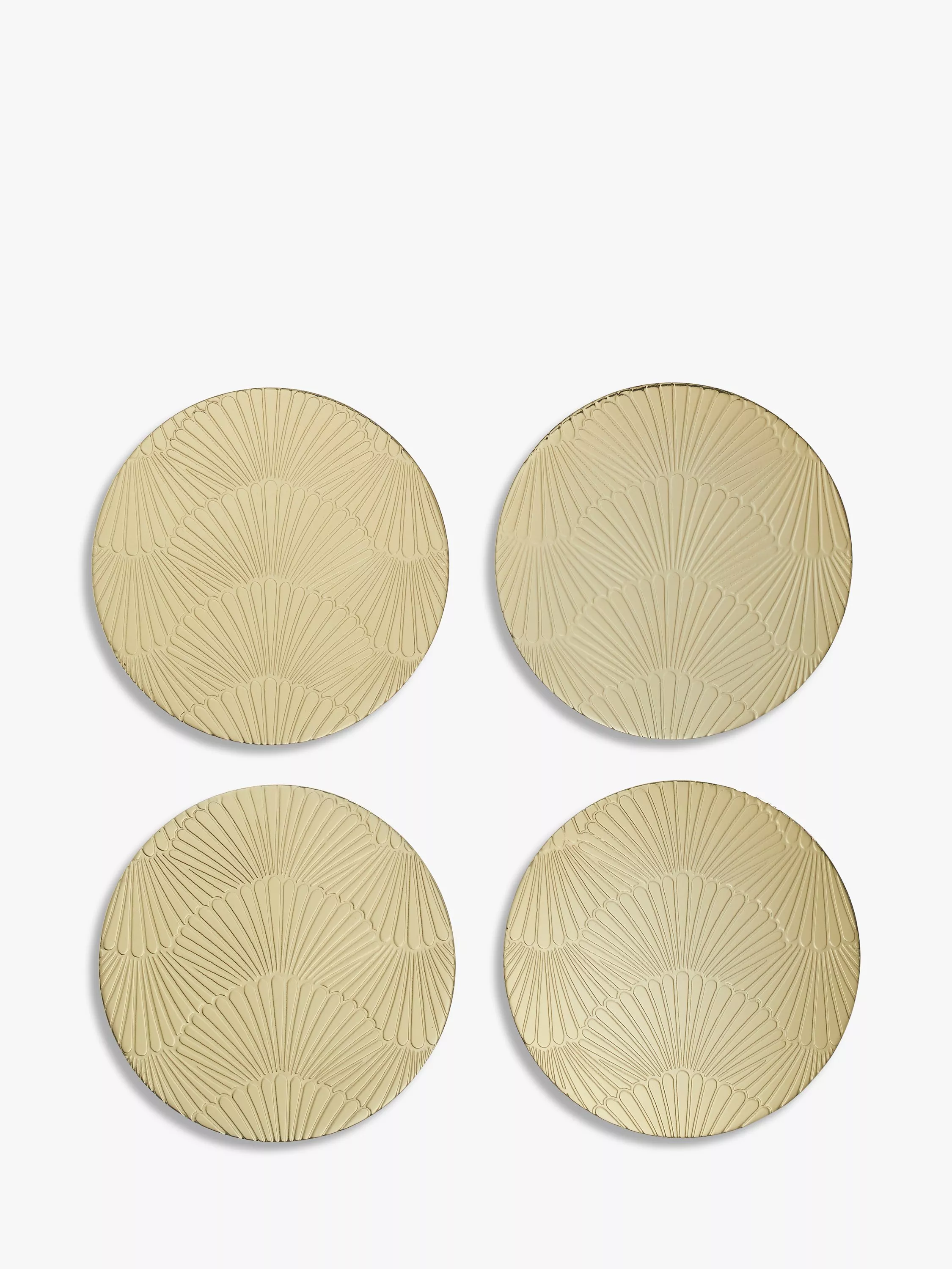 Handmade with an etched scallop design on durable stainless steel. Team this set of four coasters with the matching set of placemats for your dining table.