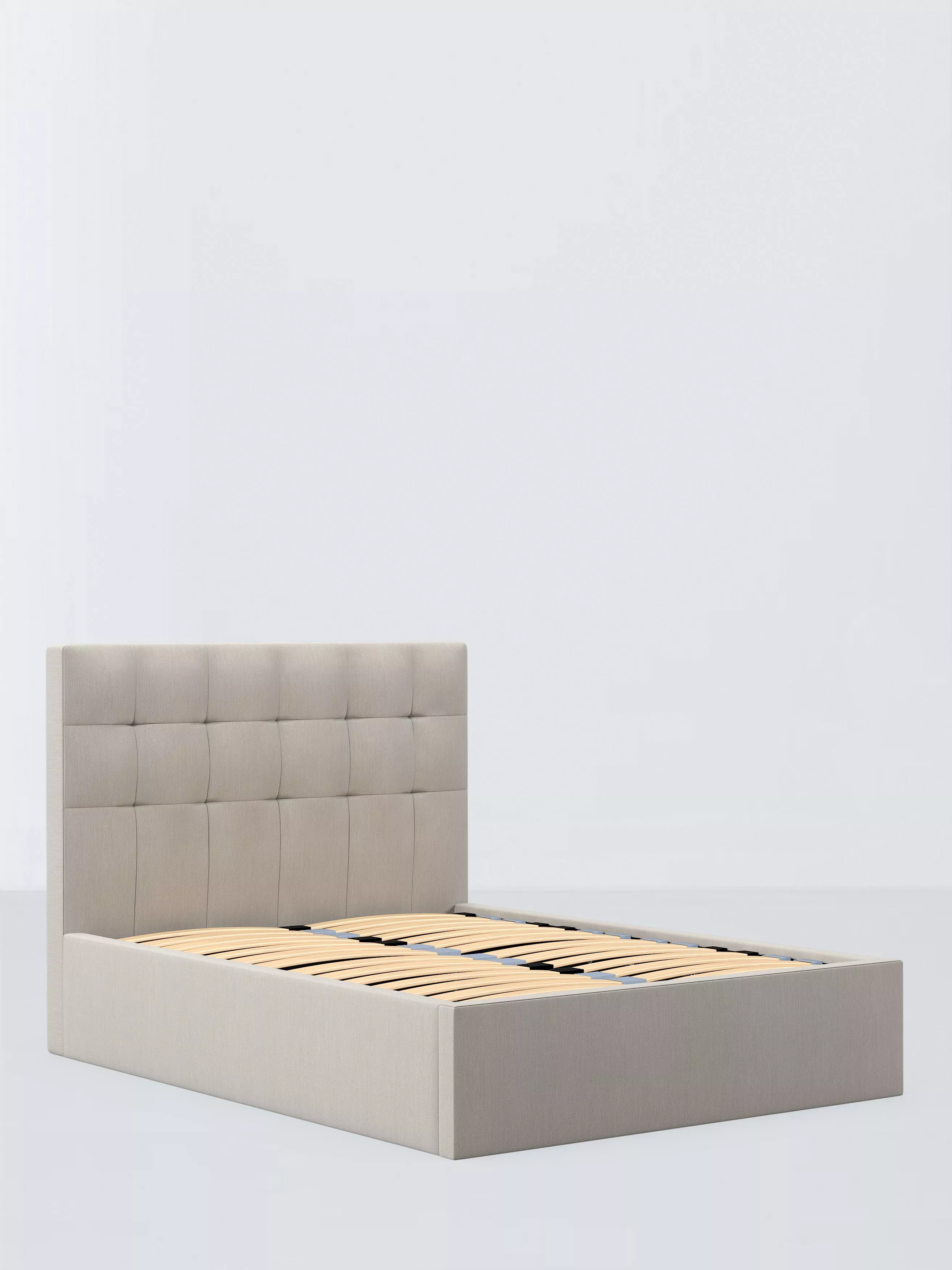Our Ingrid ottoman bed frame is designed to free-up your floor space and bring a clever storage option into your bedroom. We've kept the design simple and practical, fusing clean lines with soft edges. Easy to assemble and made from high-quality timbers, it boasts a contemporary style which incorporates a large well-padded, grid-design headboard, an effect created by clever stitching. This bed frame is designed with wider slats at the shoulders, lumbar and feet providing maximum support for you and your mattress so that you experience perfect spinal alignment while you sleep. The standard slat caps are black so we have added grey slat caps to ensure that you know where to place the wider slats.