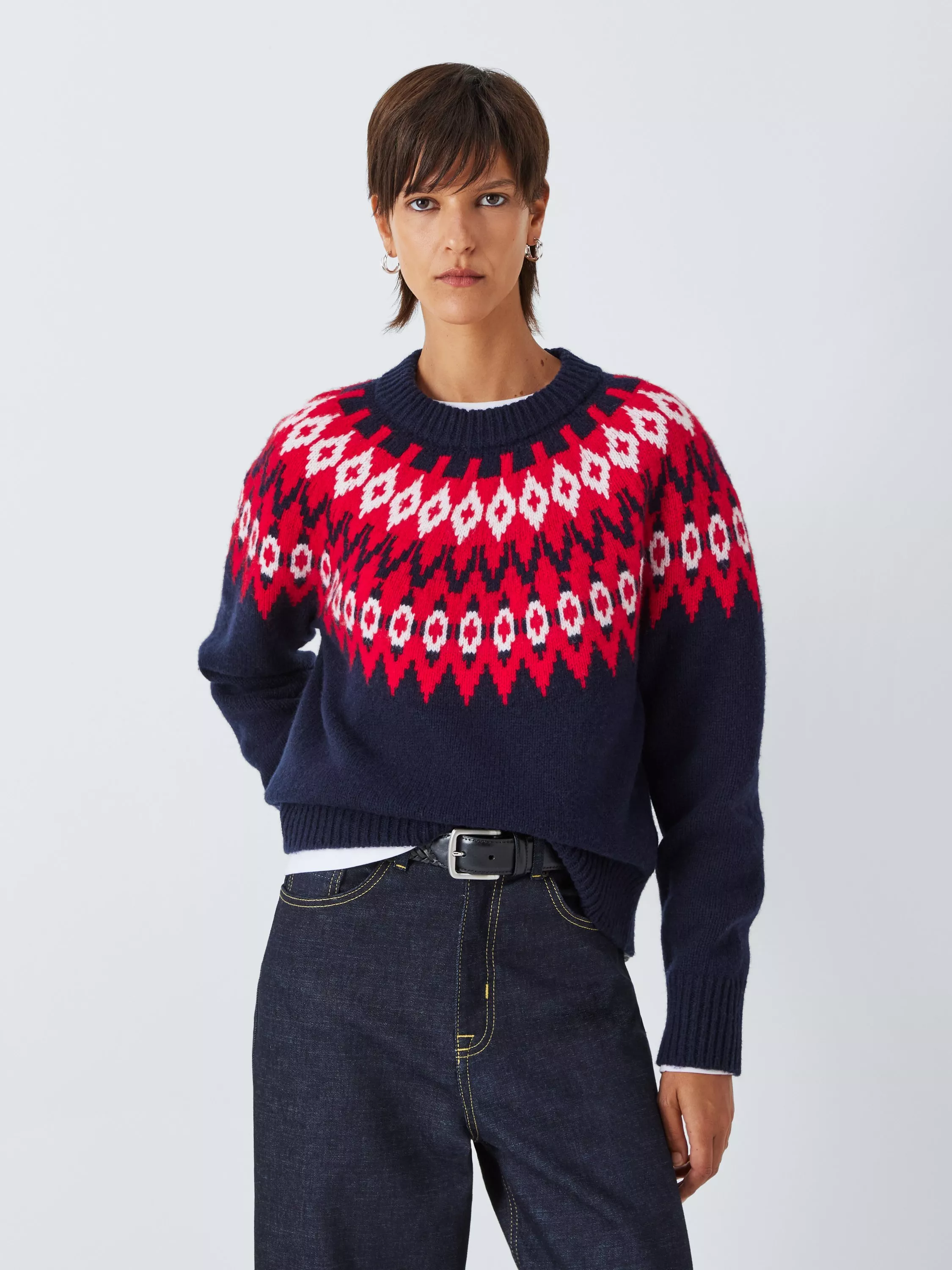 John LewisFair Isle Wool Blend Knit Jumper, Navy/Multi