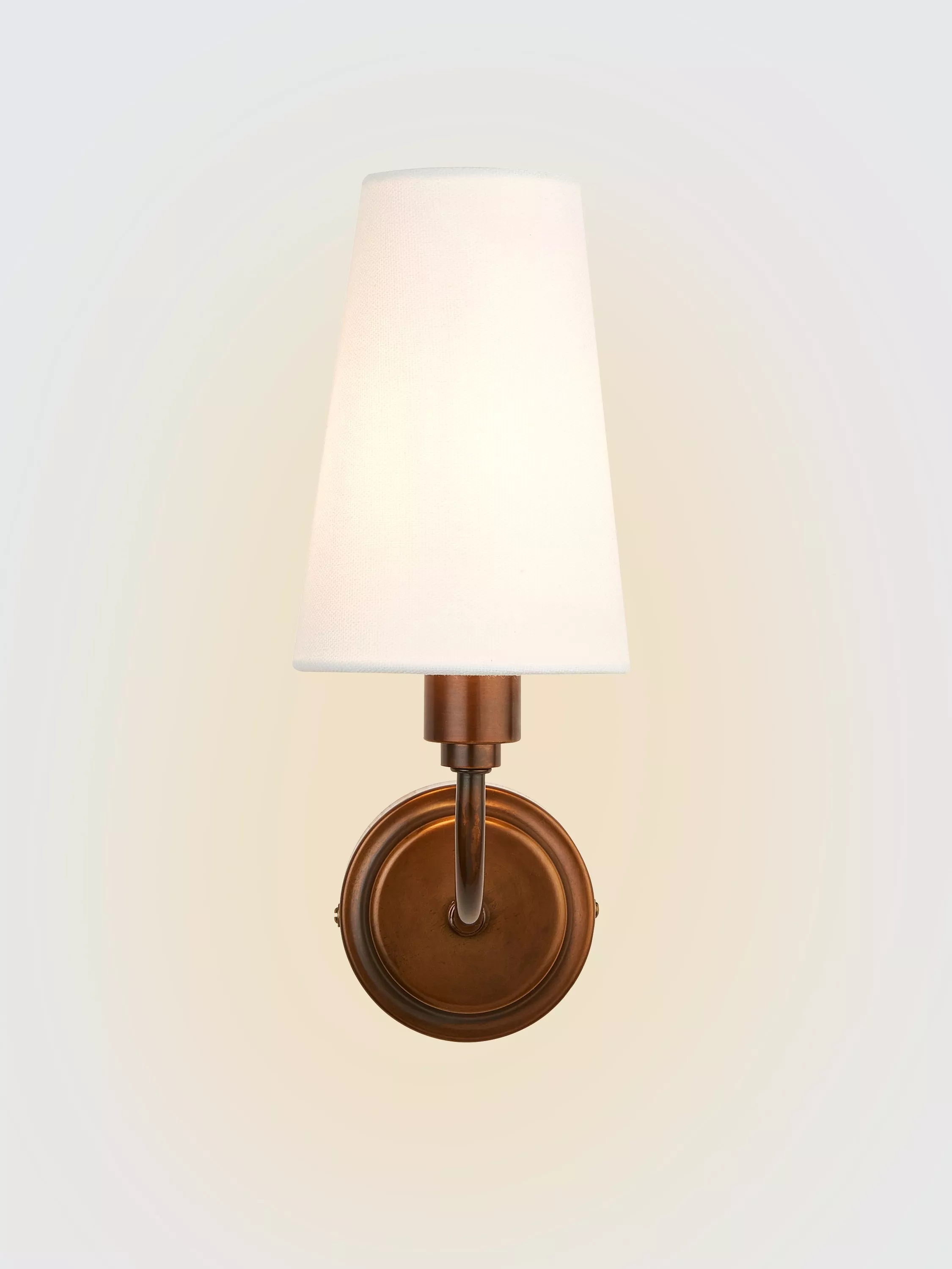 Classic elegance meets farmhouse charm with the Fairford wall light. Finished in a rich heritage bronze, this piece features delicate metalwork and an ivory faux-linen, candle-clip shade.