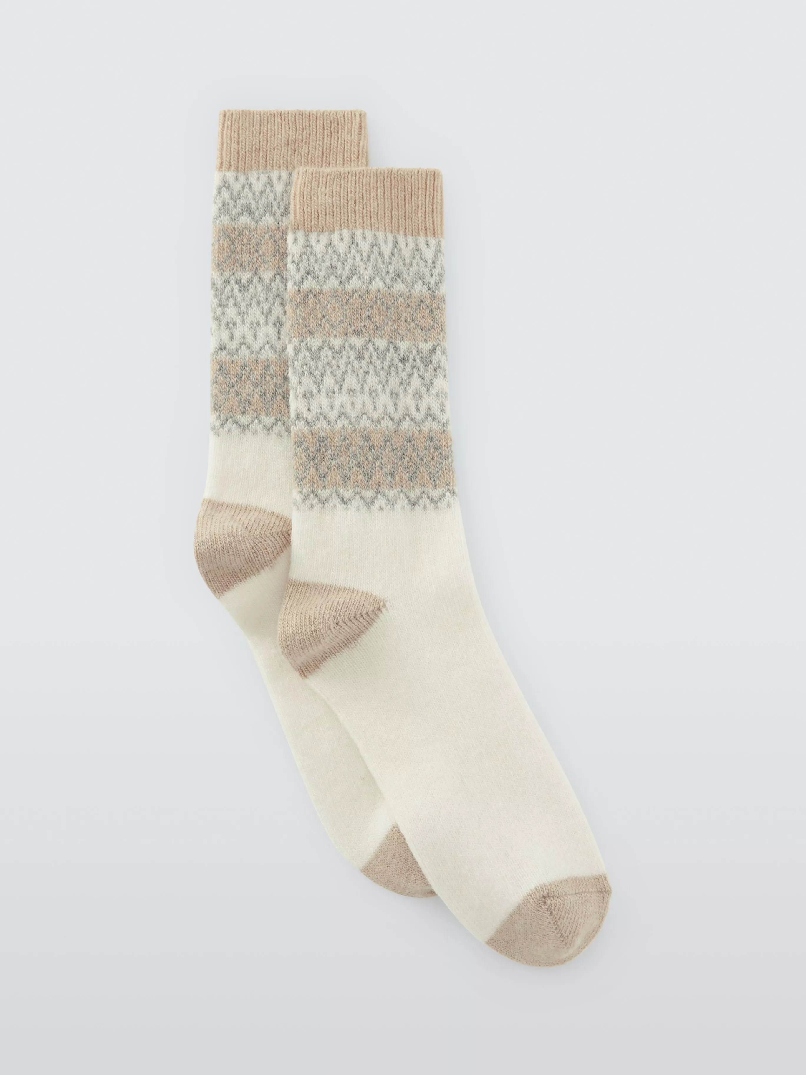 John LewisFairisle Wool Blend with Cashmere Crew Socks, Oatmeal