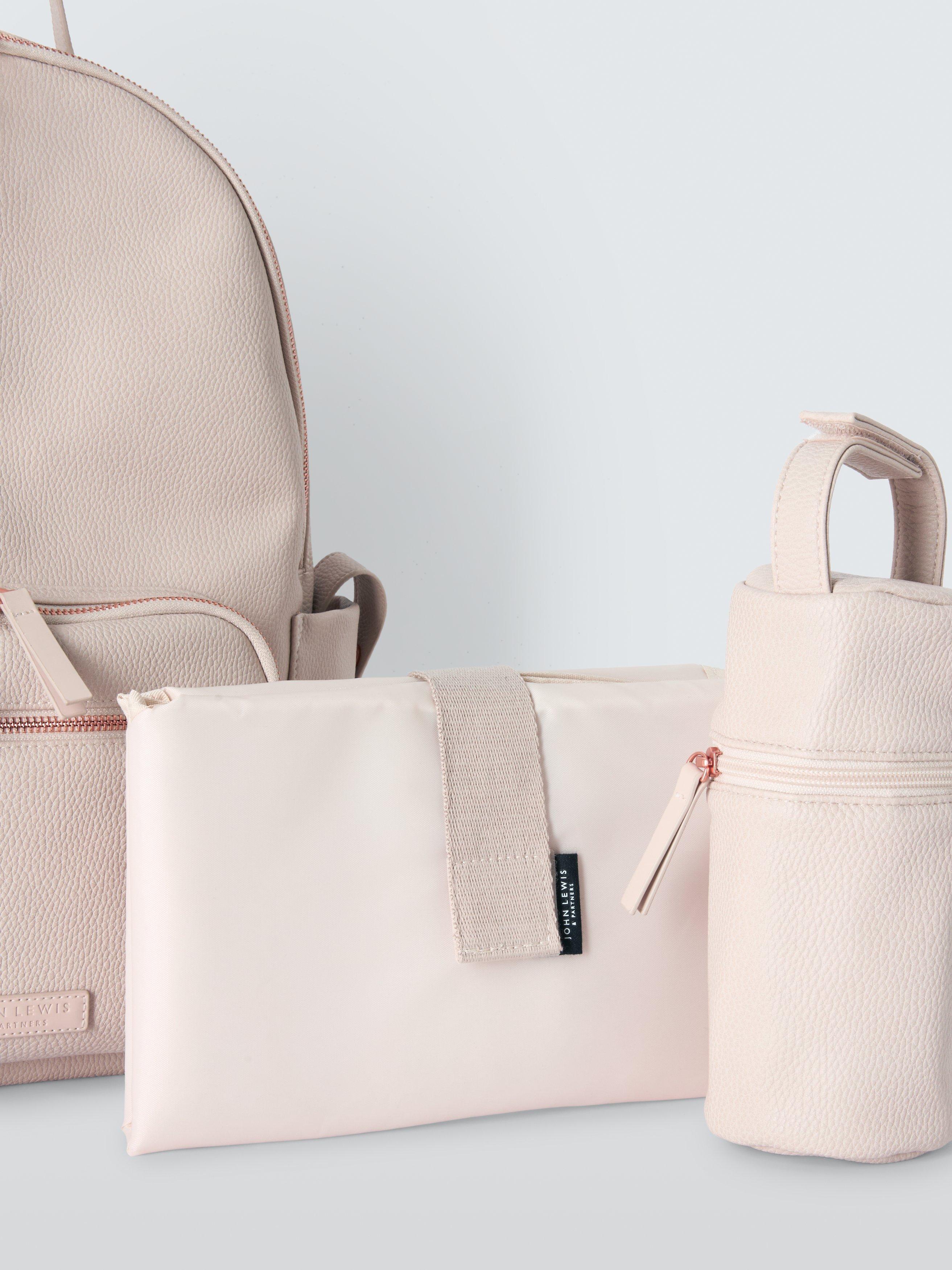 With a modern, sleek style that works well with most looks, this large capacity changing bag has all the room and pockets you need to keep your baby essentials neatly organised. It is made from durable faux leather and comes with a changing mat, an insulated bottle bag, and removable stroller straps so you can attach it to your pushchair with ease.
