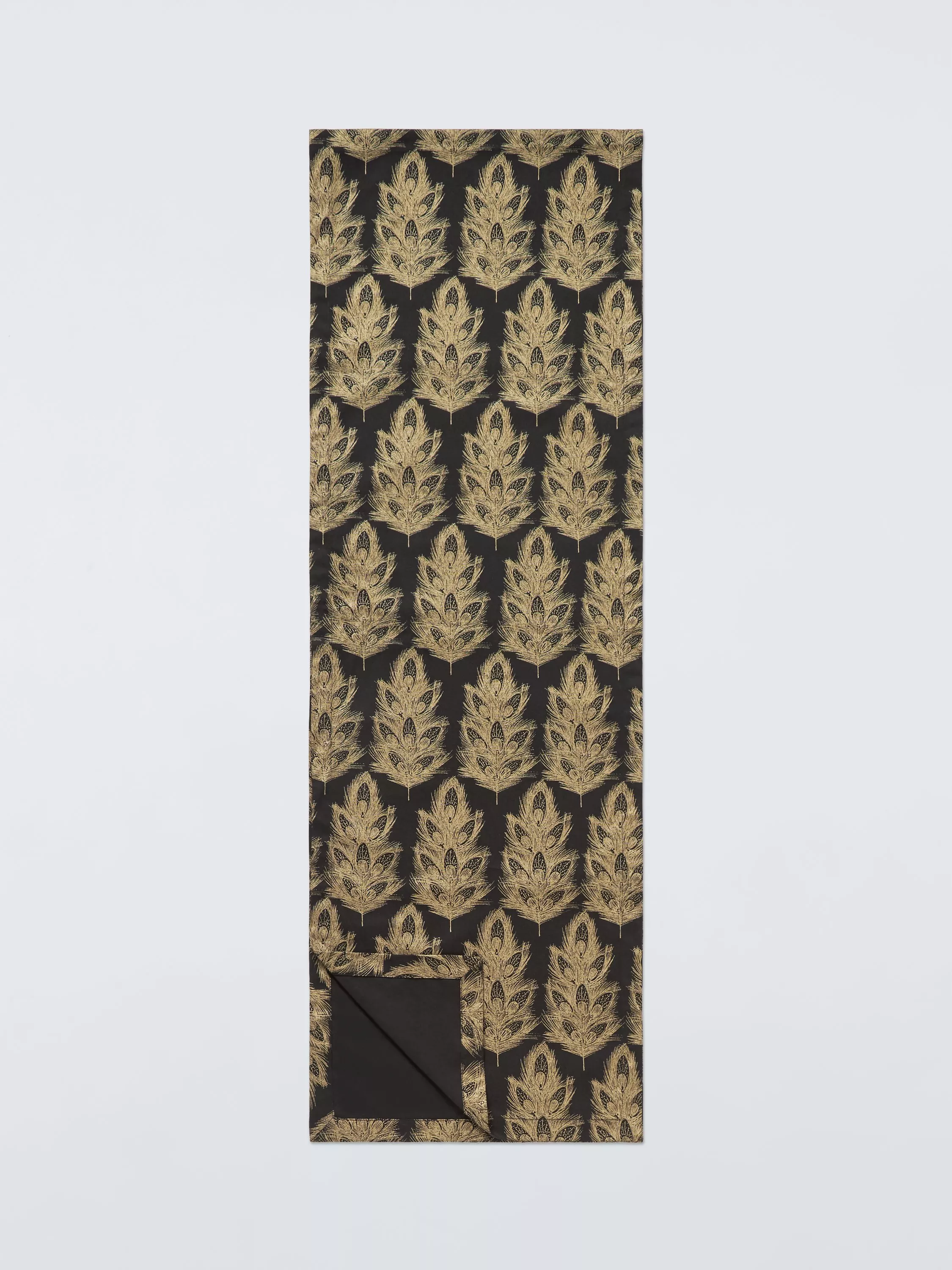 John LewisFeather Jacquard Cotton Table Runner, 250cm, Black/Gold