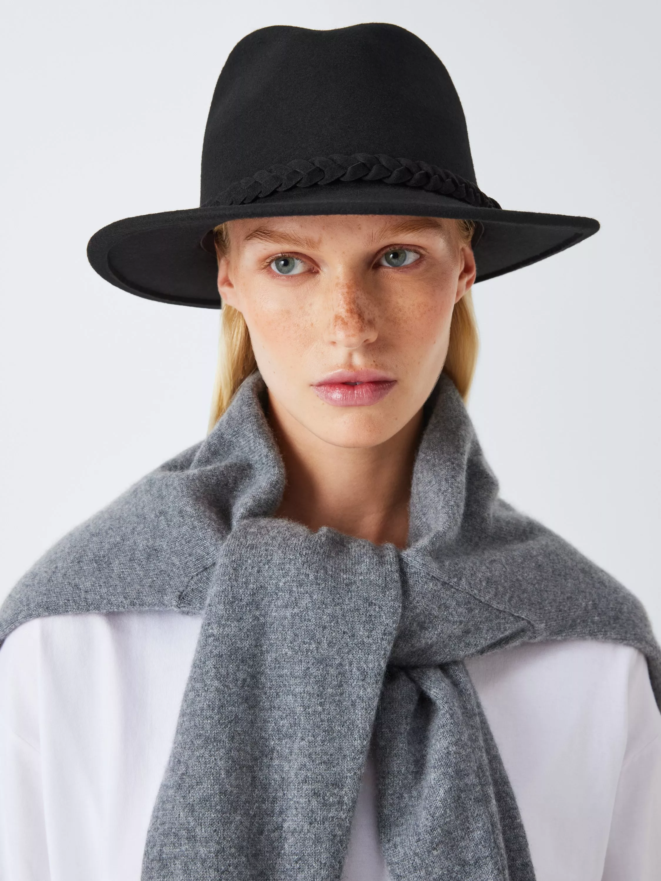 A stylish choice when it comes to accessorising, this fedora is made of wool for warmth. It remains true to the hat's traditional shape and style, with a plaited trim to add texture.