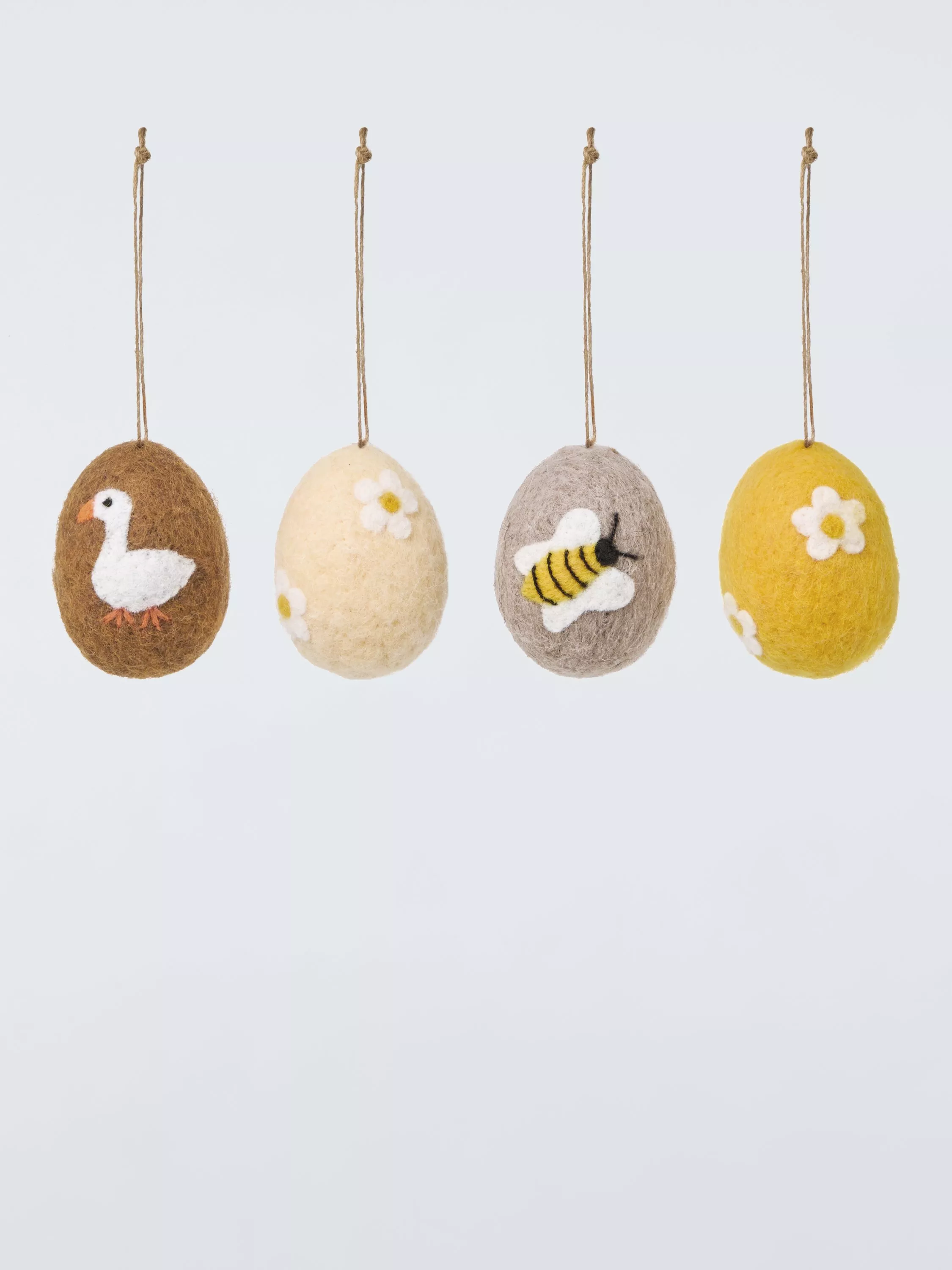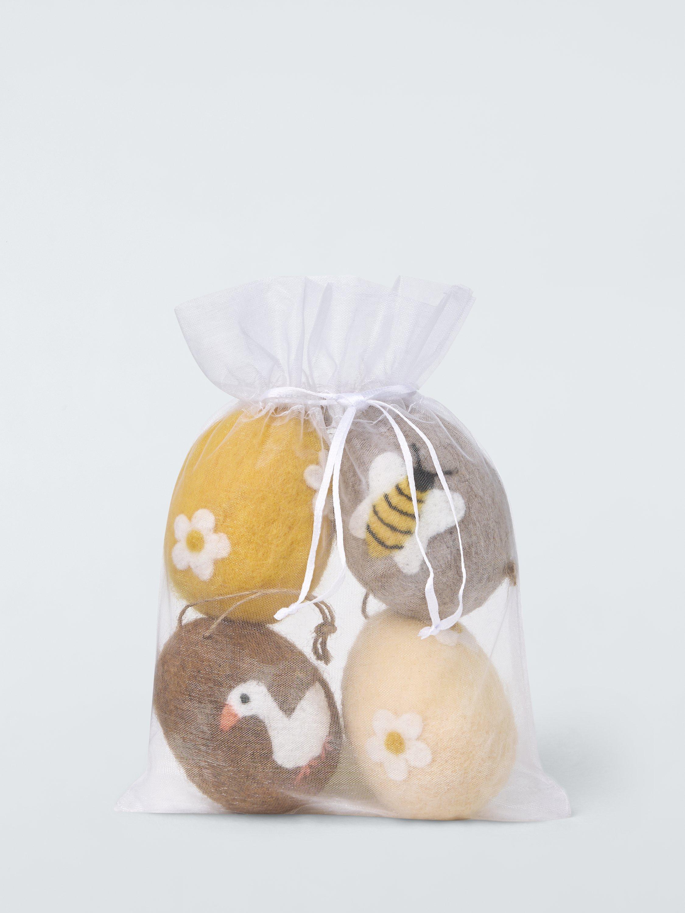 A pack of four felt-covered hanging eggs in a variety of spring-inspired designs.