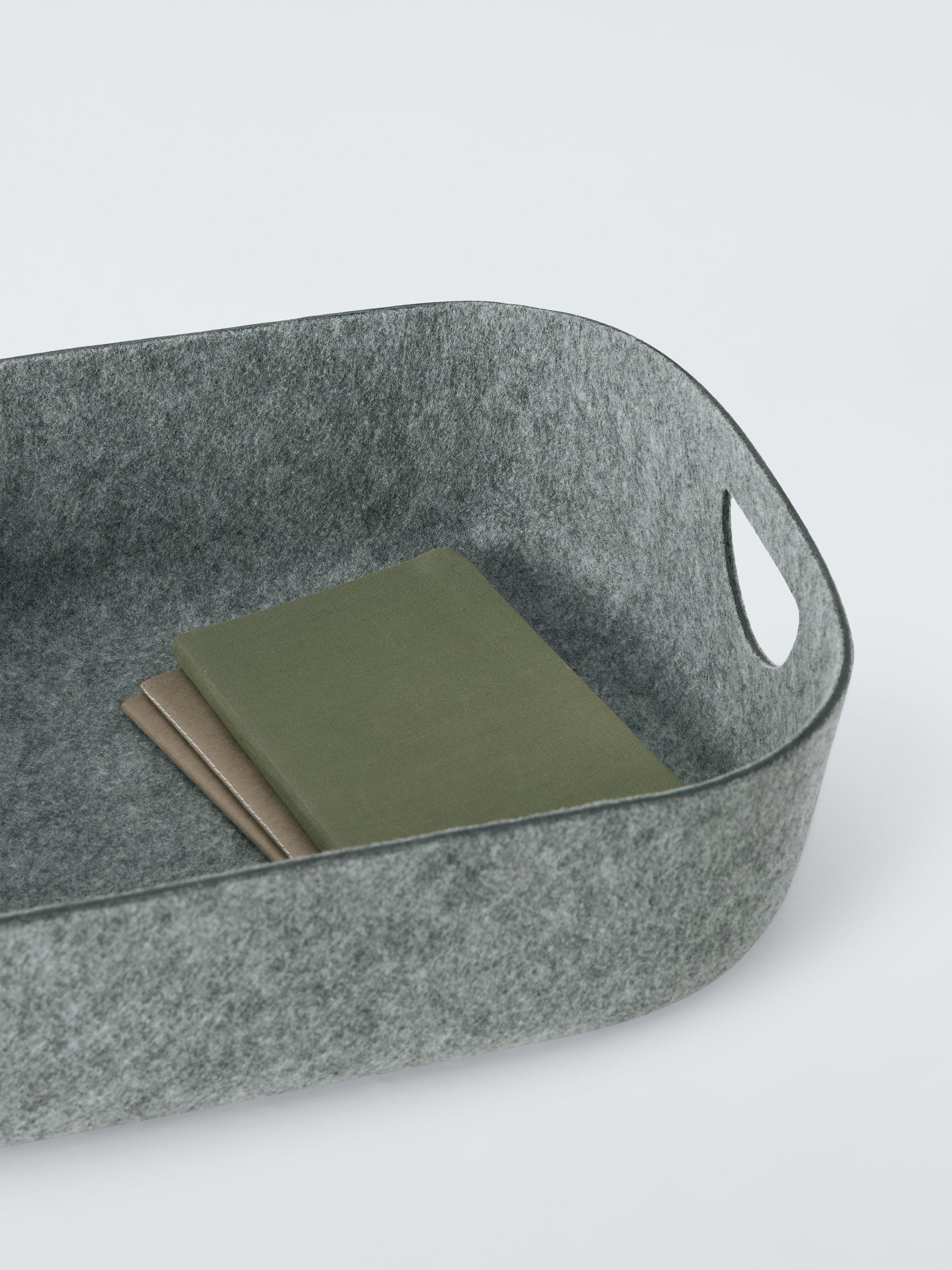 This generously-sized felt storage tray can be used in the bedroom, utility room or bathroom to keep units and table tops clutter-free.