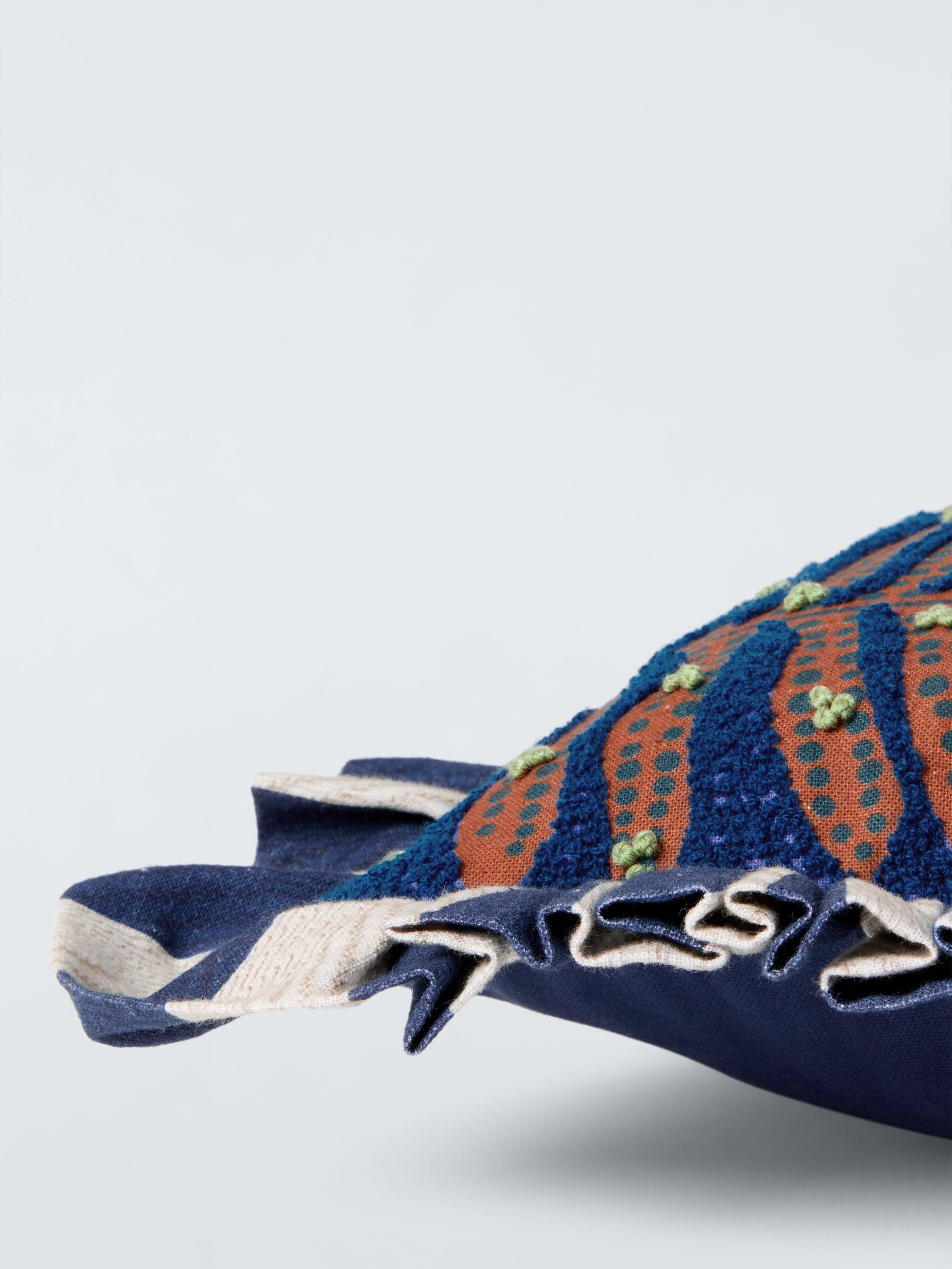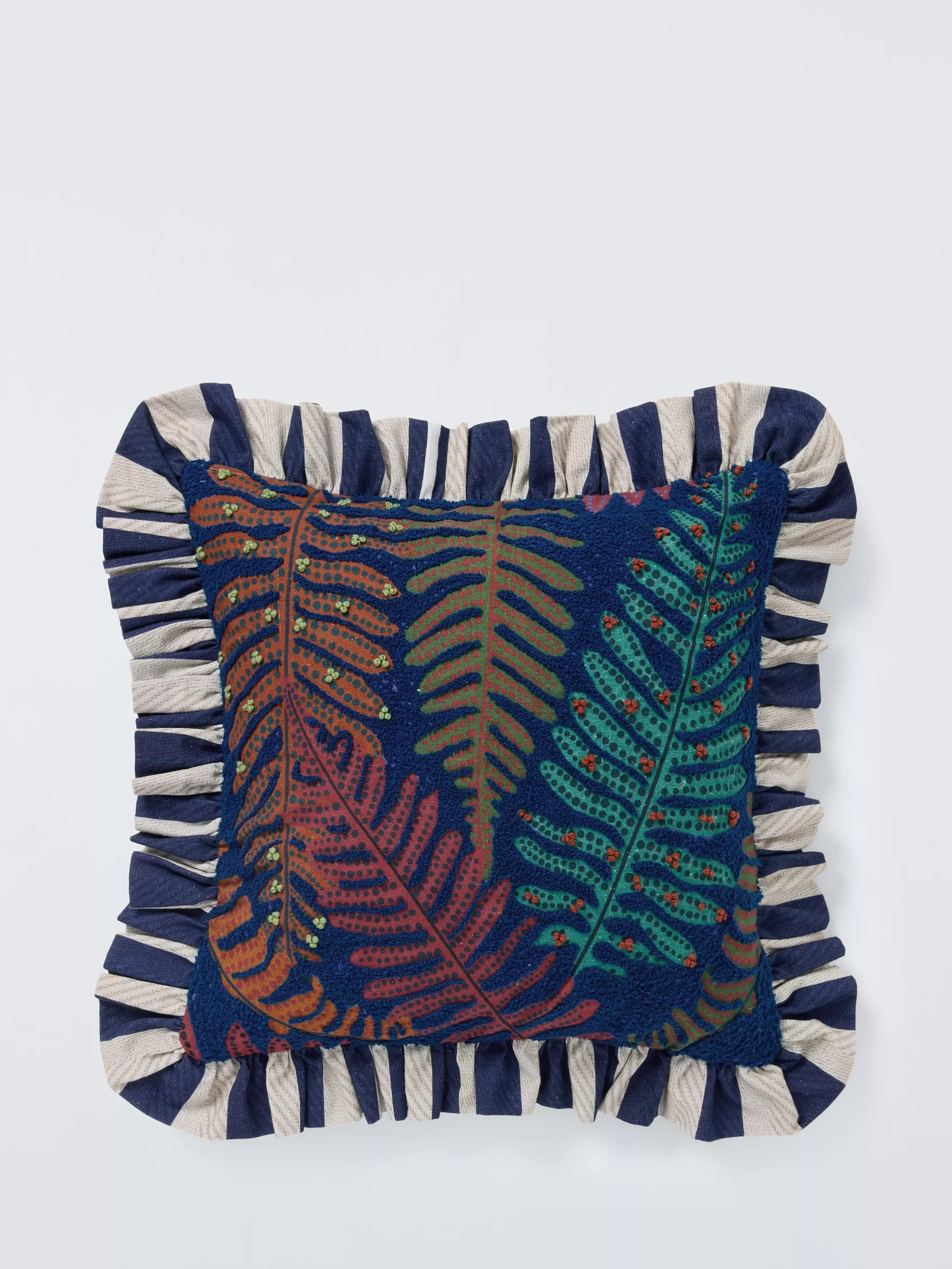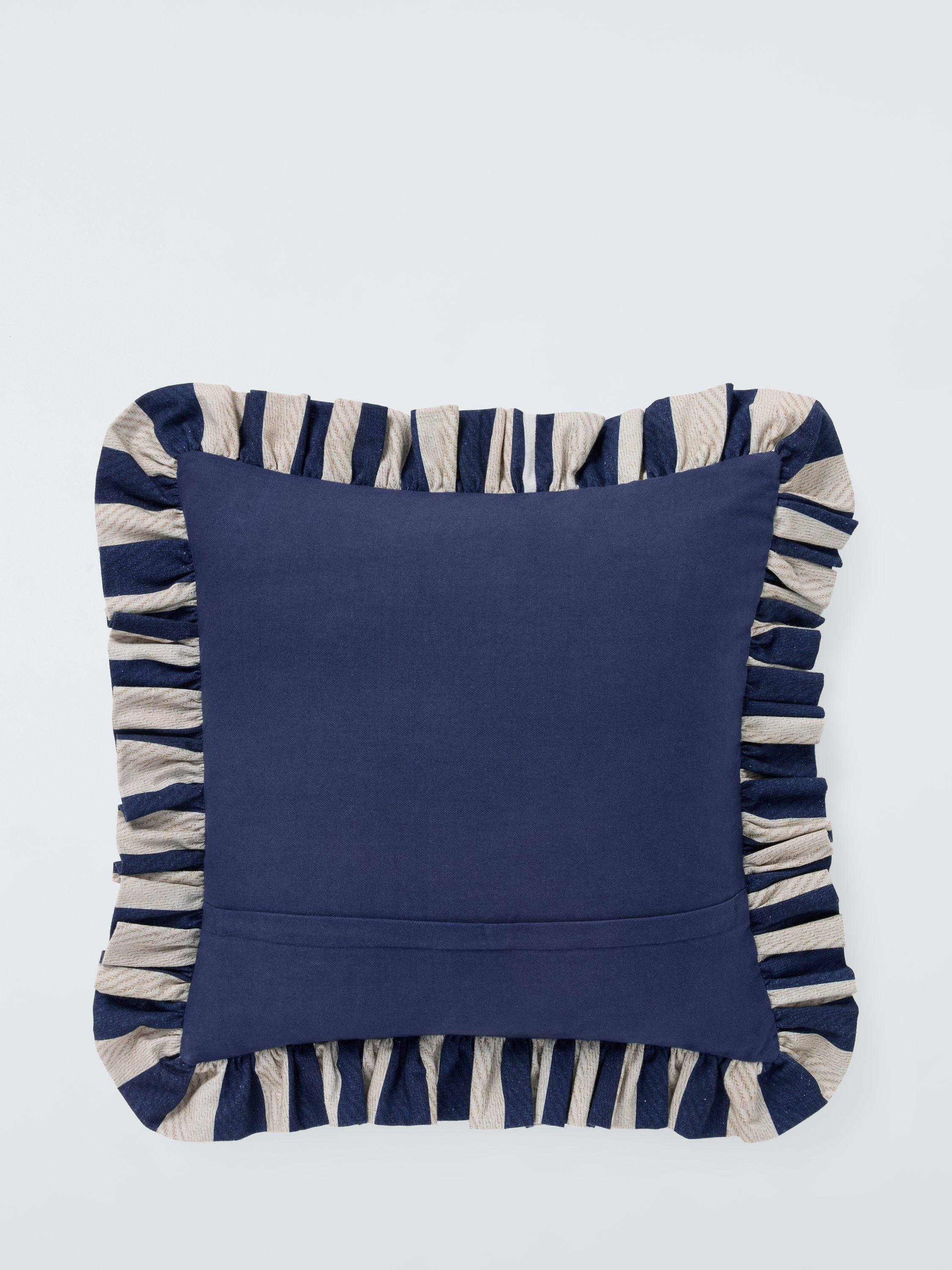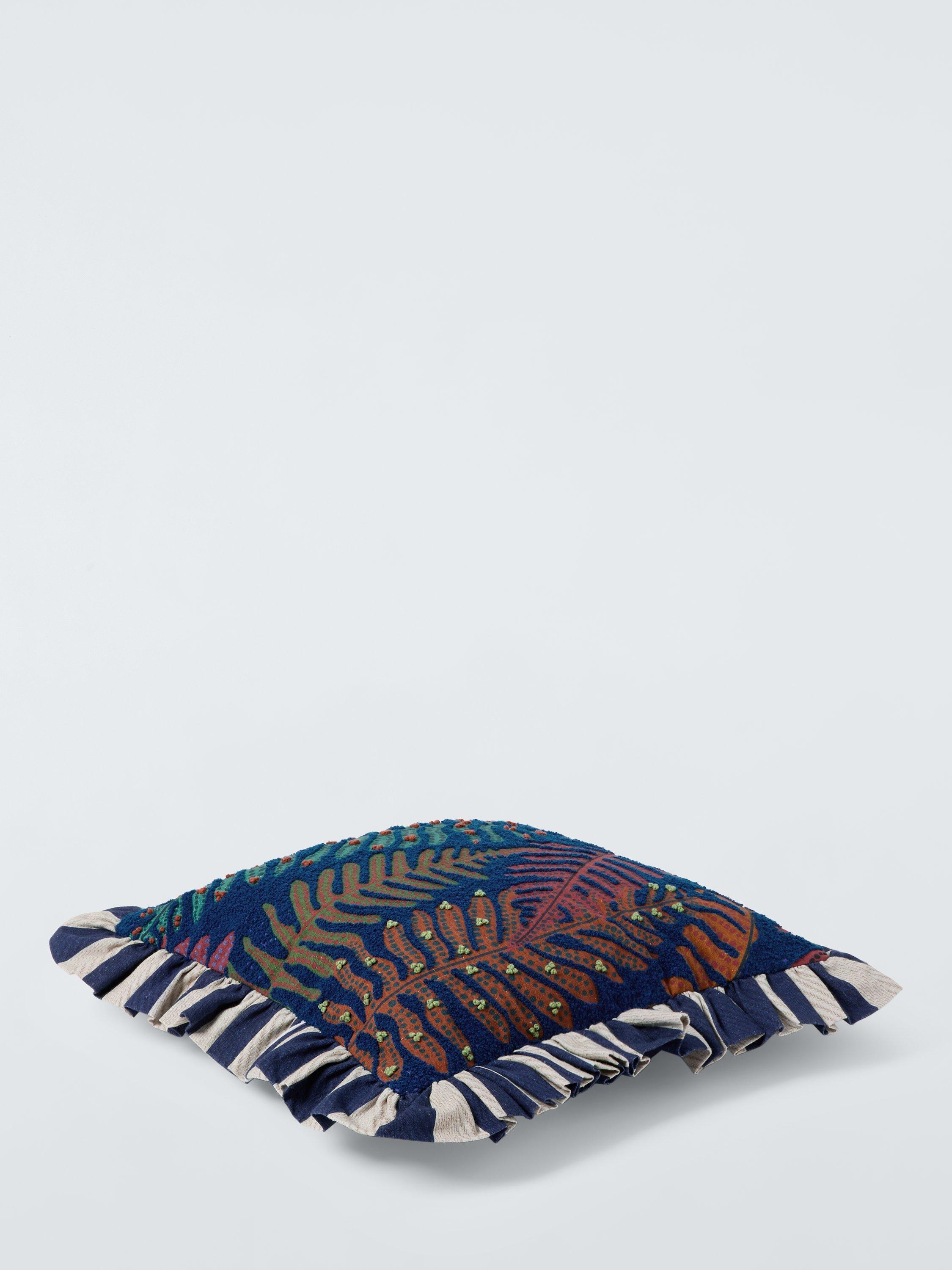 This cotton frilled cushion is both tactile and colourful and makes a playful addition to a bed or sofa.