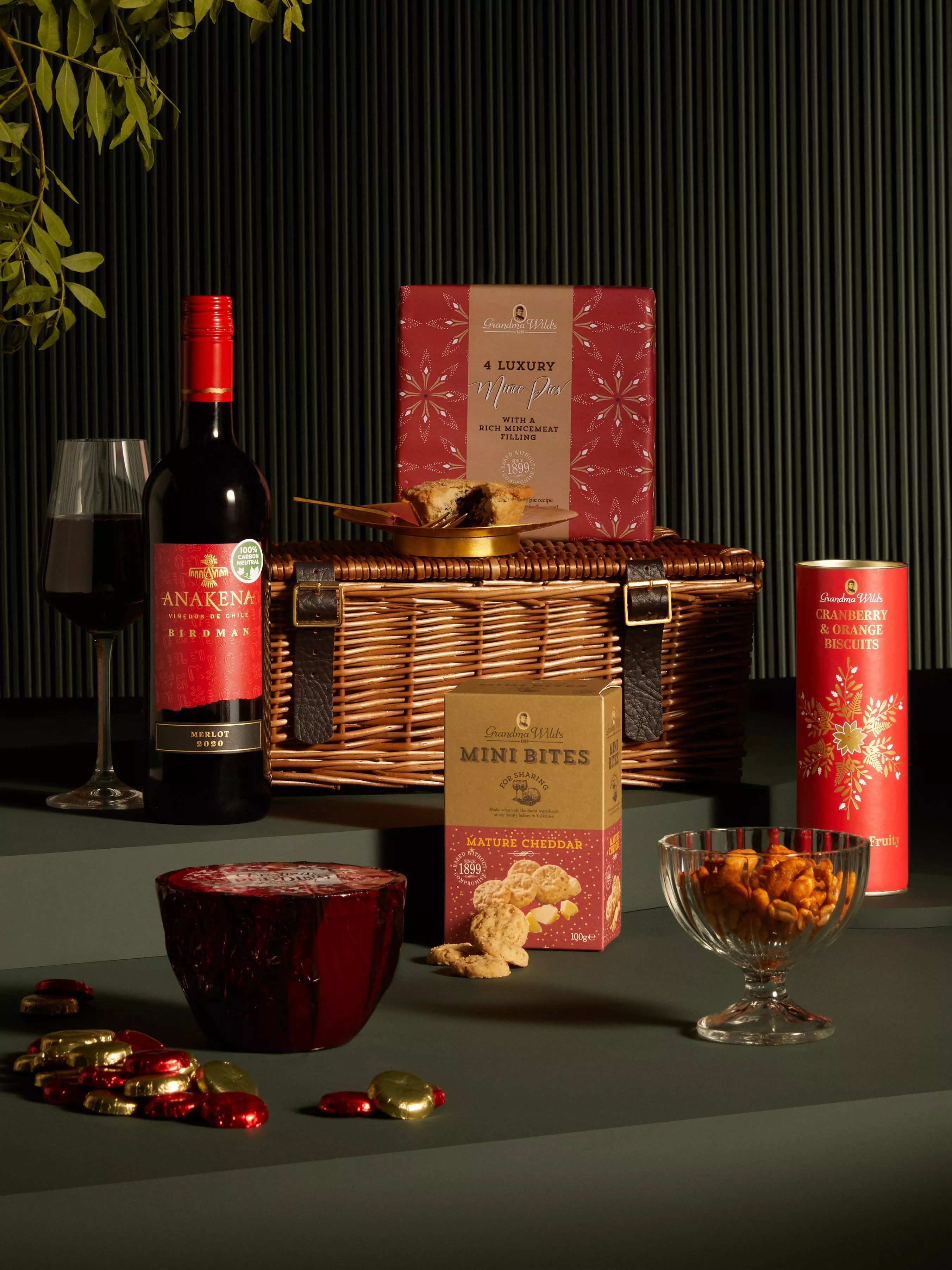 - Matthew Walker Christmas Pudding 350g Cambrook Baked Sweet Chilli Peanuts & Cashews 45g Anakena Vinedos De Chile Merlot 750ml The Secret Truffletier Foiled Milk Chocolate Pastilles 150g Grandma Wild's Alcohol Free 4 Luxury Mince Pies Grandma Wild's Cranberry & Orange Biscuits 150g Grandma Wild's Mini Bites for Sharing Mature Cheddar 100g