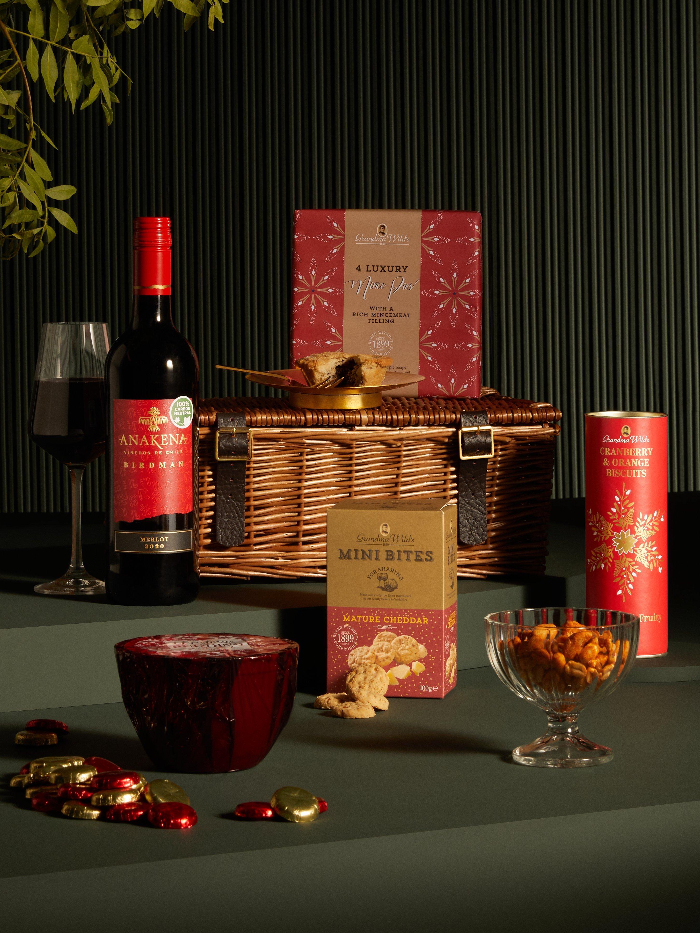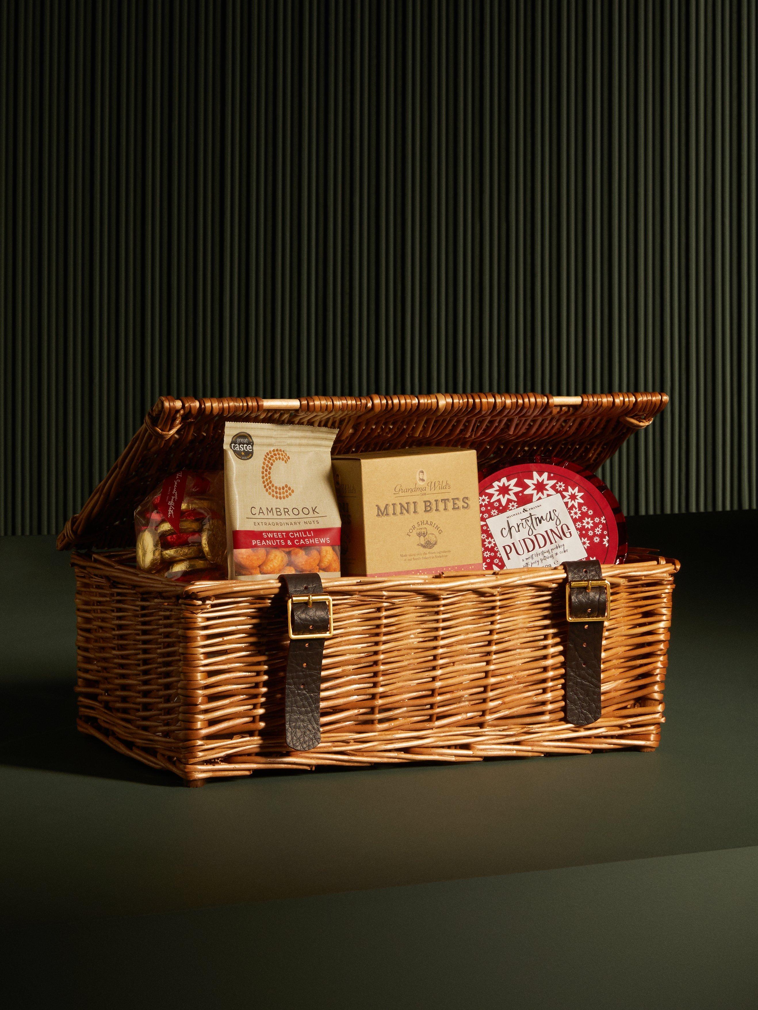 A collection of traditional Christmas favourites, all packed in a traditional hamper which can be kept and used for picnics and other outdoor adventures when summer comes.