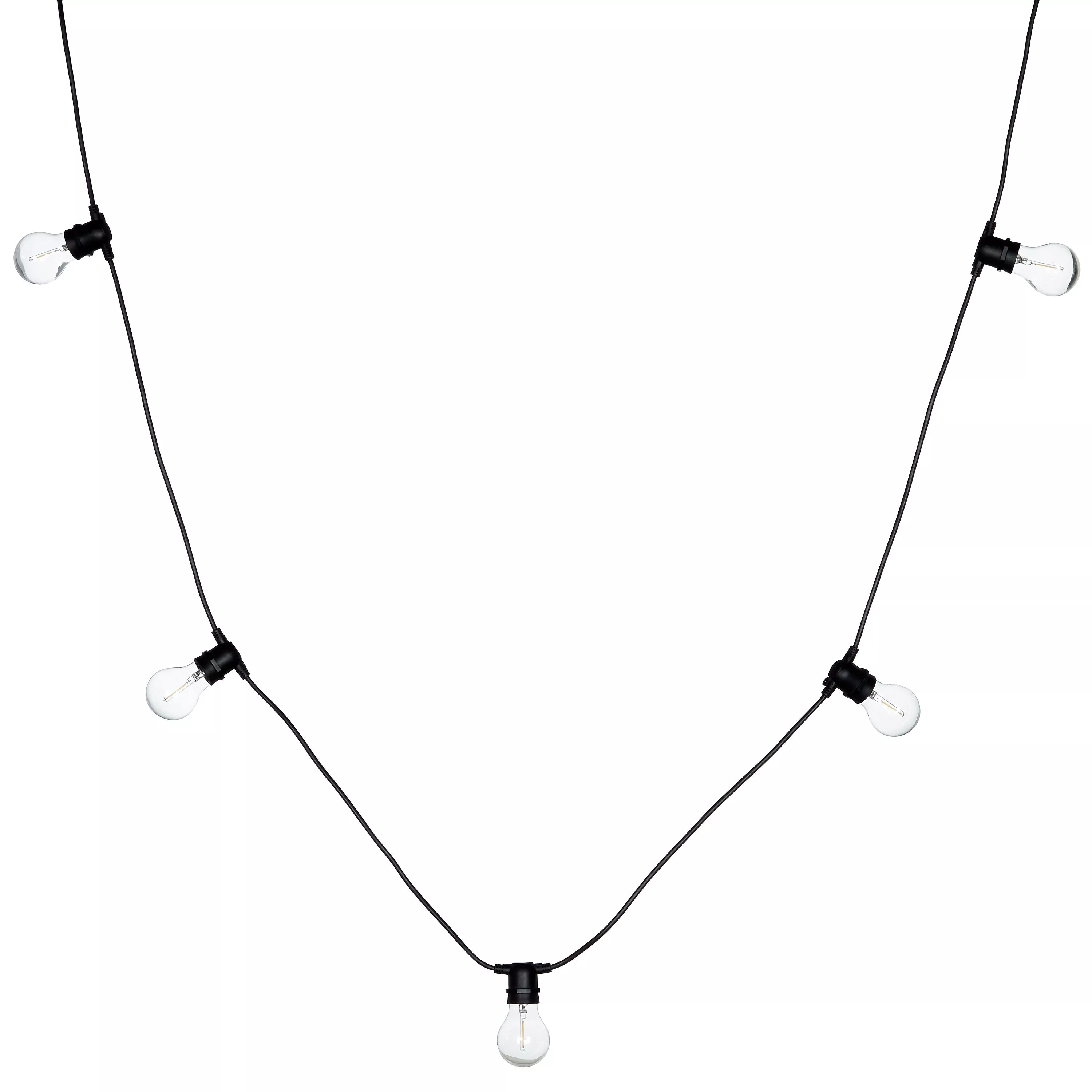 These festoon line lights will add a warm glow of light and character to both indoor and outdoor spaces, making the perfect decoration when you're entertaining. The cable length is 9.5m in total. When using the lights outside, make sure the power adaptor is kept indoors at all times.