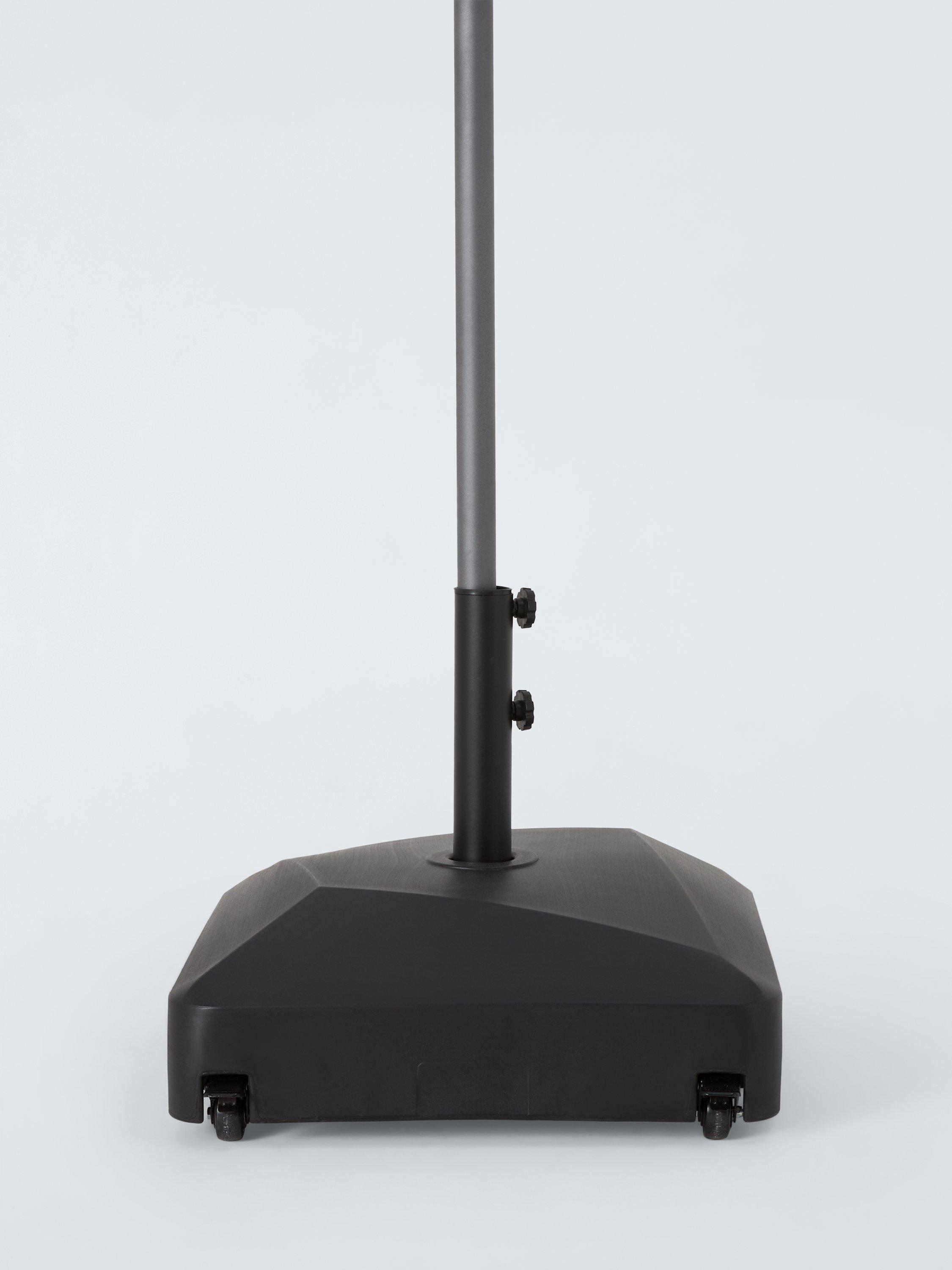 Since the base can weigh up to 43kg when filled, ensure that you are happy with your parasol's location before filling the base weight. The base has four wheels to move it into place, with two lockable wheels to secure it in location.