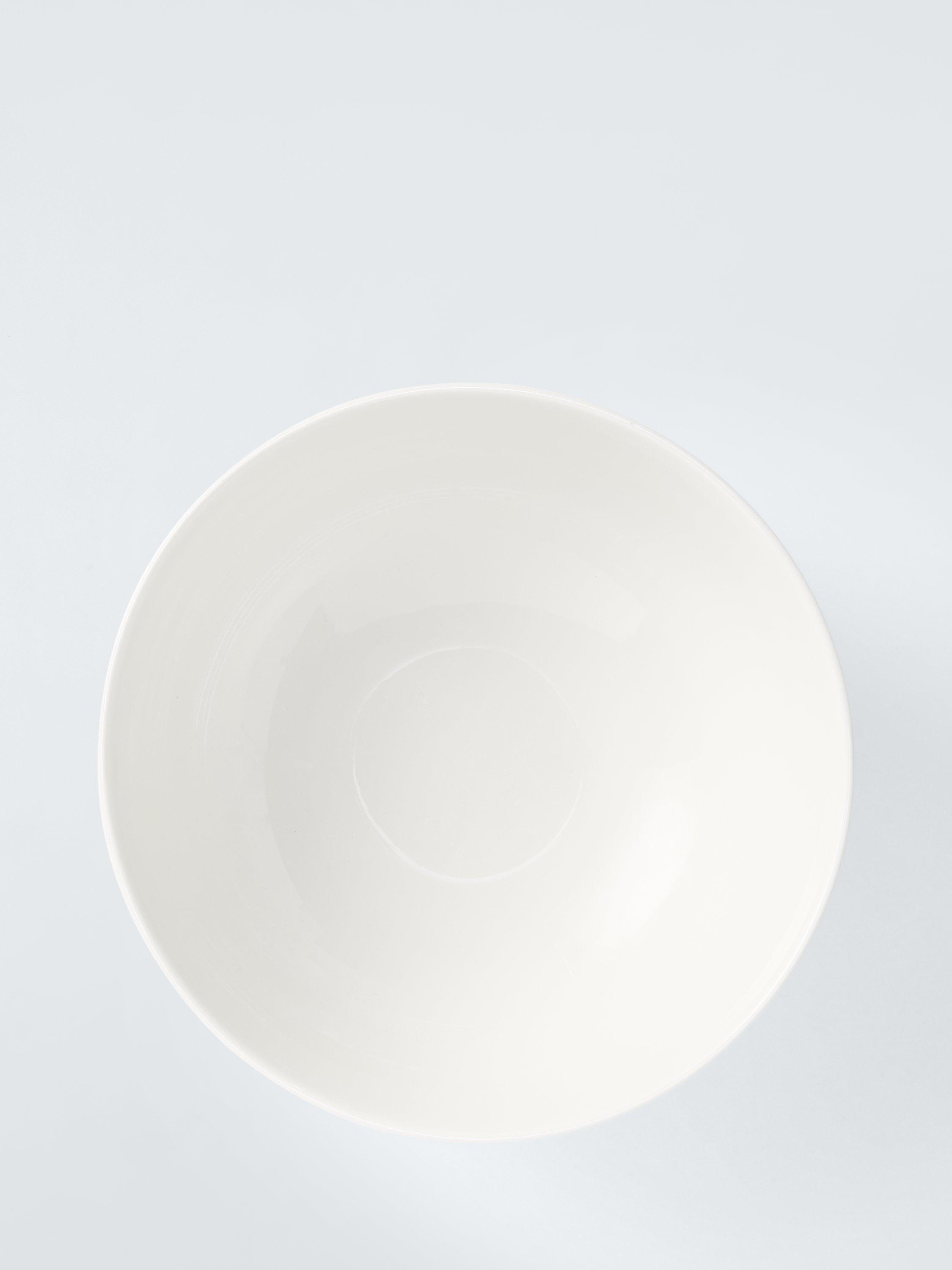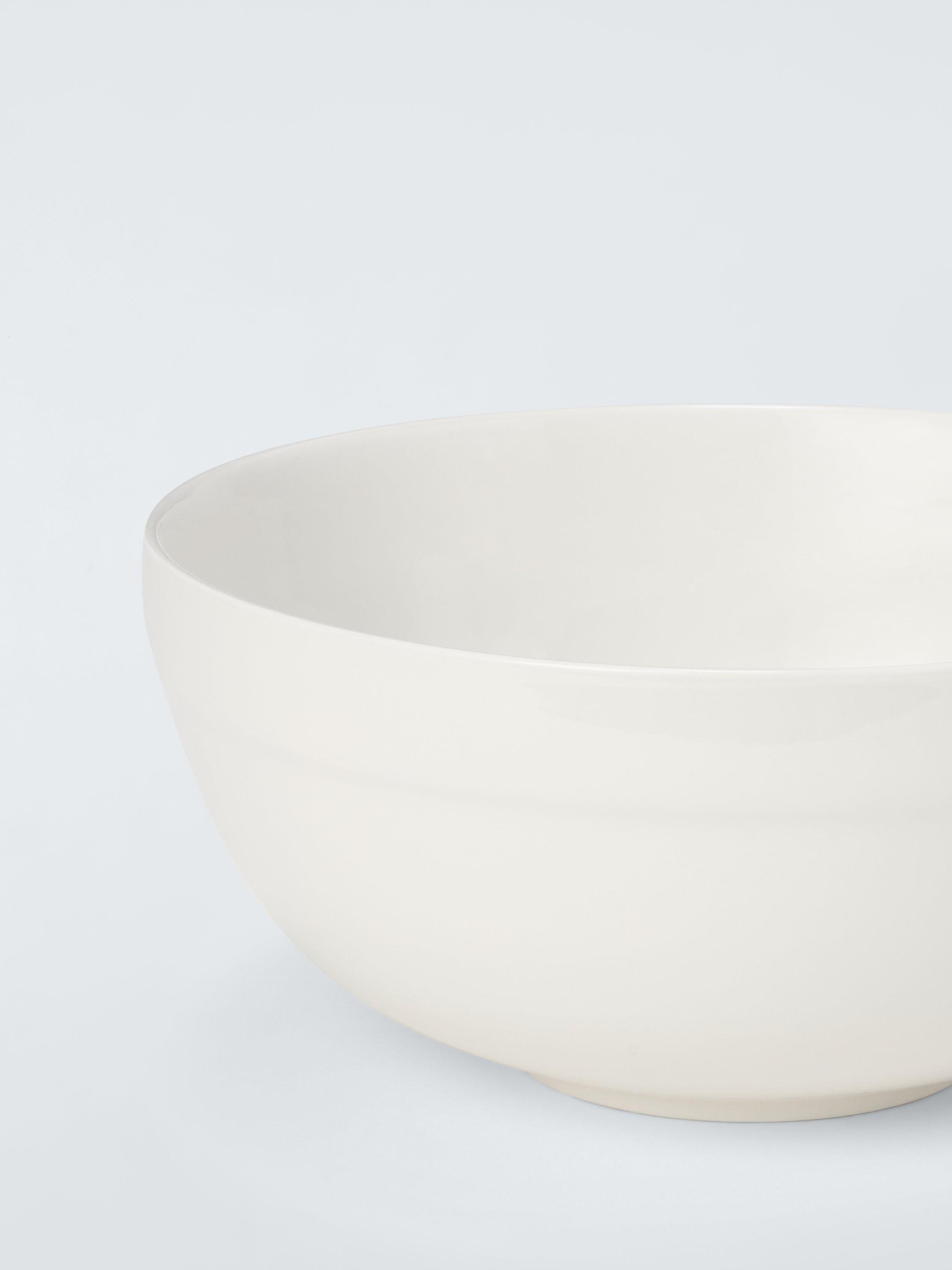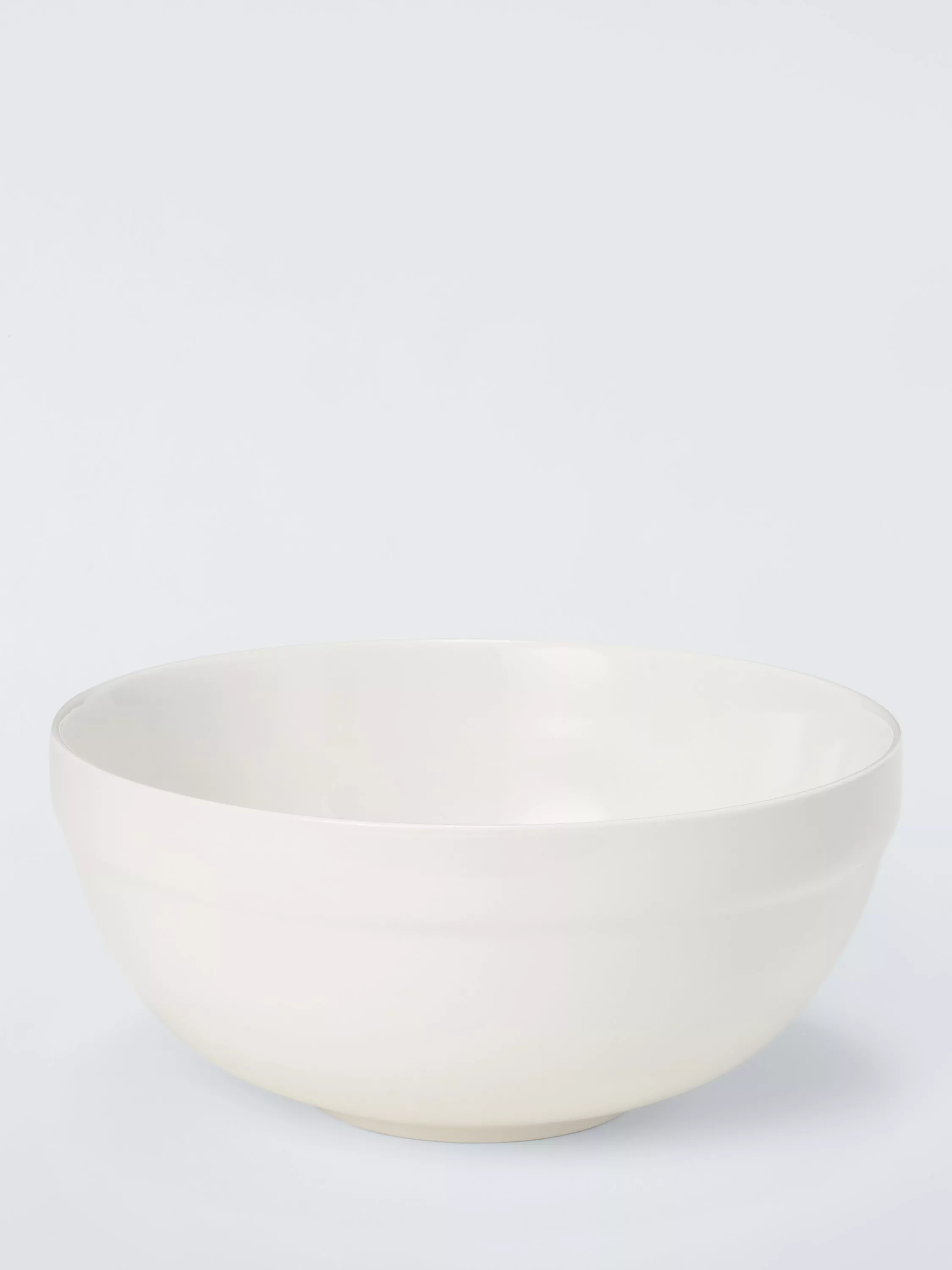 Fine china mixing bowl with a ridged top for easy holding. Dishwasher and microwave-safe for everyday use.