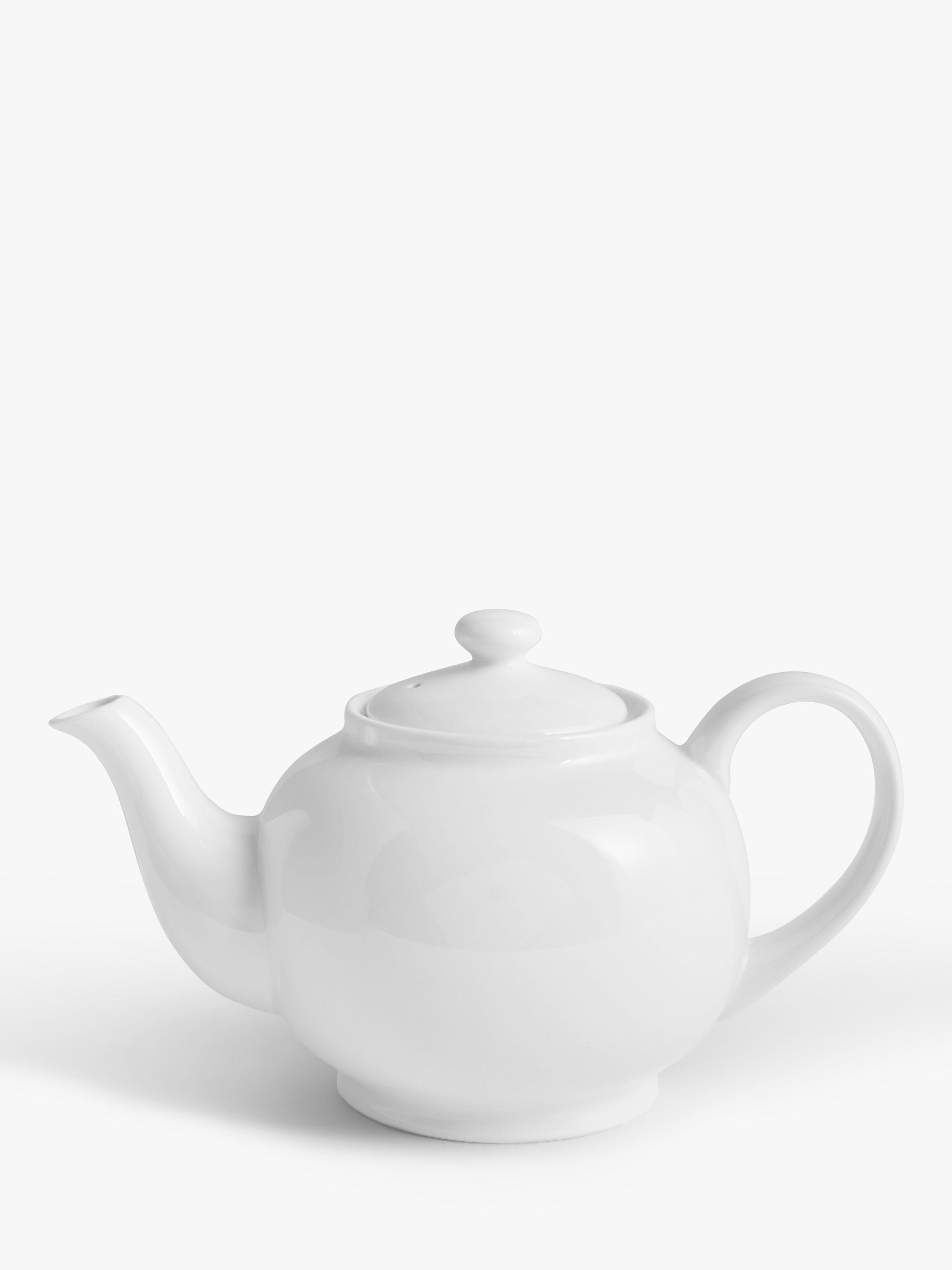 A classic teapot for a proper brew. Made of fine china, this one is dishwasher and microwave safe for modern-day use.
