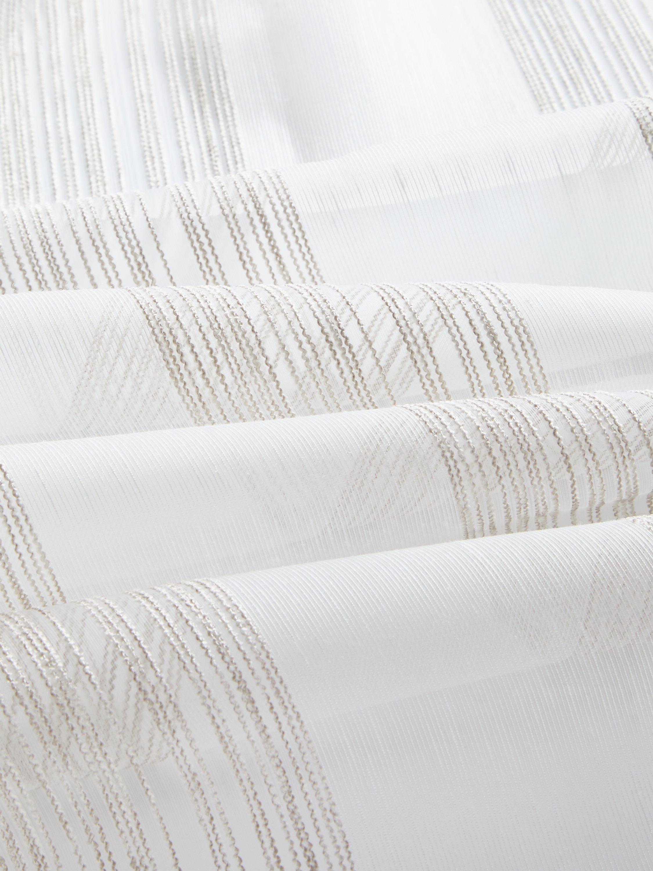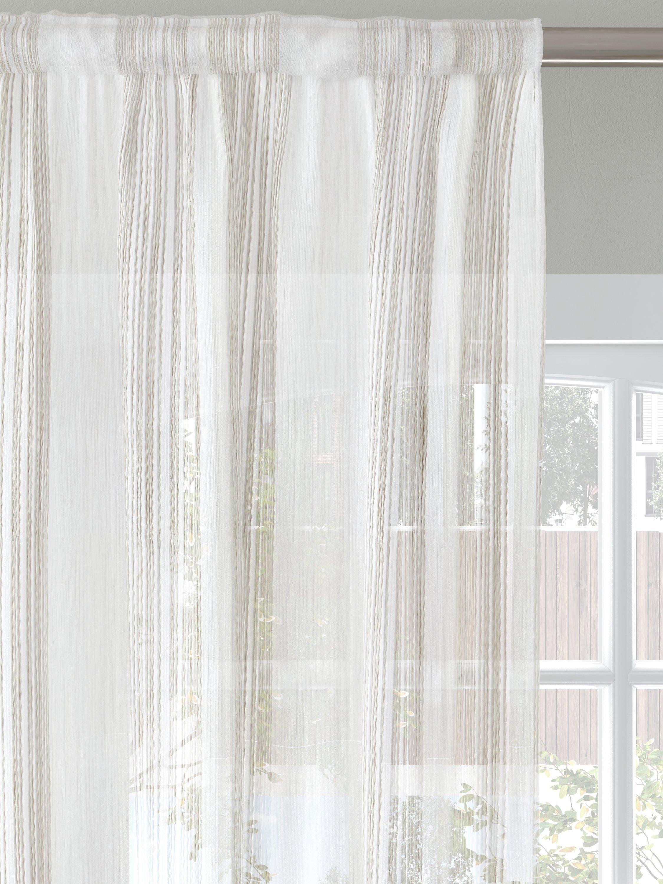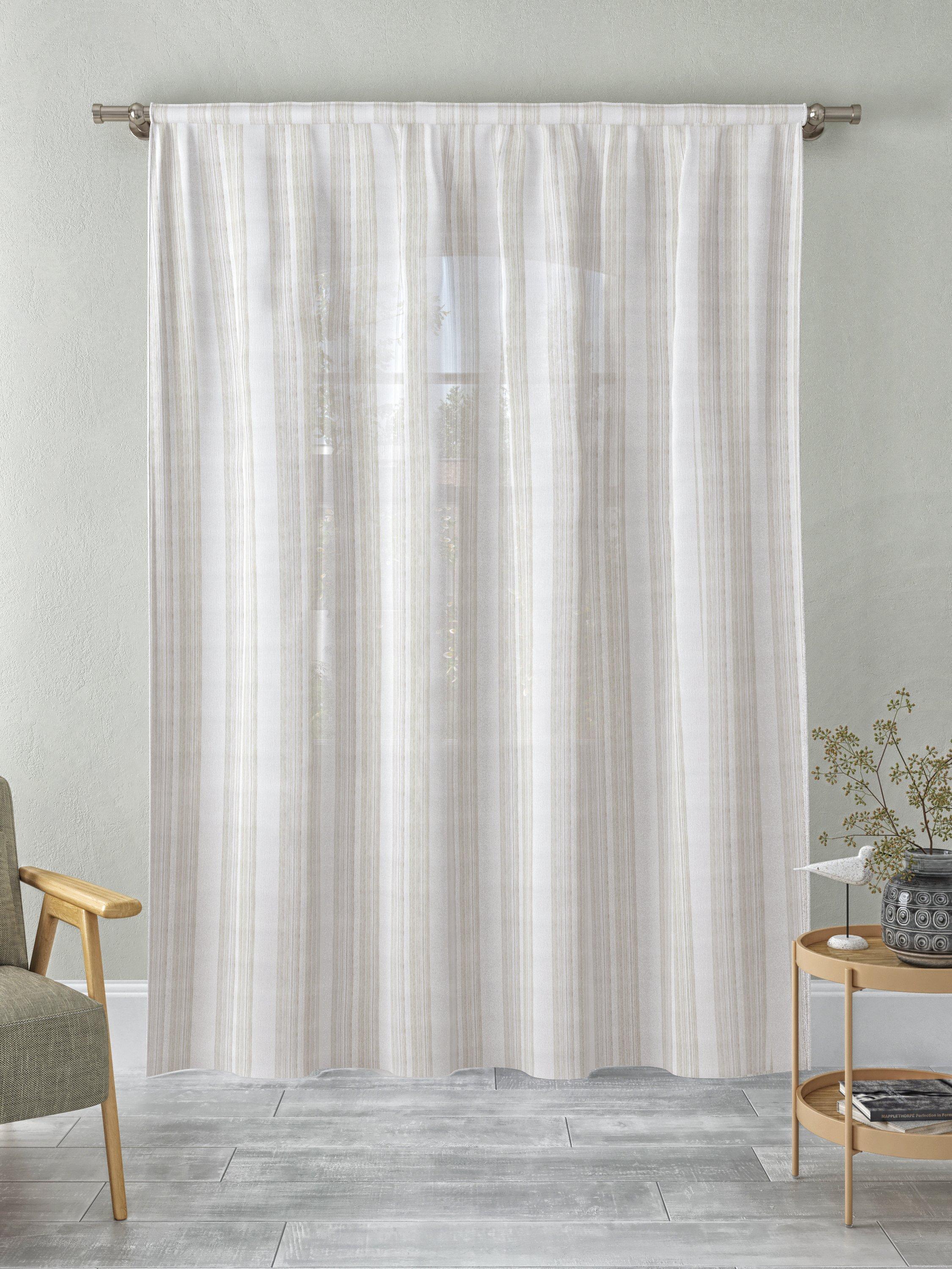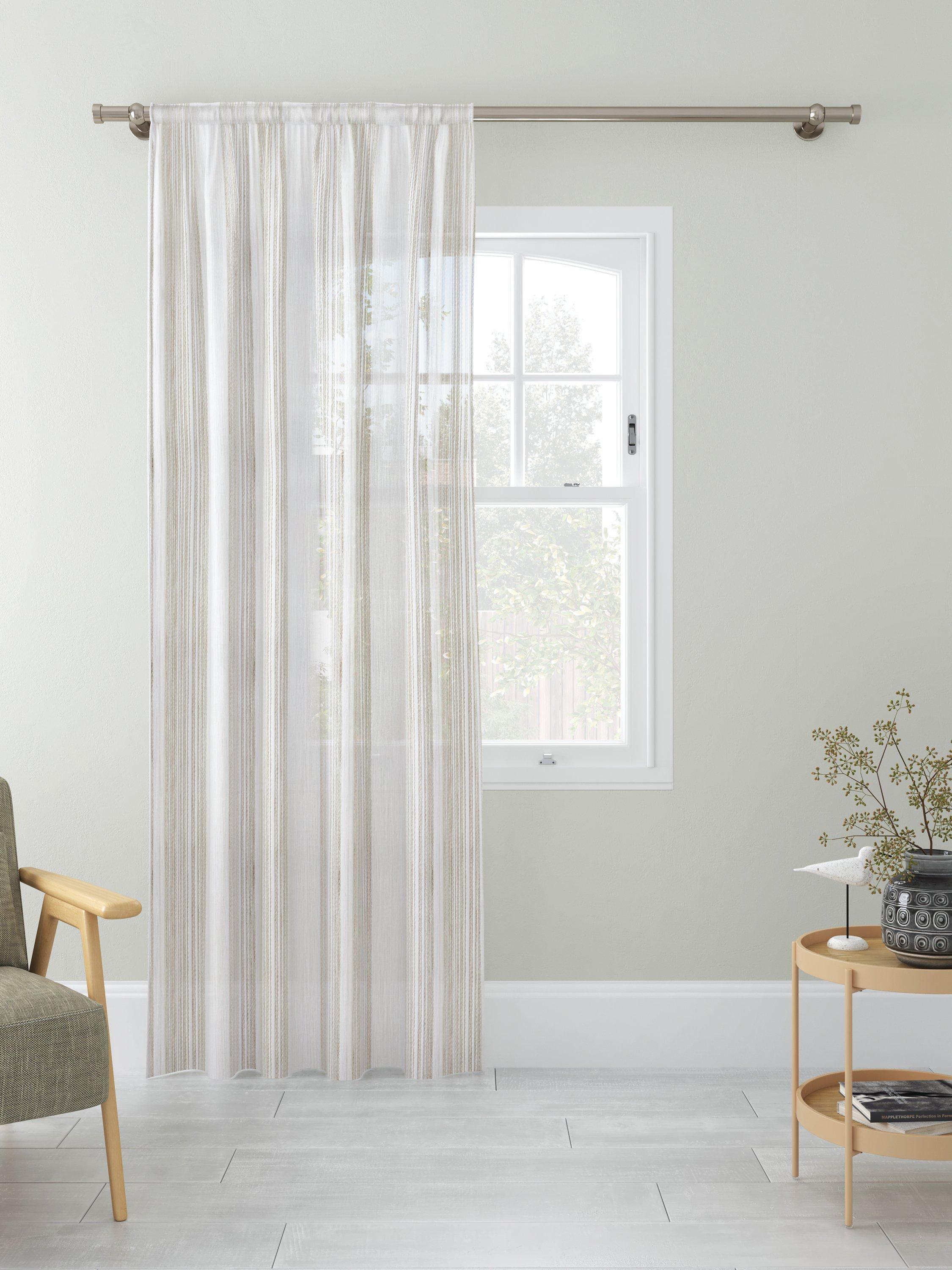 A voile fabric with fine stripe design. Use to make a sheer curtain and add some privacy to your room.