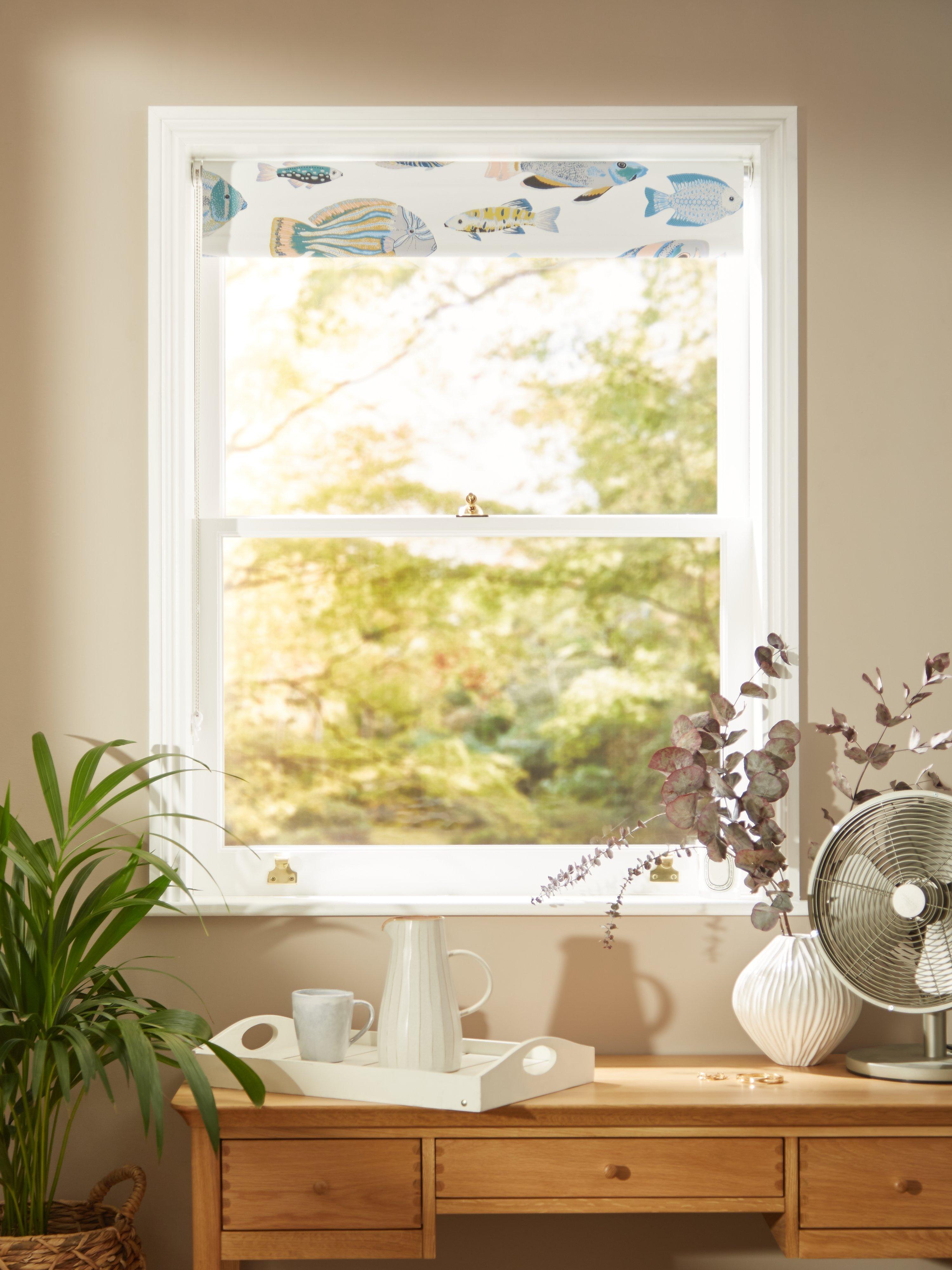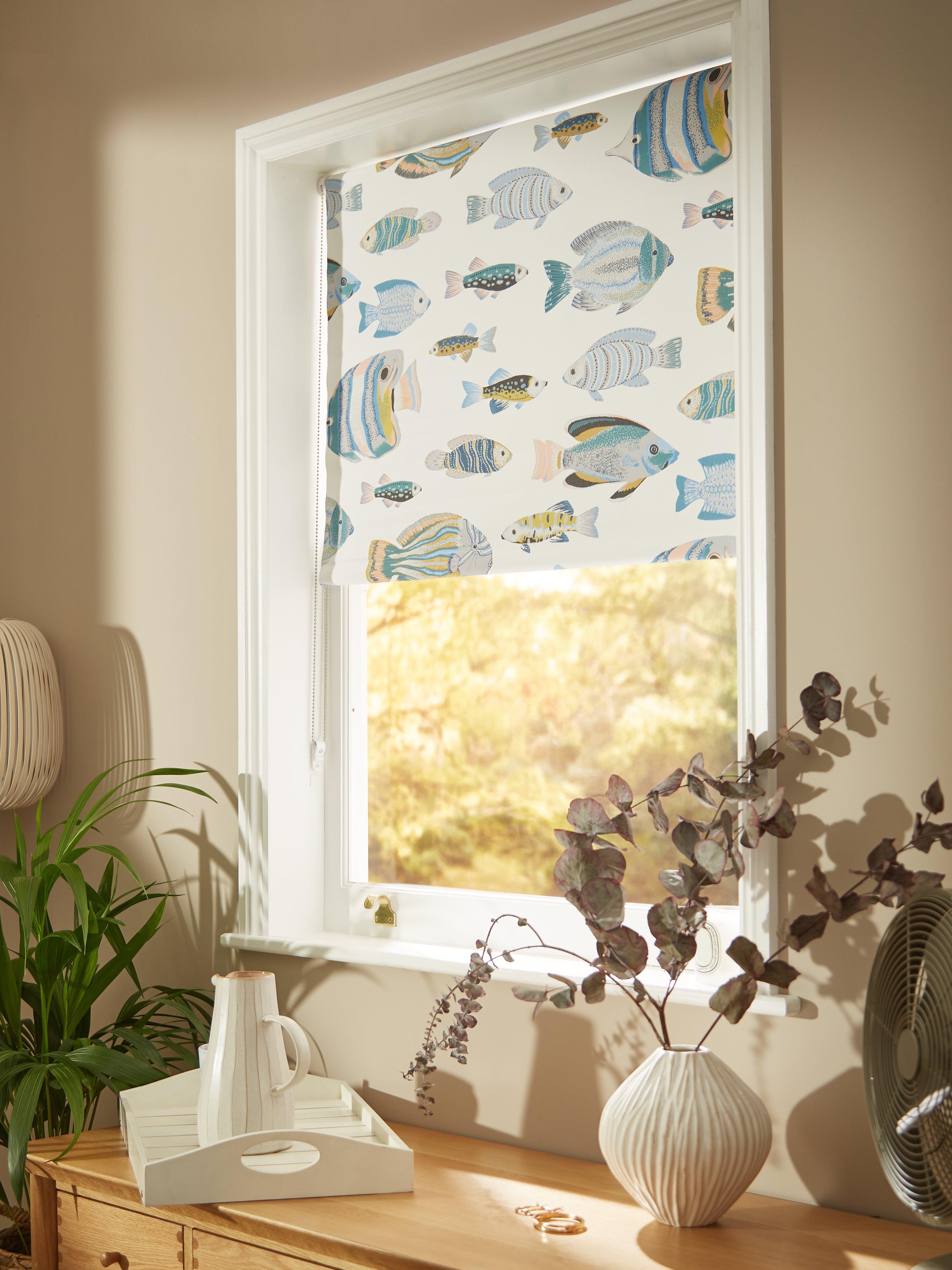 Featuring a school of fish, lazily swimming across the fabric, this blackout blind eliminates light and gives complete privacy. You can get a sound night’s sleep and not be disturbed by the early rising sun in the summer months.