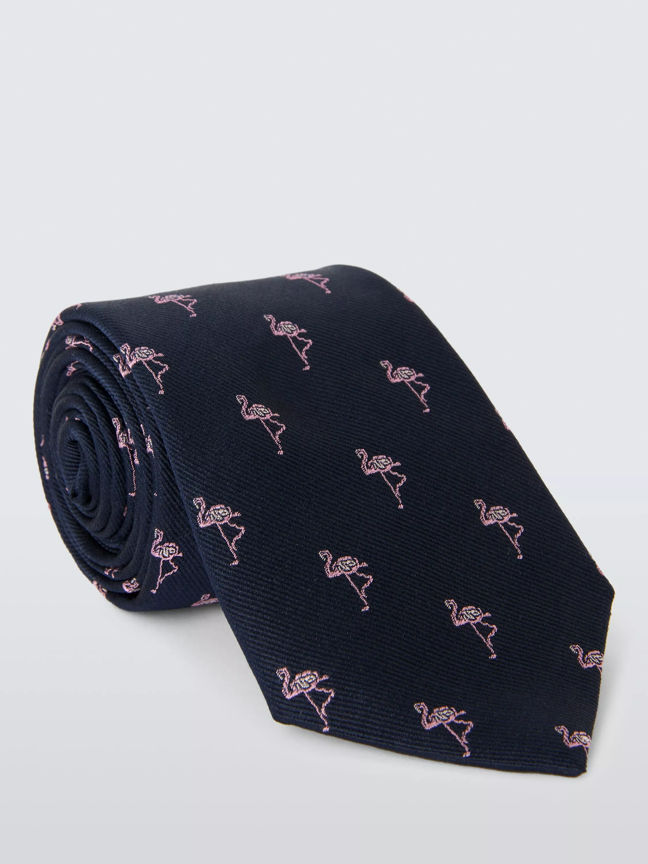 Character meets craftsmanship in this silk tie, where a flamingo motif brings a playful touch to traditional tailoring. Woven from pure, high-quality silk, it has a luxurious handle and a natural sheen.