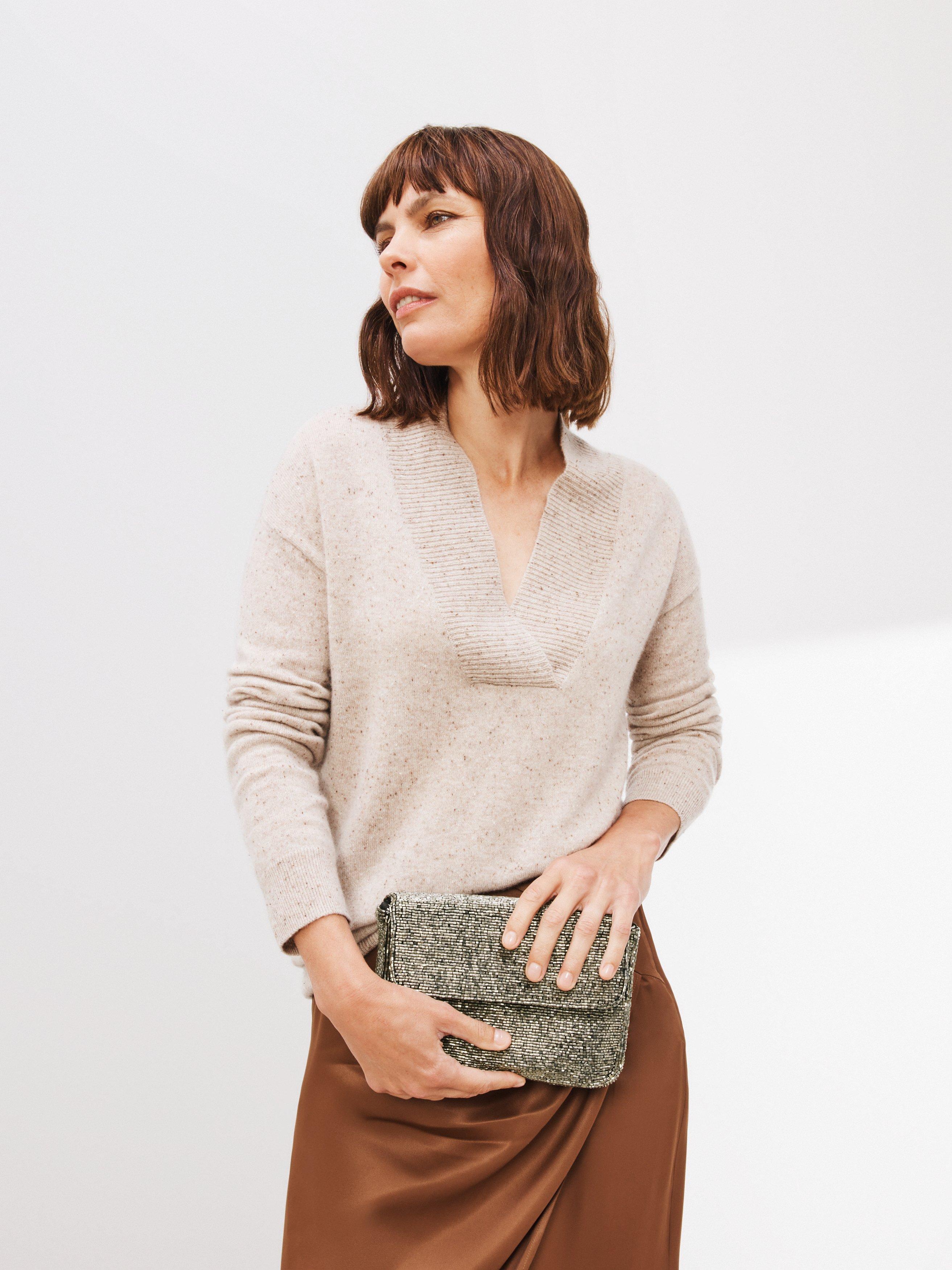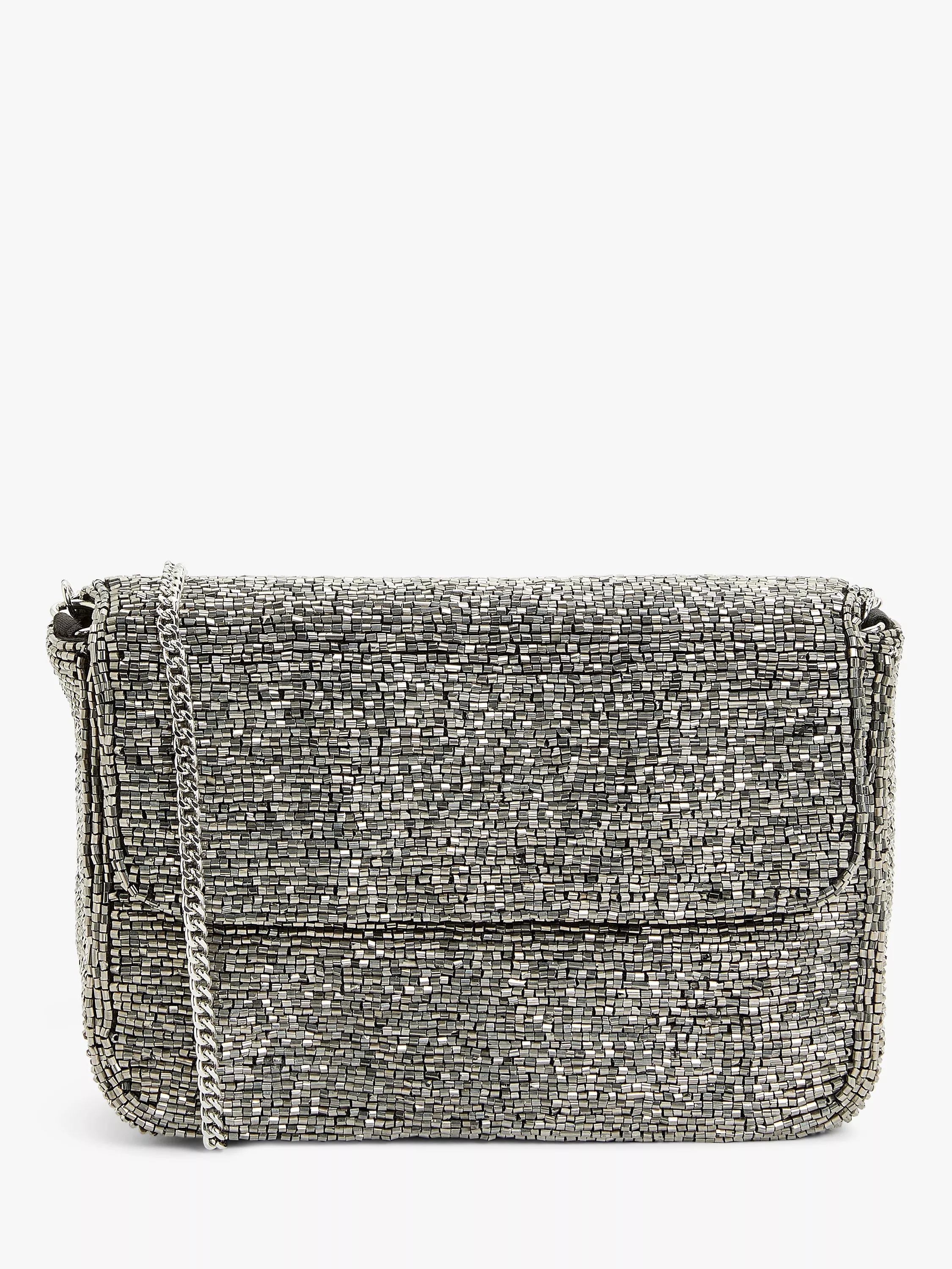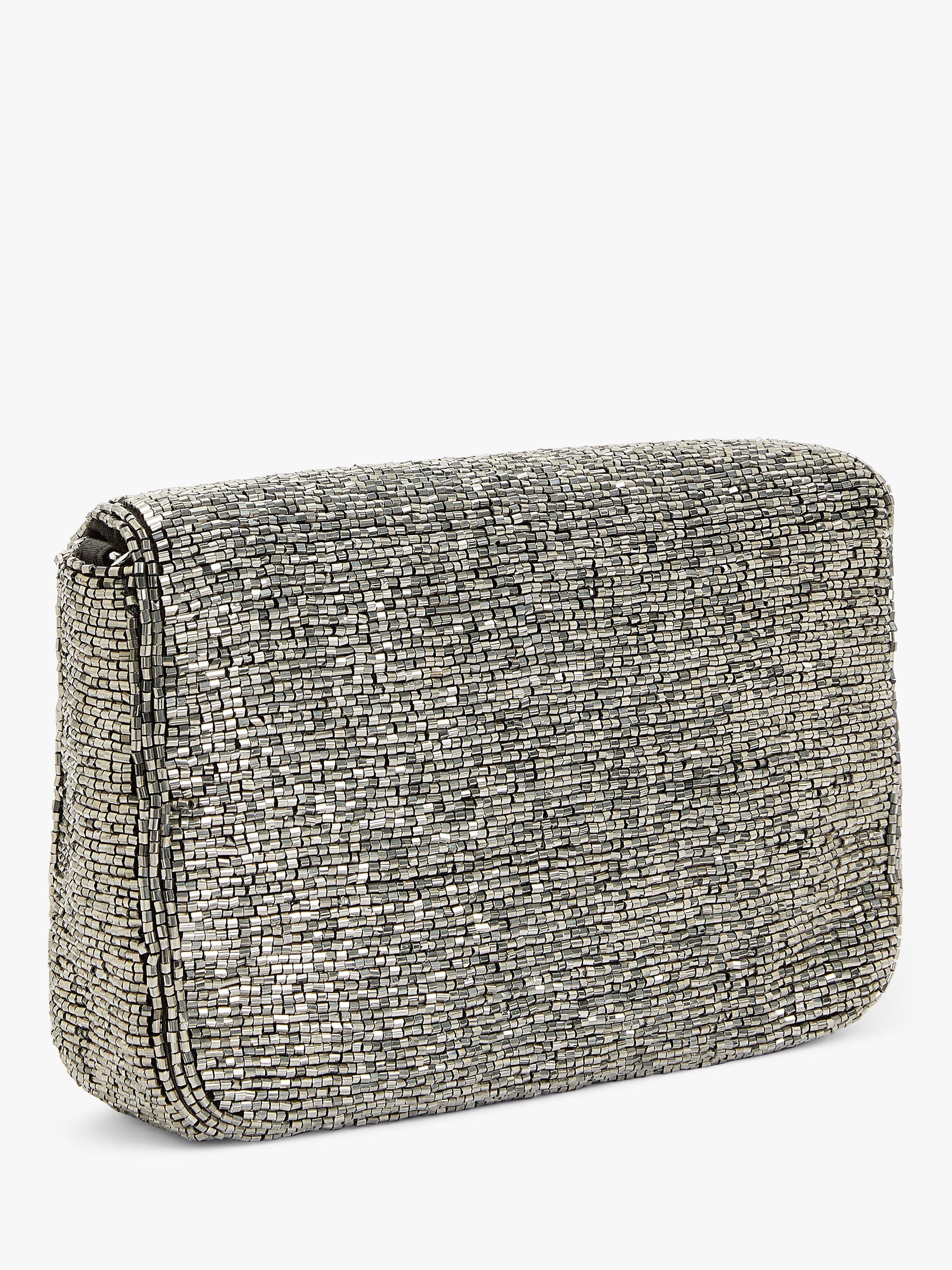 John LewisFlap Over Beaded Clutch Bag, Silver