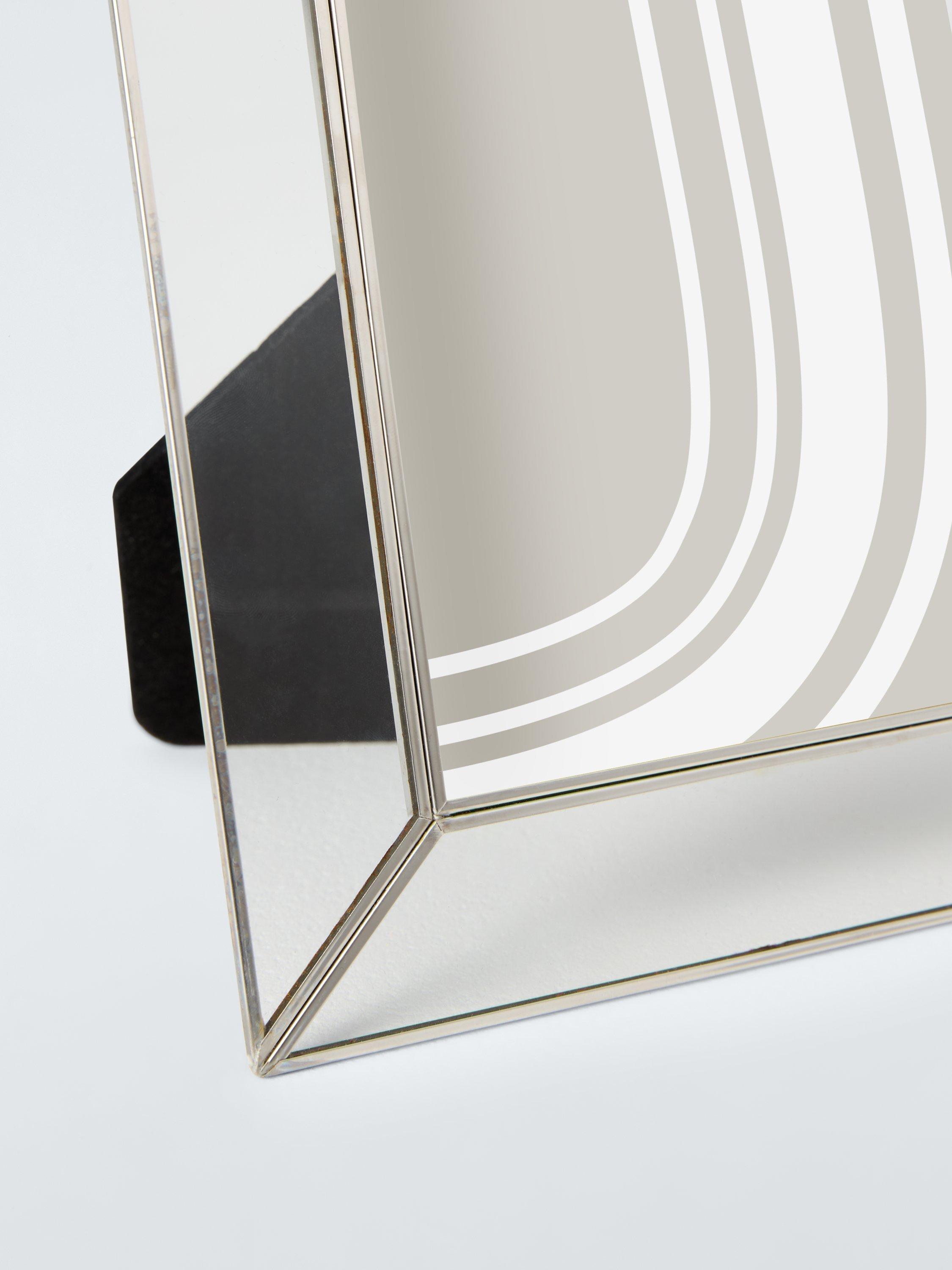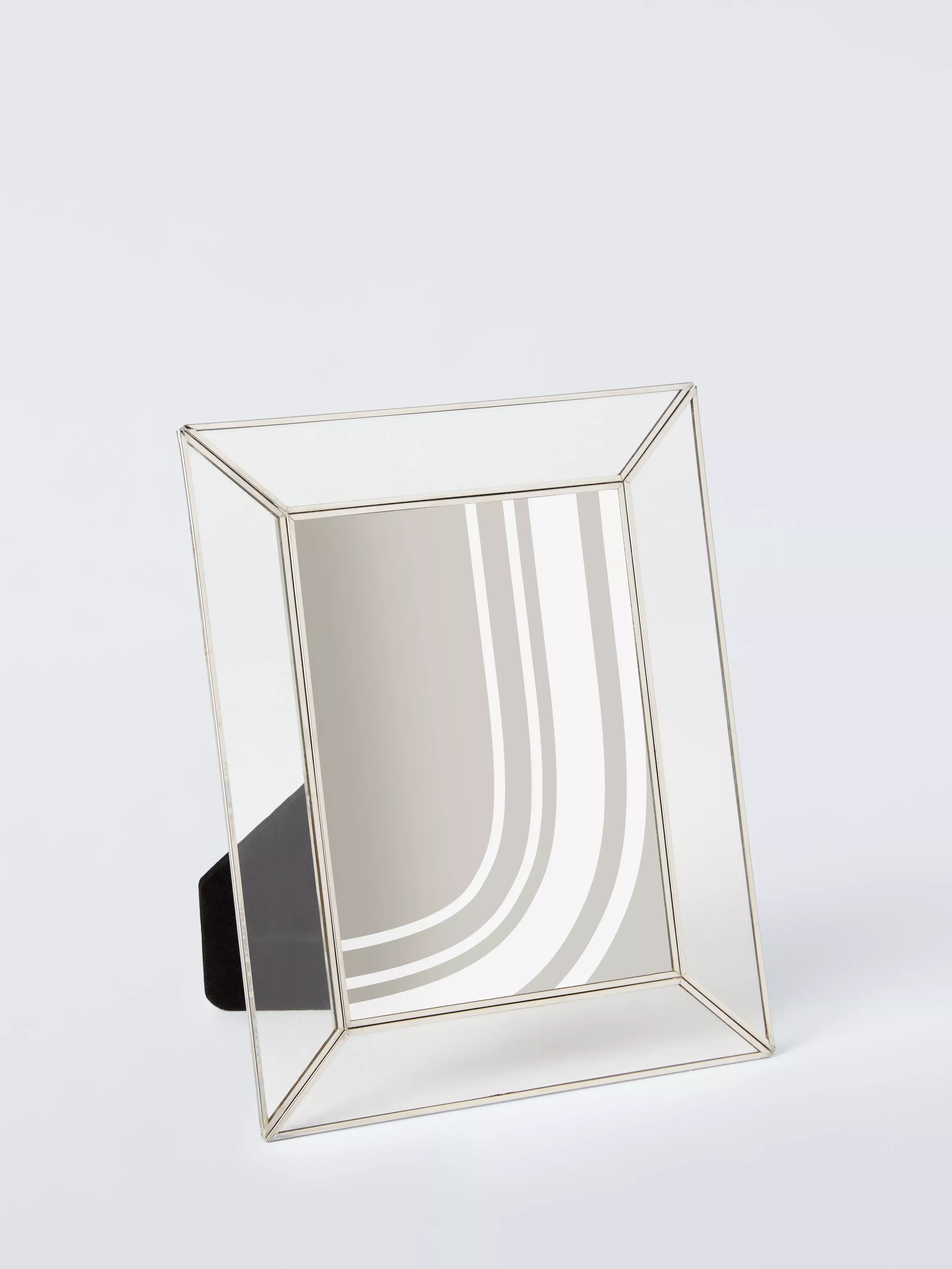 A flat glass border adds texture to this photo frame, finished with silver-tone edging. Display freestanding, vertically or horizontally, using the soft velvet-covered stand that's kind to furniture surfaces.