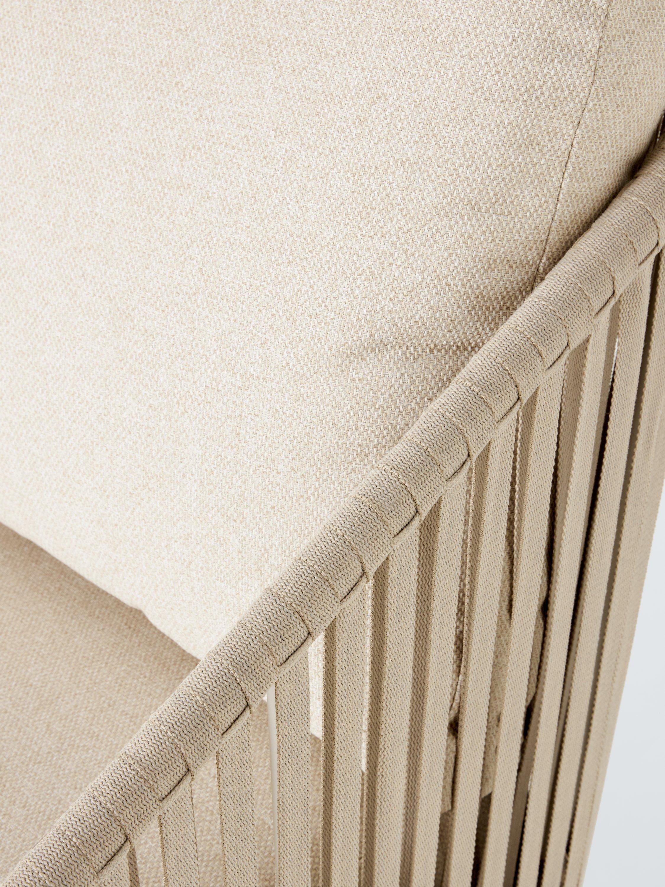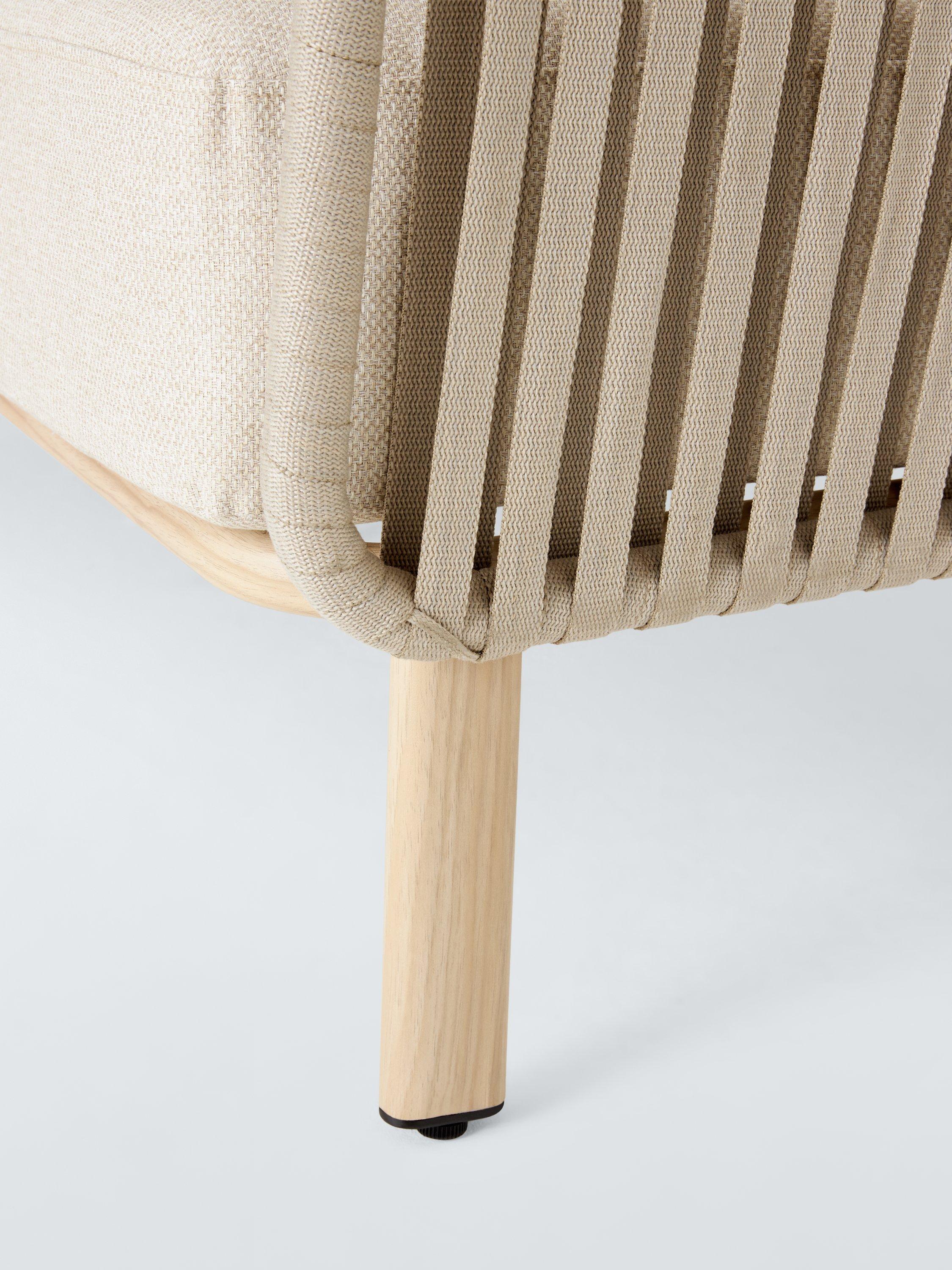 A contemporary design, our Flat Rope Weave furniture is made with an all-weather poly rope weave on robust yet lightweight wood-effect aluminium frames. This comfortable design includes sumptuous and shower-resistant seat and backrest cushions.
