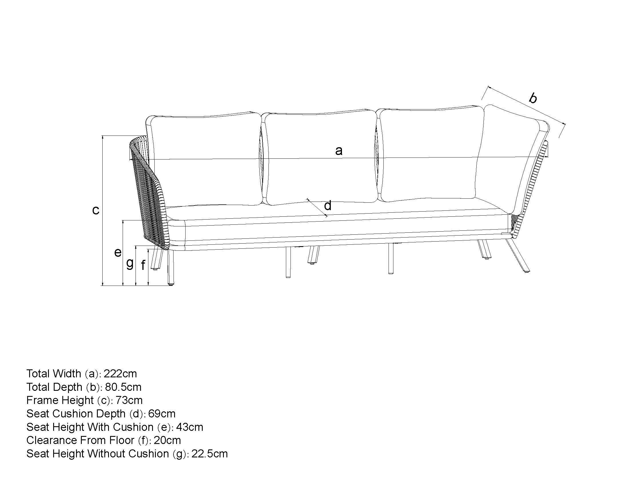 - 3-seater Sofa:H73 x W222 x D80.5cmDouble Sofa: H73 x W137 x D80.5cm