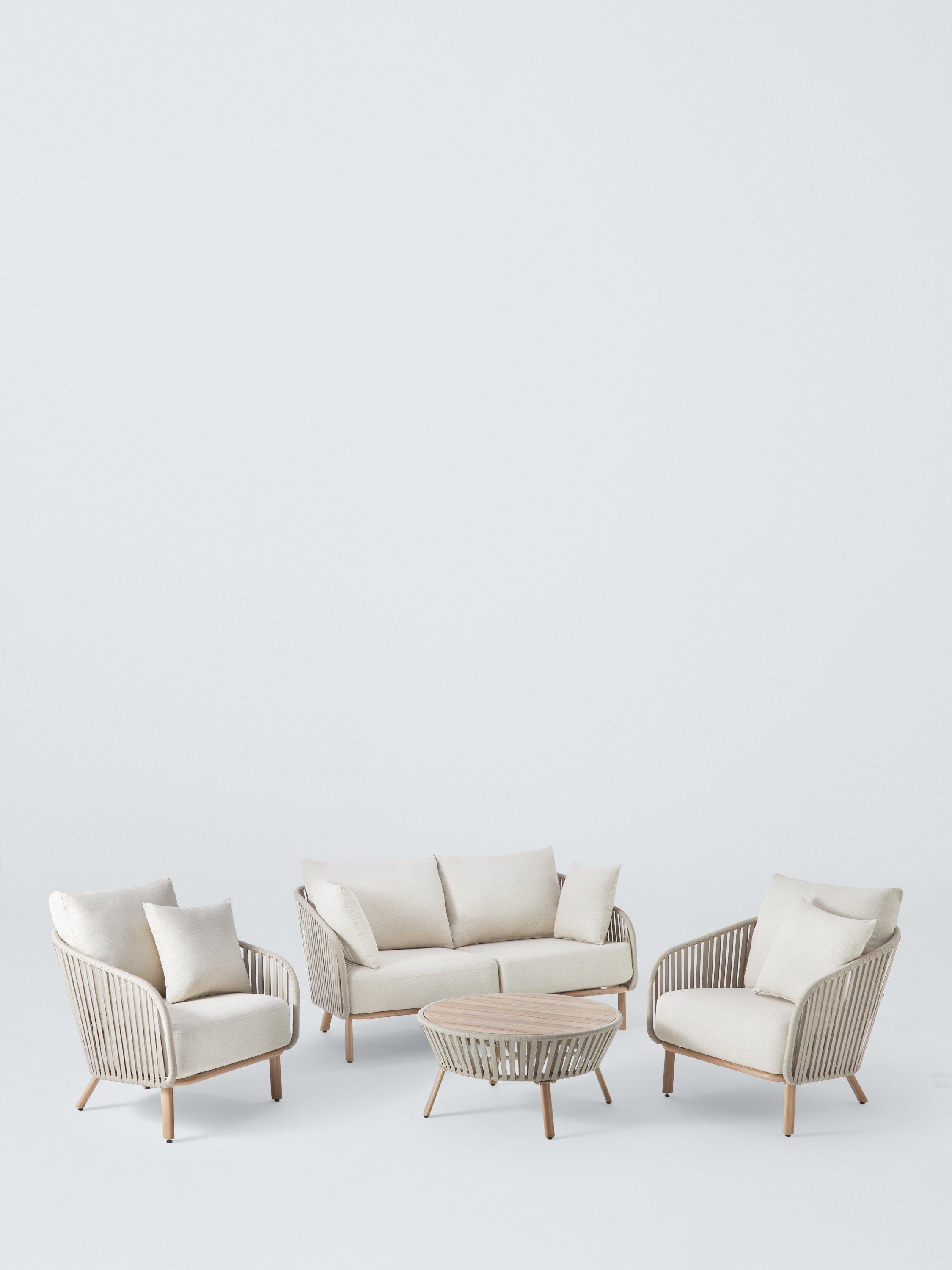 Our Flat Rope Weave furniture is made with an all-weather poly rope weave on robust yet lightweight wood-effect aluminium frames.