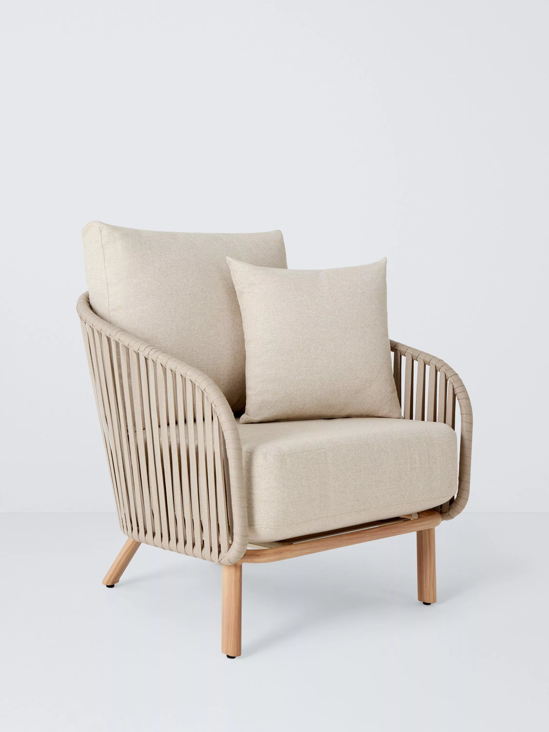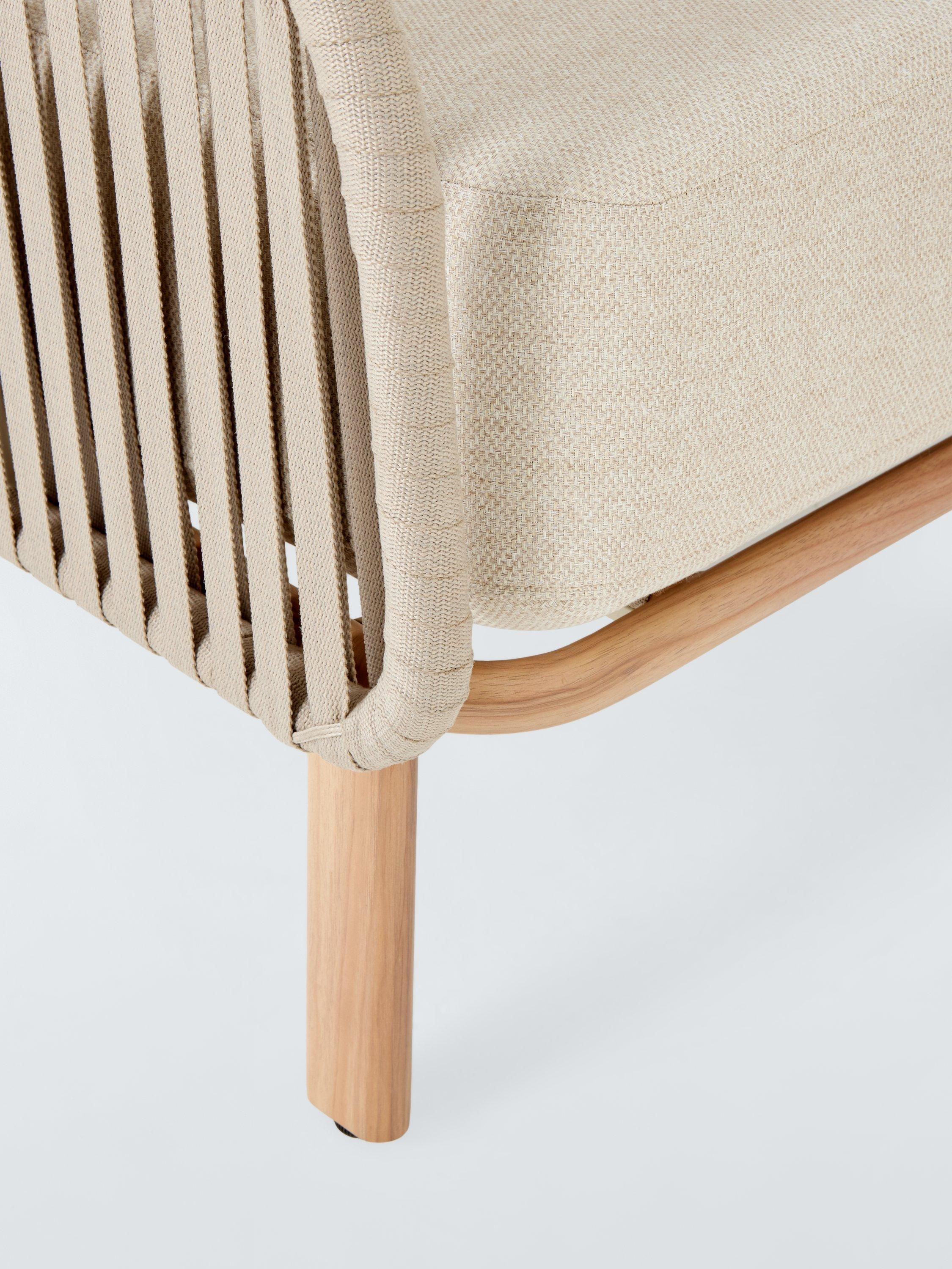 A contemporary design, our Flat Rope Weave furniture is made with an all-weather poly rope weave on robust yet lightweight wood-effect aluminium frames. This comfortable design includes sumptuous and shower-resistant seat and backrest cushions.