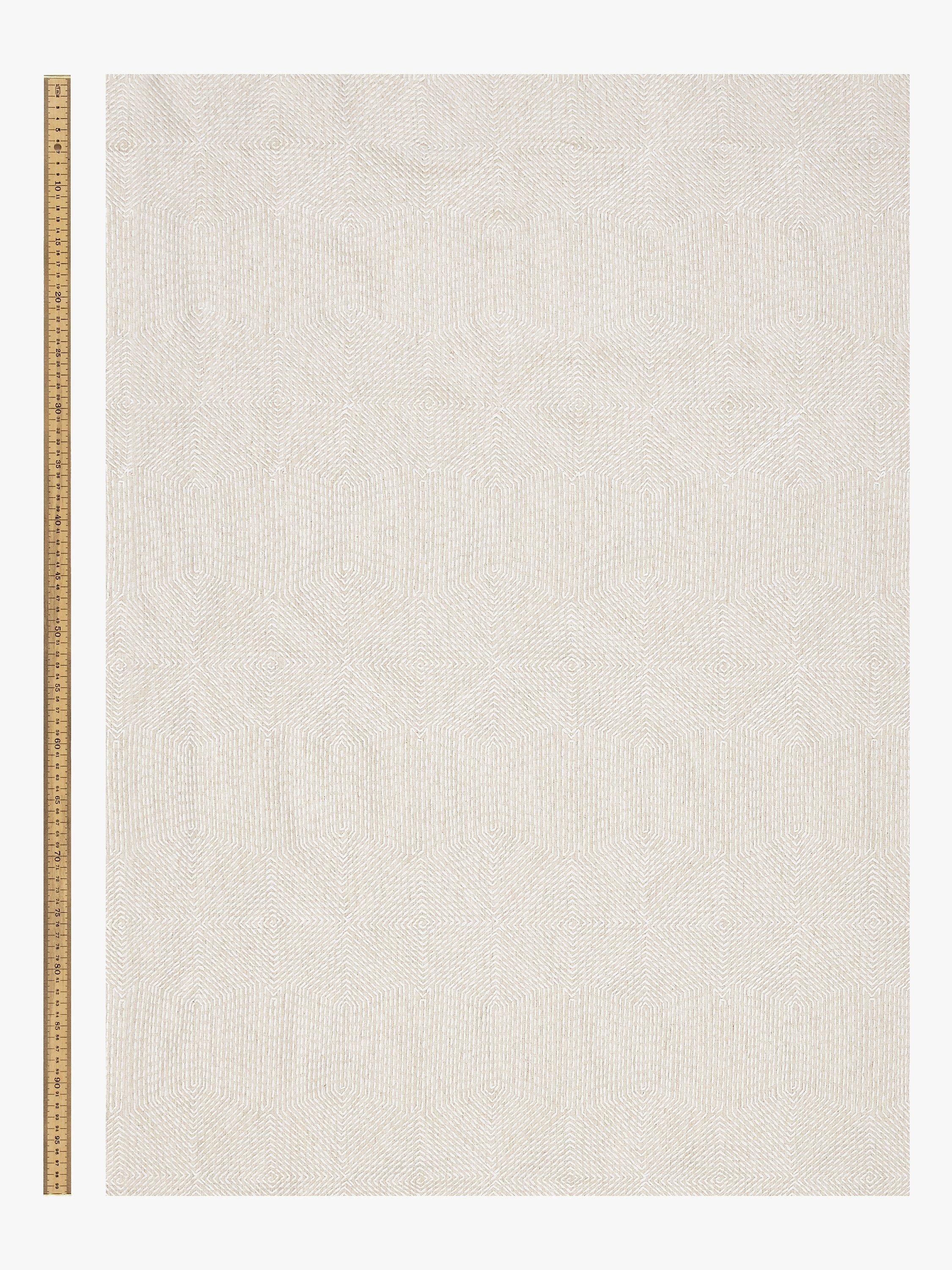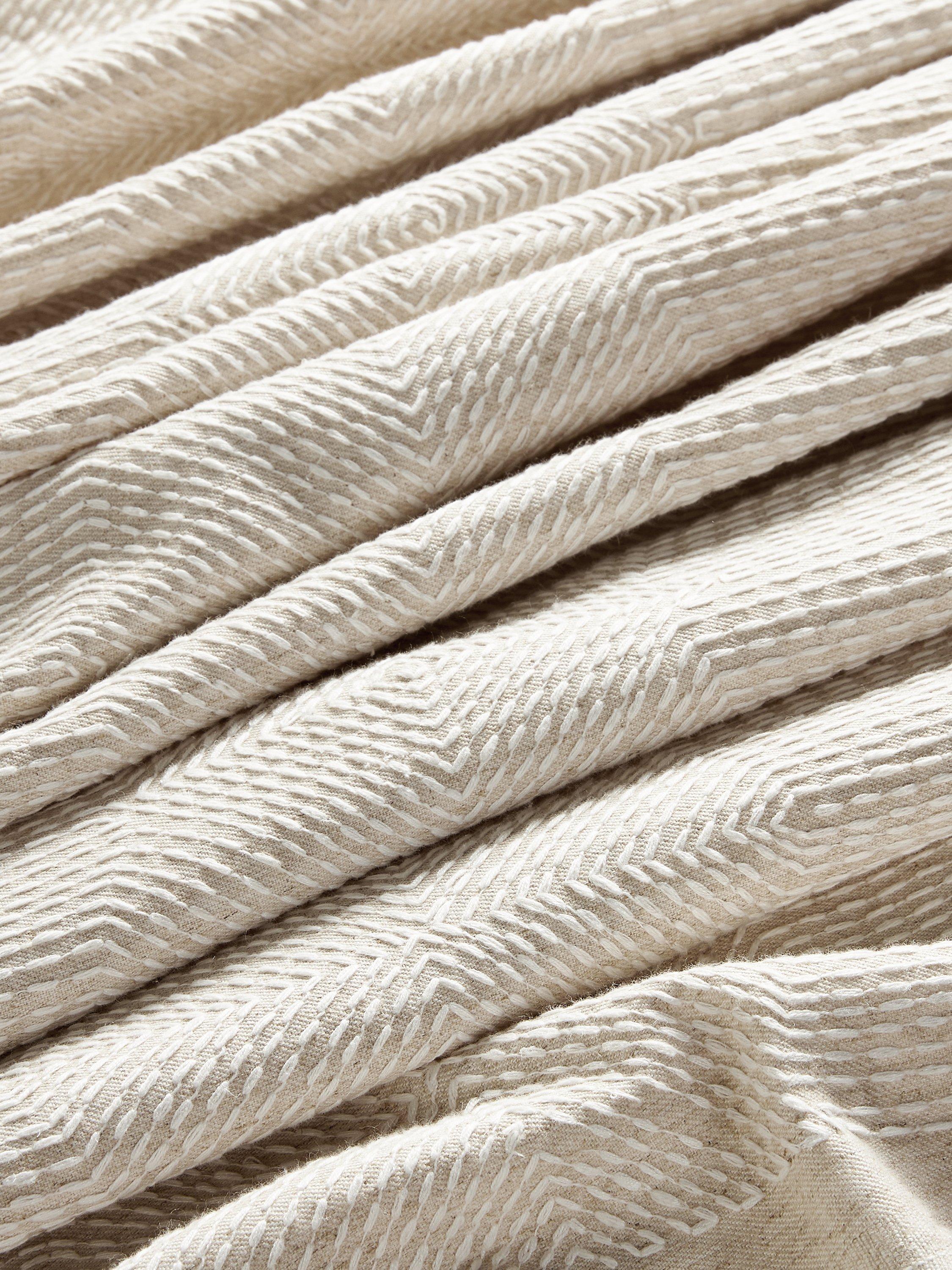Our Flax Embroidery fabric adds subtle texture with its geometric running stitch design.