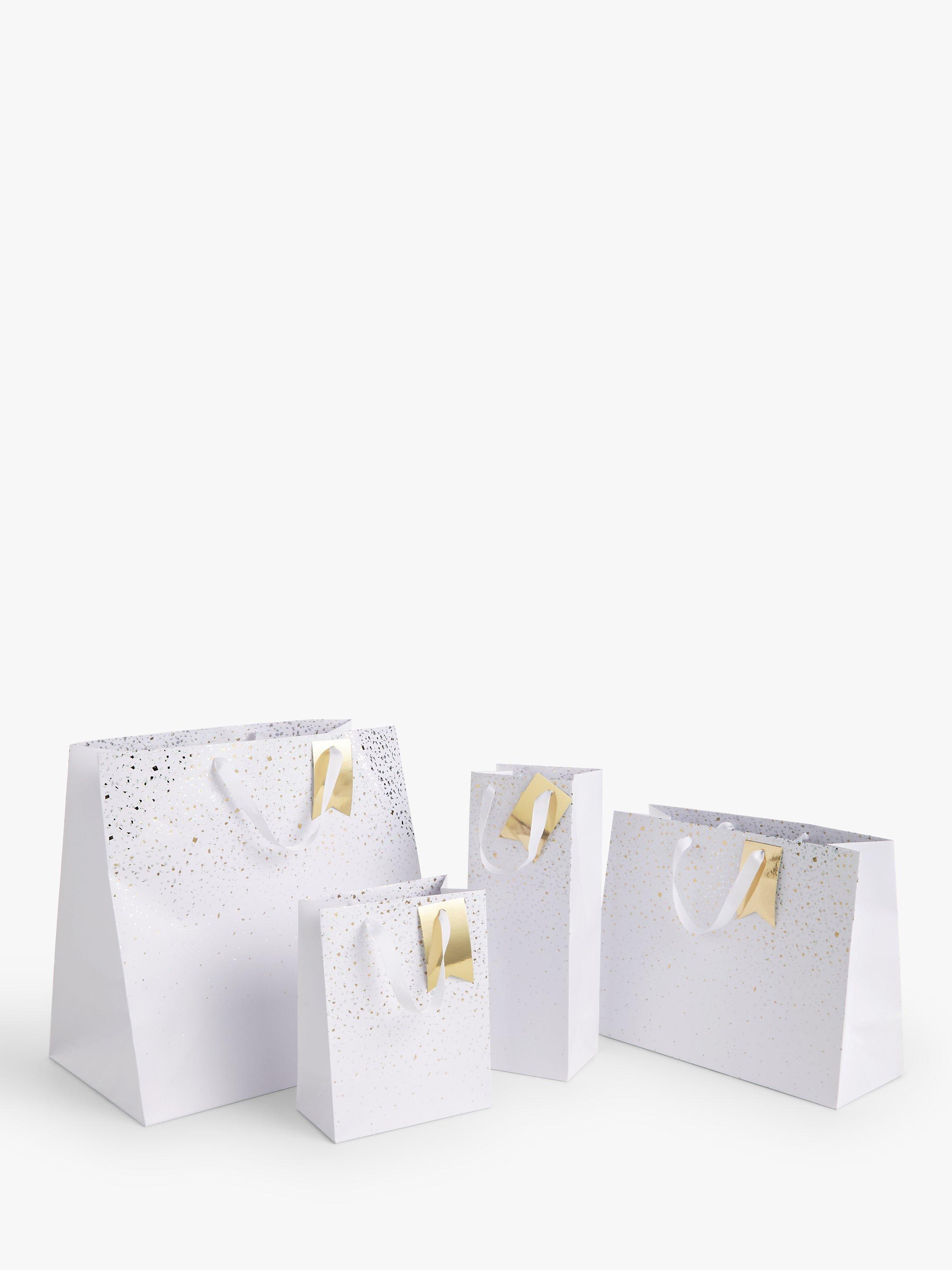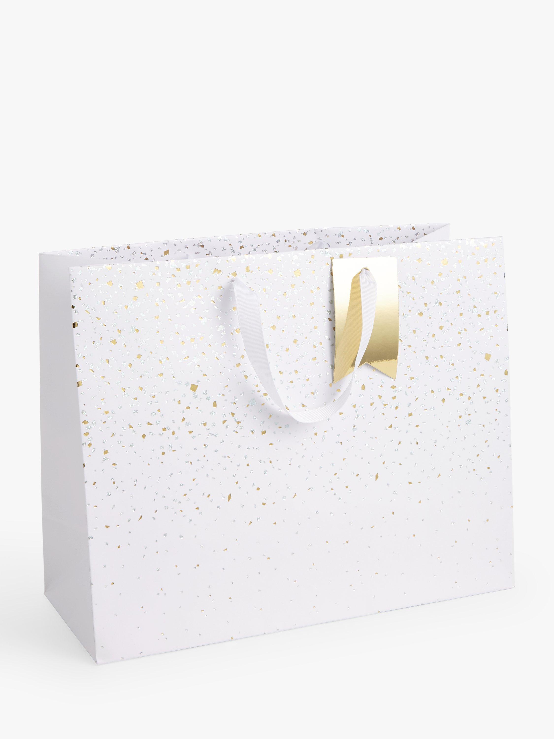 A silver holographic & gold foil stamped gift bag including gift tag.
