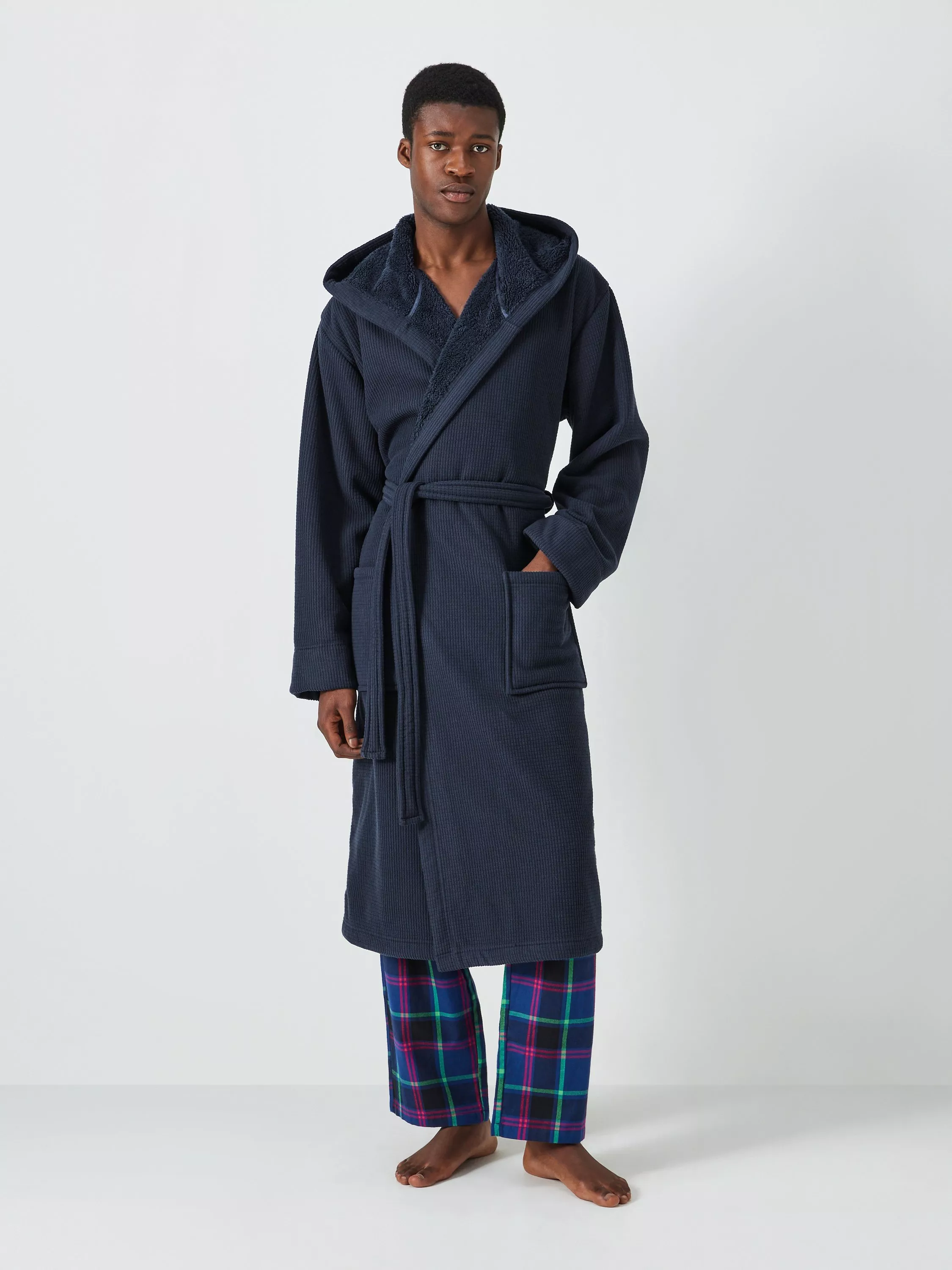 Made from pure, soft polyester in a waffle weave for a tactile and quick-drying finish, don this robe after the bath or shower for that relaxing spa-like feeling at home. With a hood and shawl collar with fleeced lining, it ensures soft, warm snugness. It's completed with deep patch front pockets and an adjustable waist tie belt.