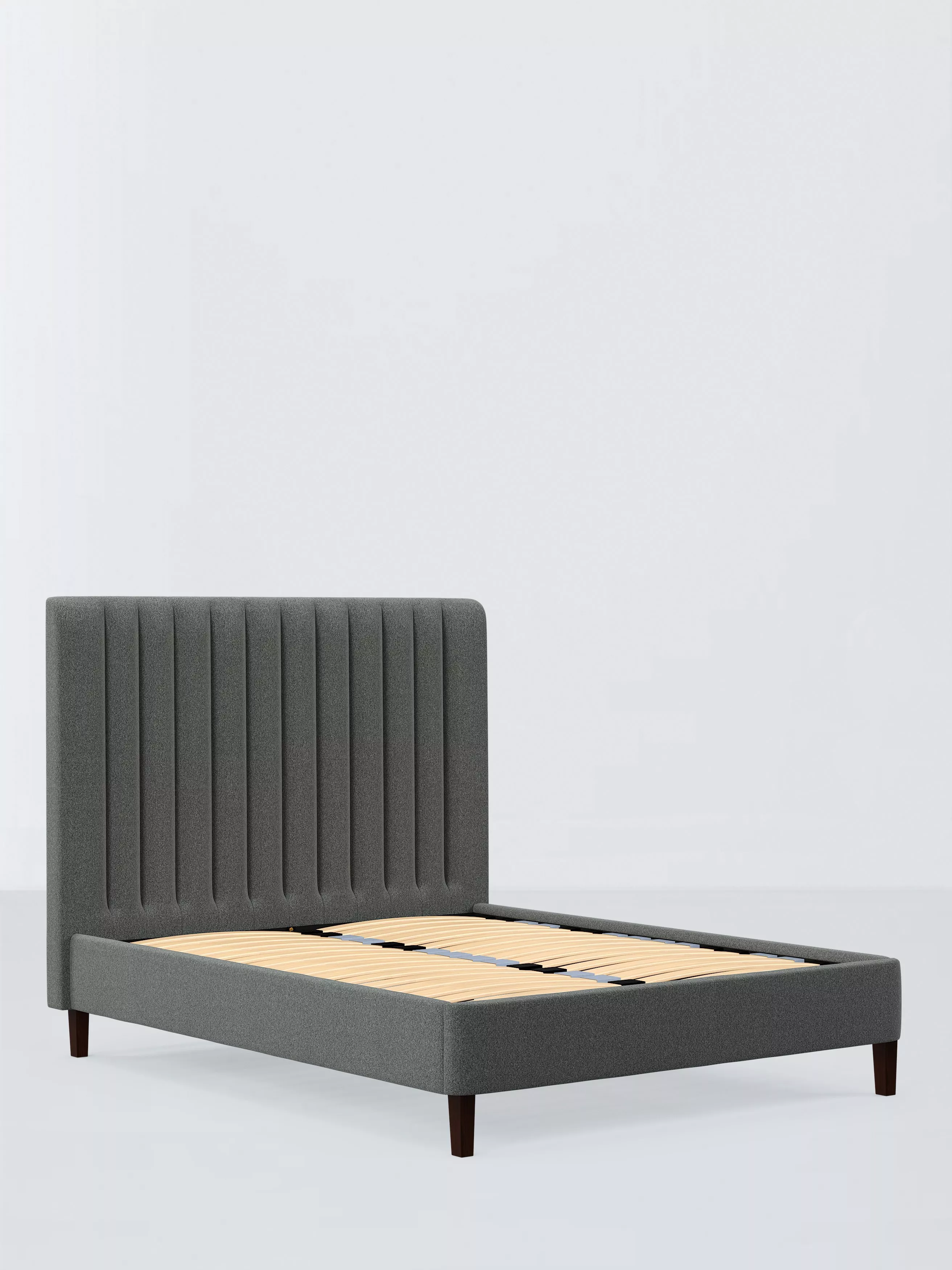 We’ve made the headboard a defining design element of the Fleur bed frame, adding extra padding to give the bed an elegant, curved side profile and giving even more depth to the flutes. Finished with a tapered dark stain leg to ensure the bed looks just as good in both traditional and contemporary rooms. Made from high-quality timbers. Its sprung slats provide a more supportive foundation for your mattress.