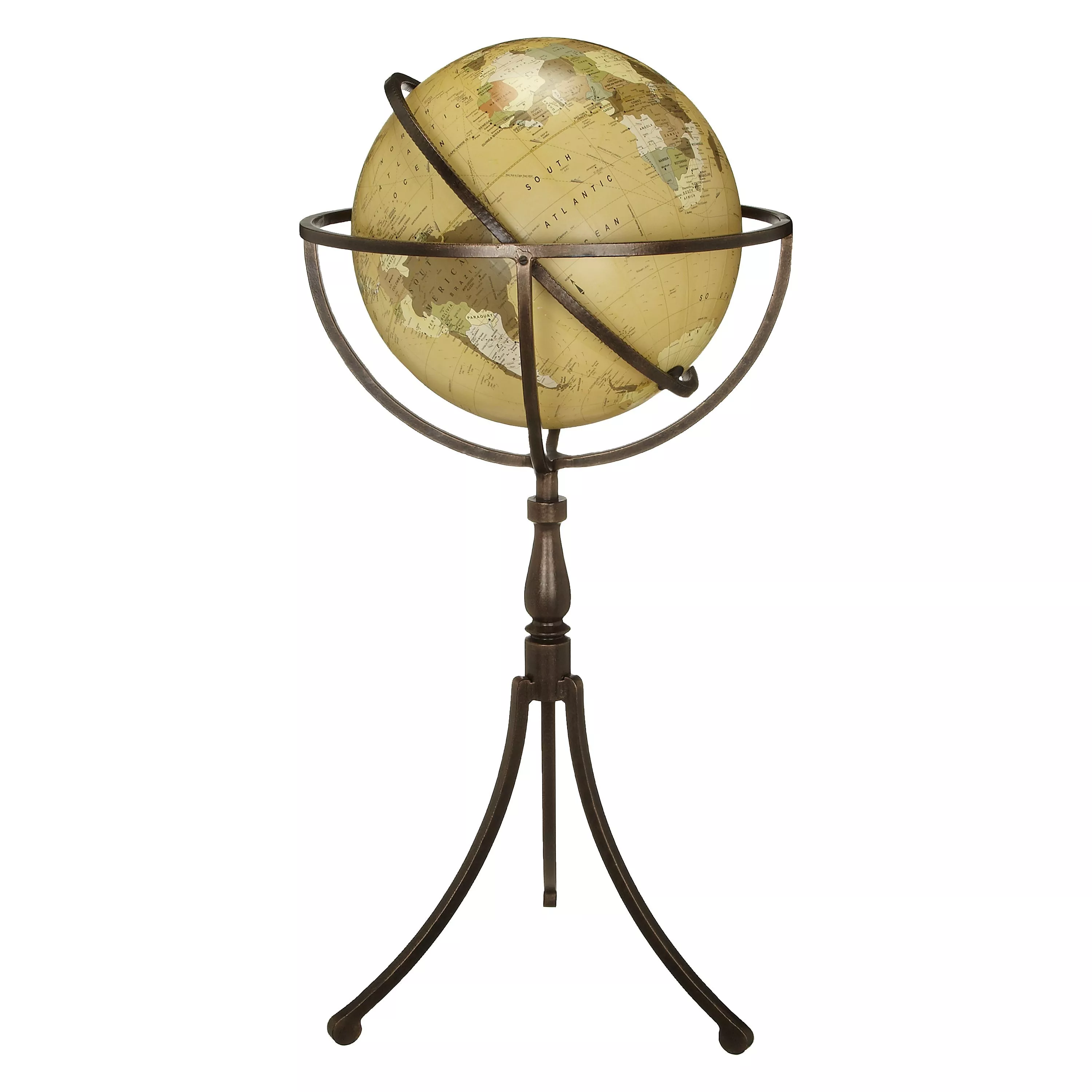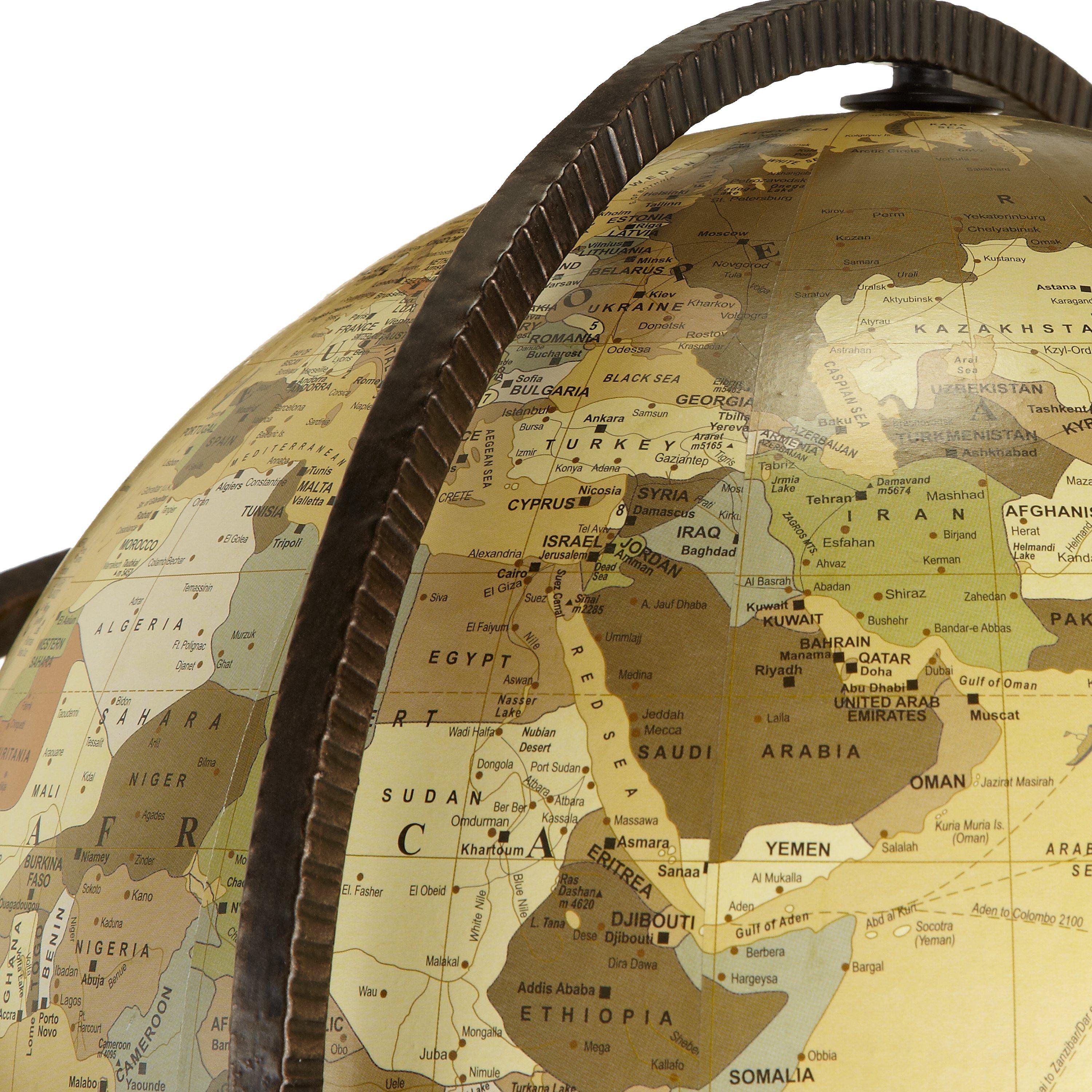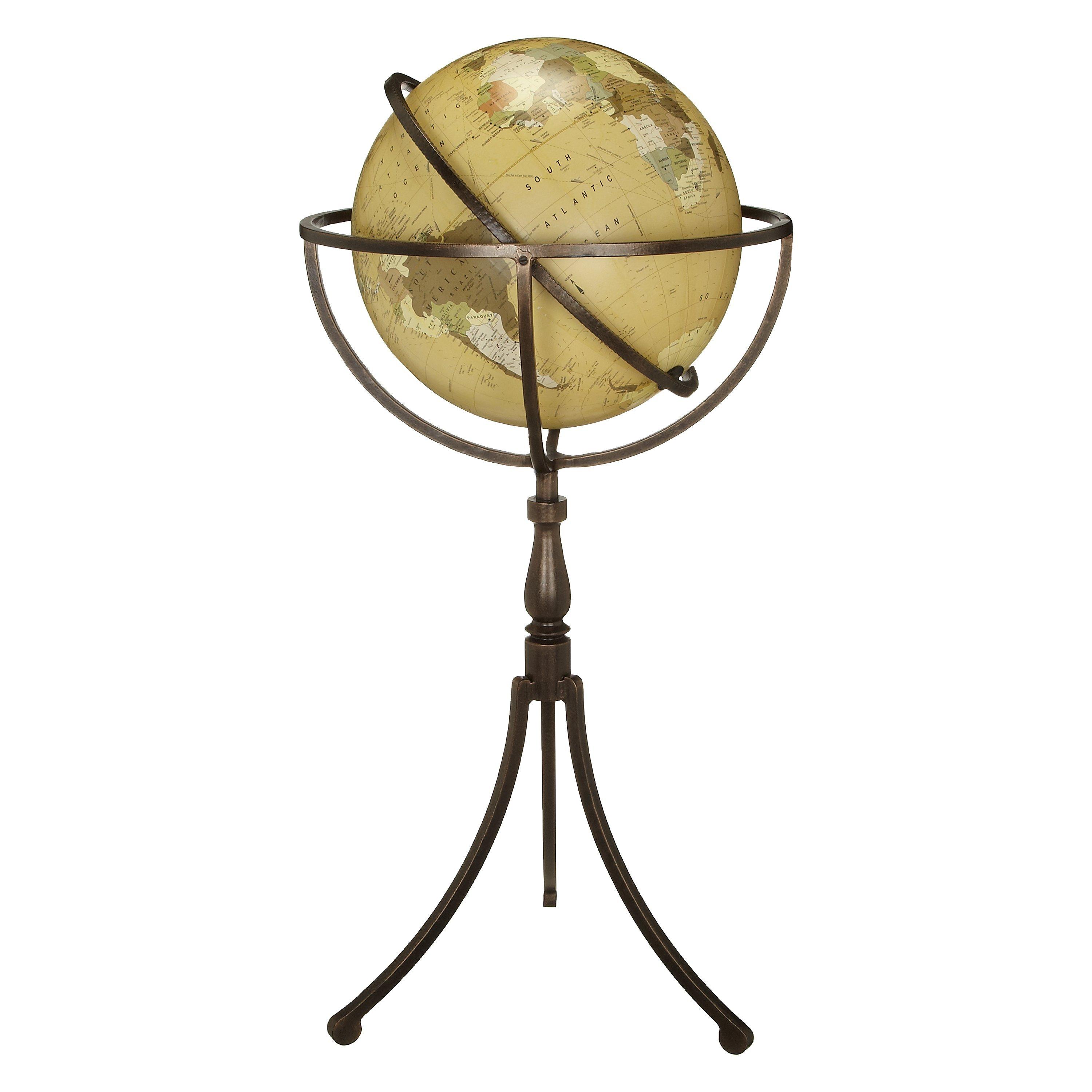 This standing globe has a strong, distinctive presence, one that would not look out of place in an old library. With a rustic metal stand, it holds the globe neatly, allowing it to spin on its axis. The world is mapped out with all the country's capital cities and is finished in a washed brown colour.