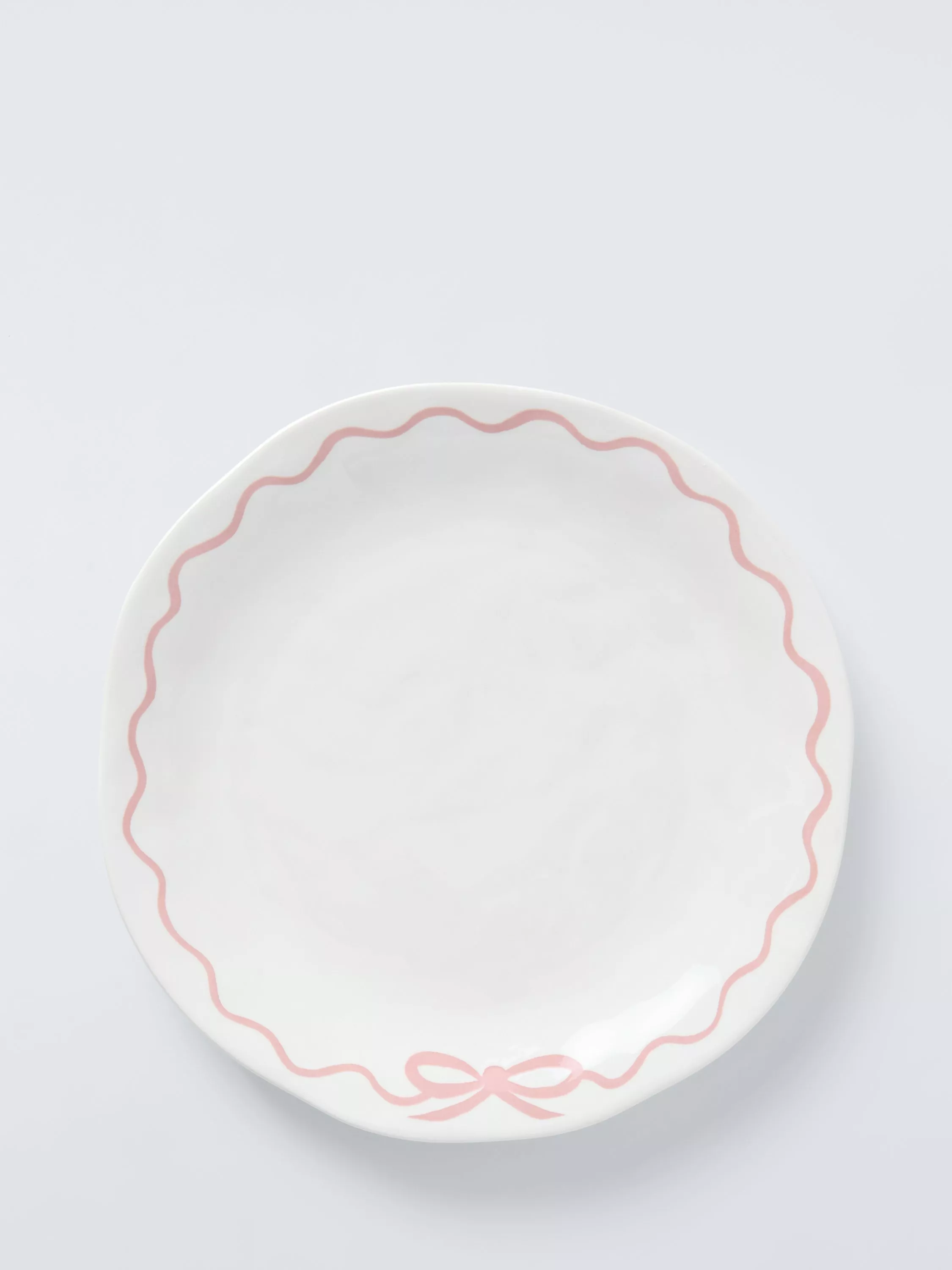 Designed by our in-house Design Studio, this dinner plate from our Flora range features a decorative bow. Made of fine china, it's dishwasher and microwave-safe for easy everyday use.