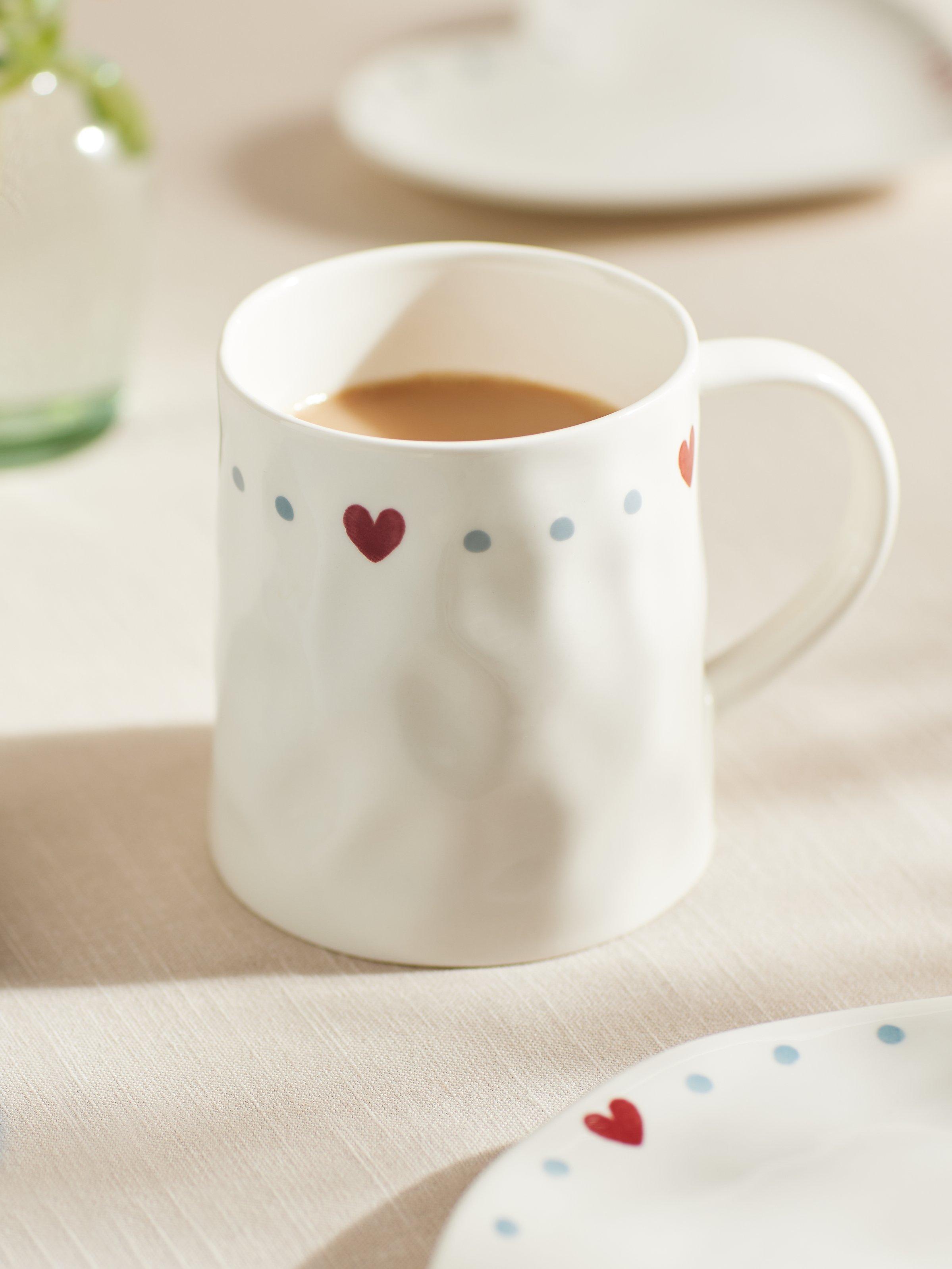Red hearts complete the design of this giftable Flora mug. Designed by our in-house Design Studio and made of fine china in an organic shape, it's dishwasher and microwave safe for easy everyday use.
