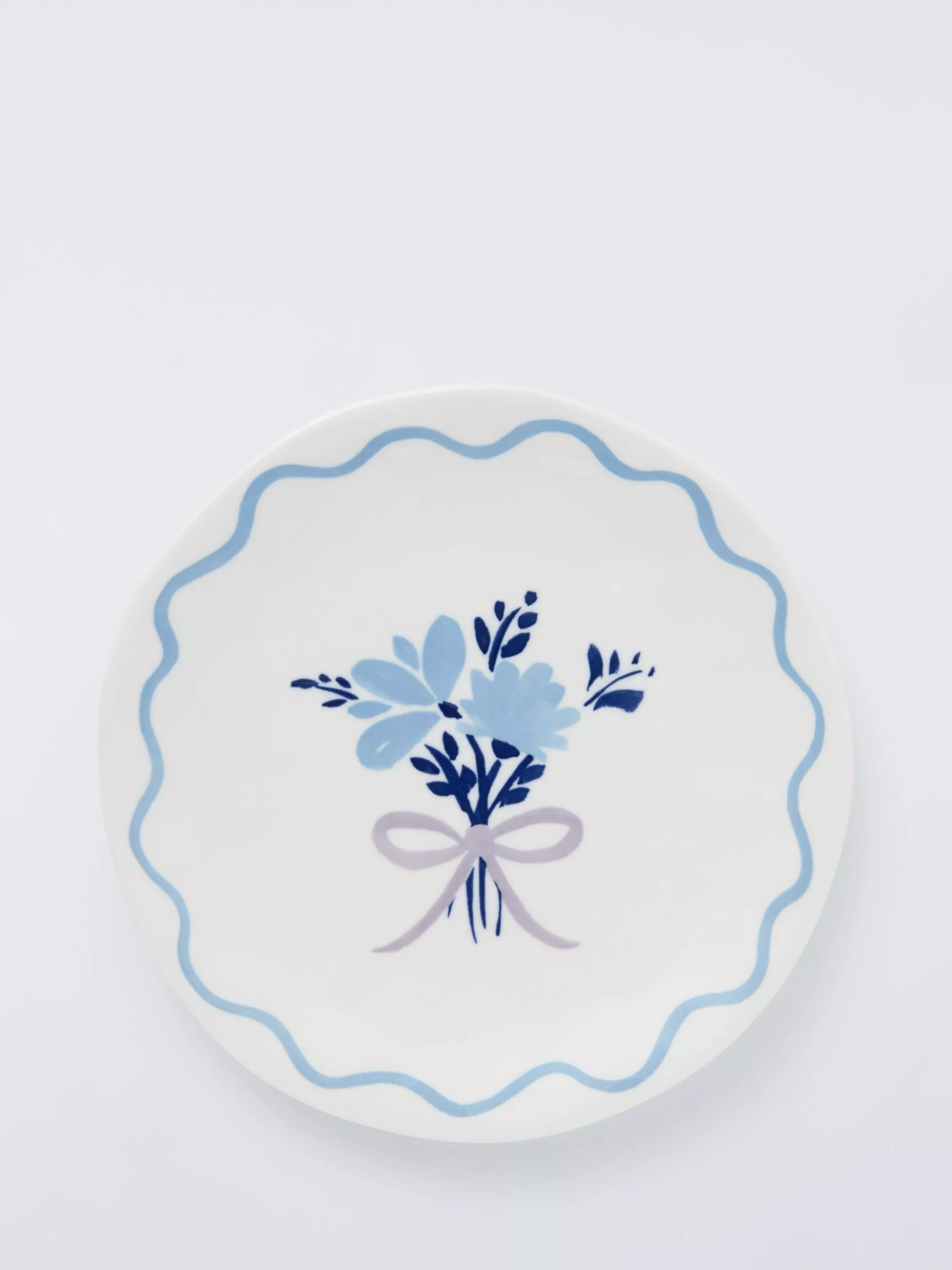 A Flora side plate with a decorative posy and bow, designed by our in-house Design Studio. Made of fine china, it's dishwasher and microwave safe for easy everyday use.