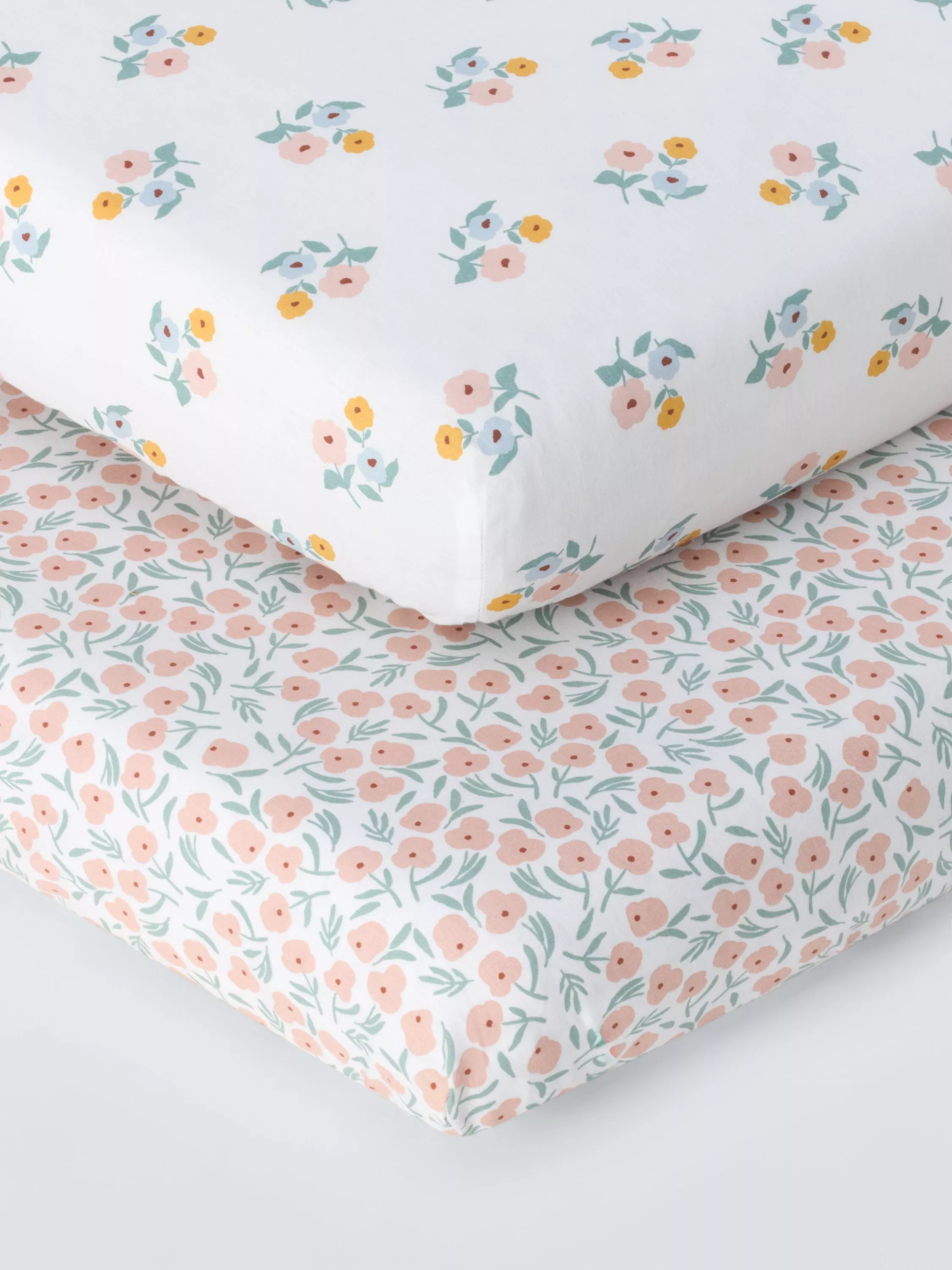 John LewisFloral Ditsy Fitted Cotbed Sheets, Pack of 2, Pink