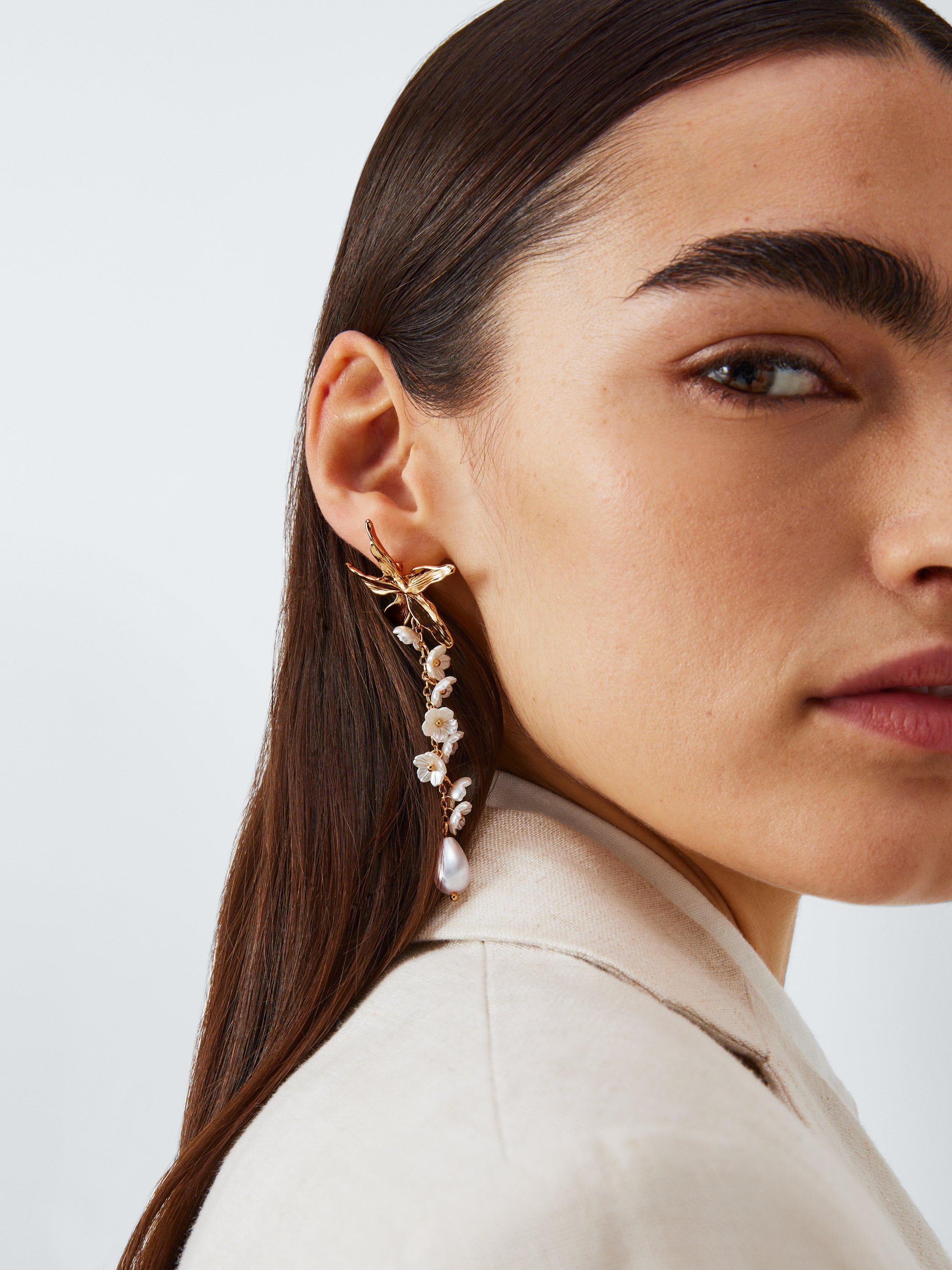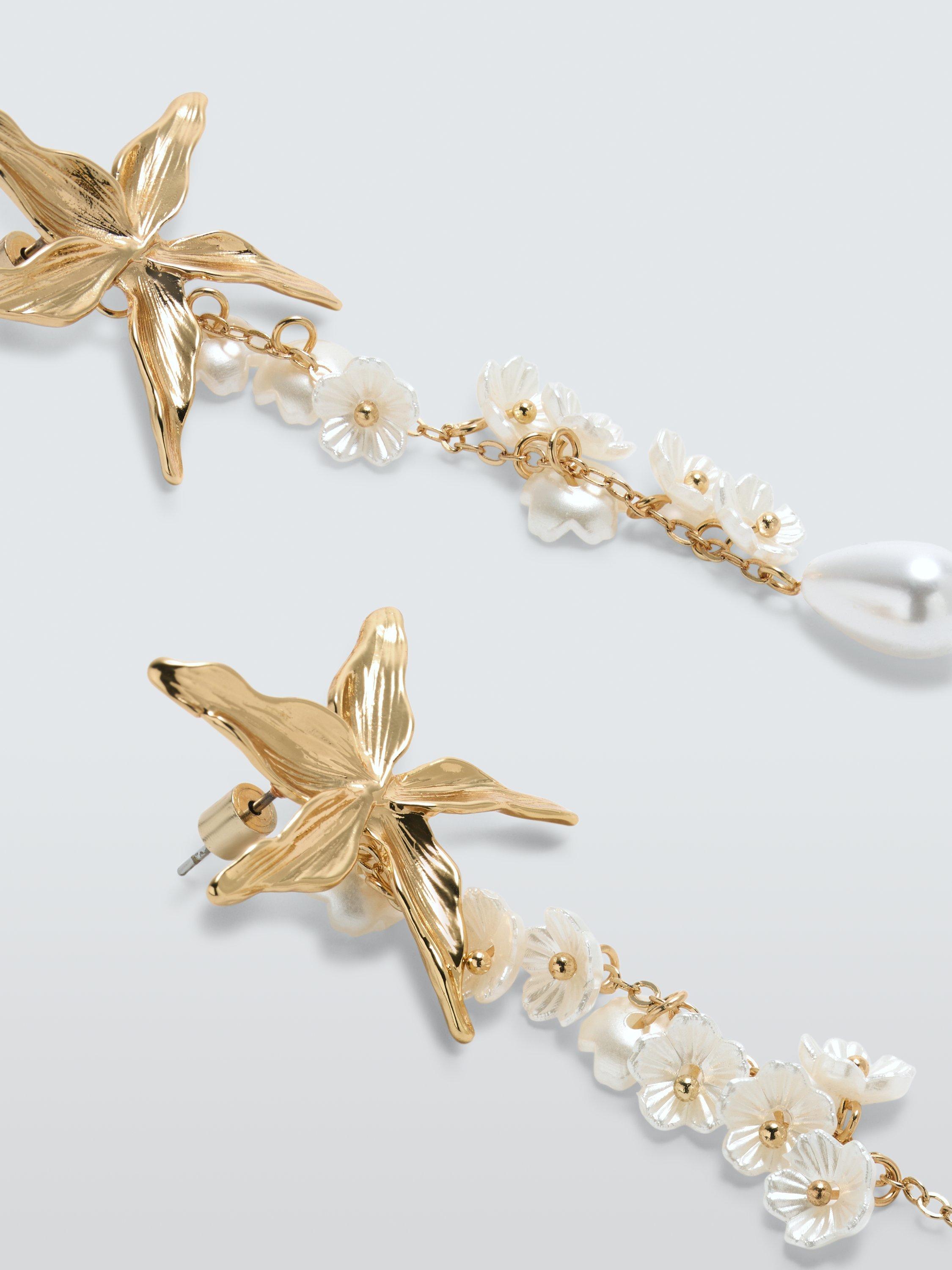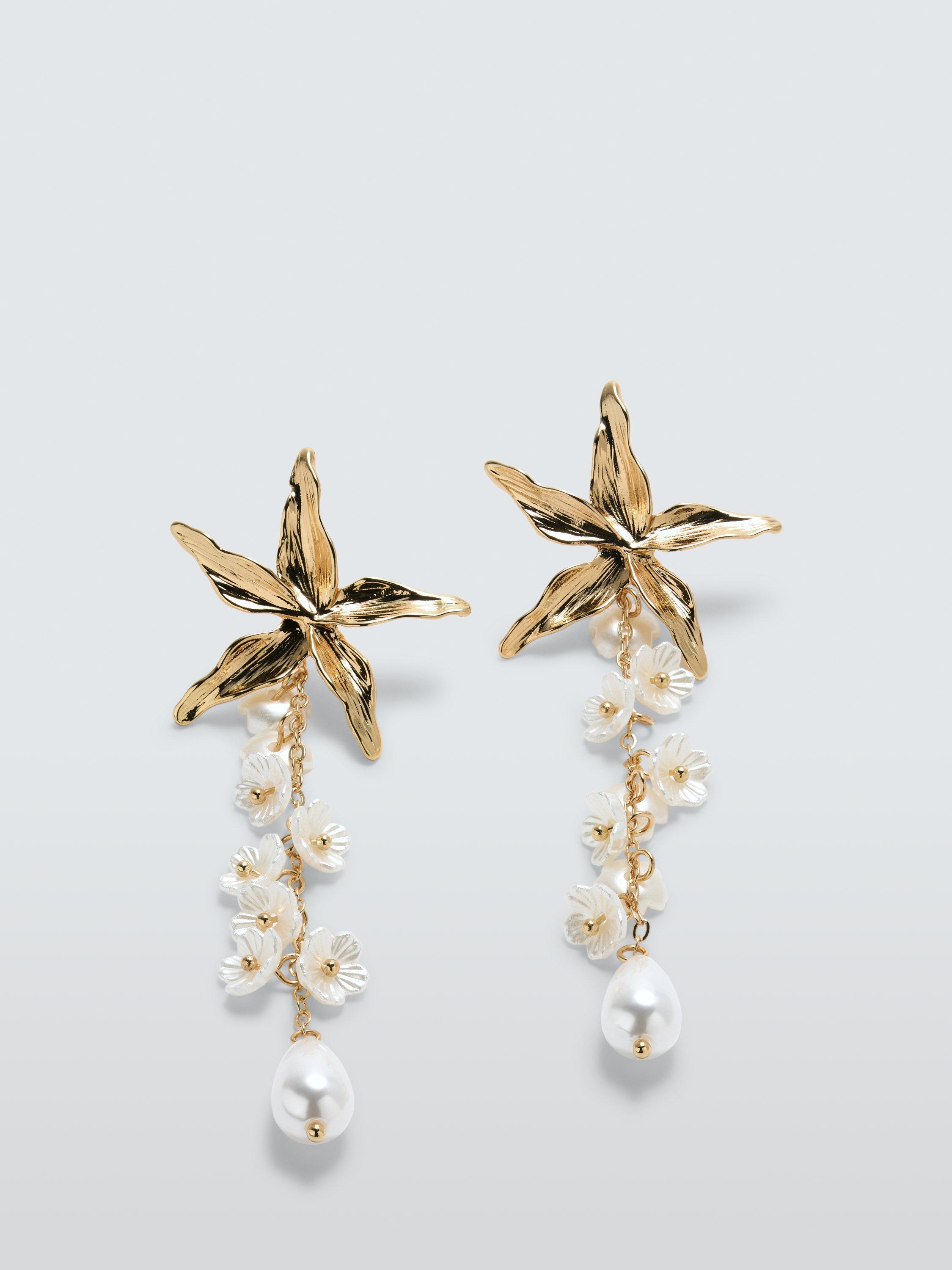 These textured flower detail earrings with multi flower detail drop make the perfect accessory to brighten your outfit.
