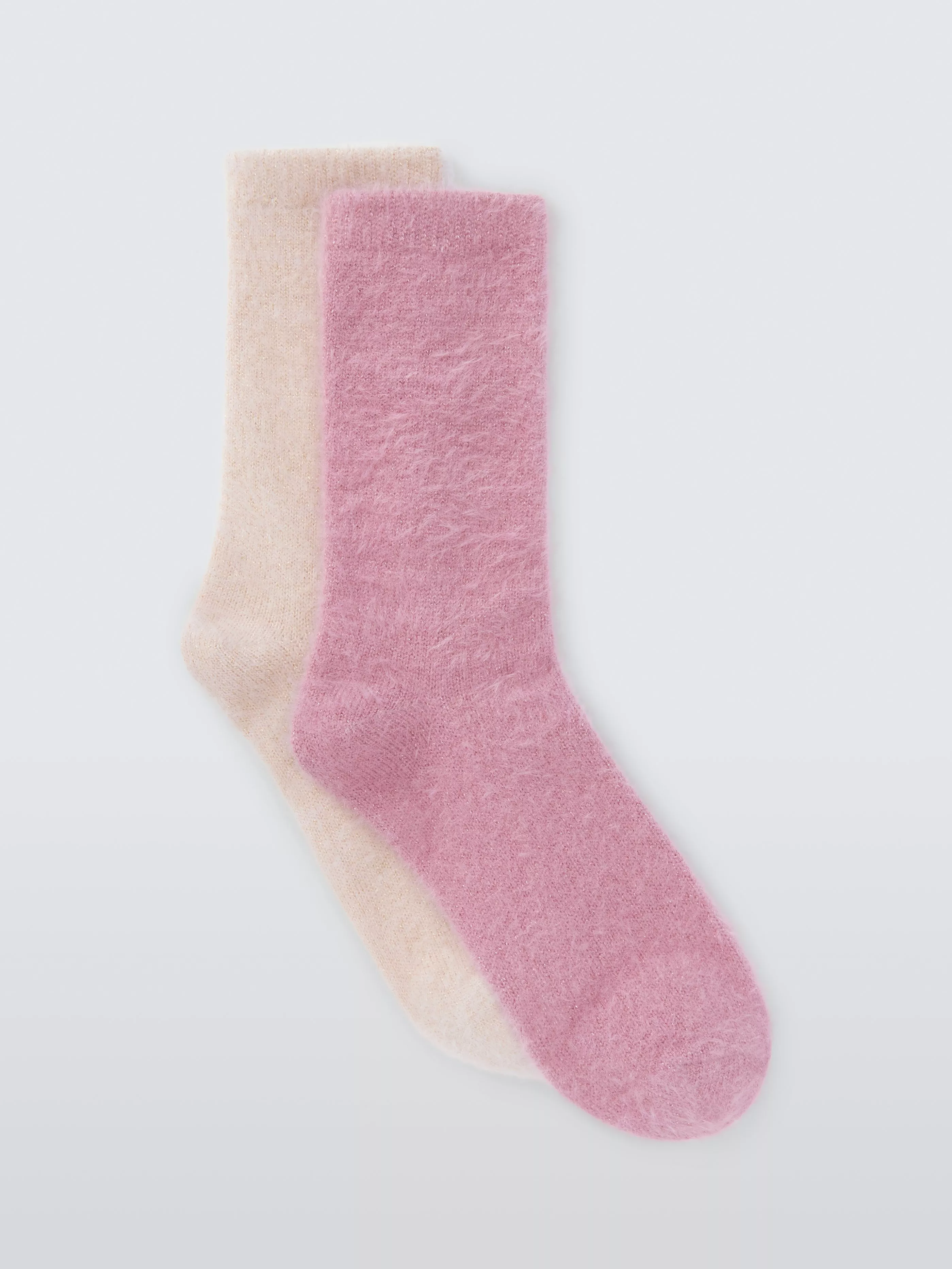 Fluffy lounge socks with lurex fibres running throughout that give them a touch of sparkle.